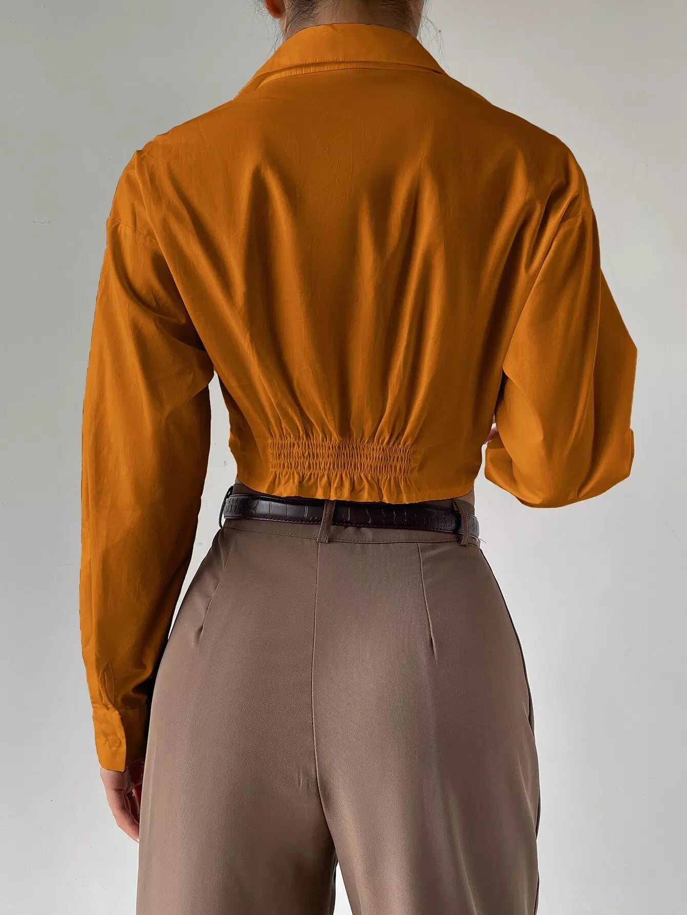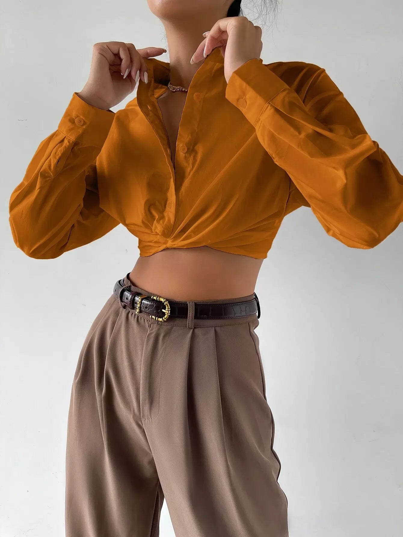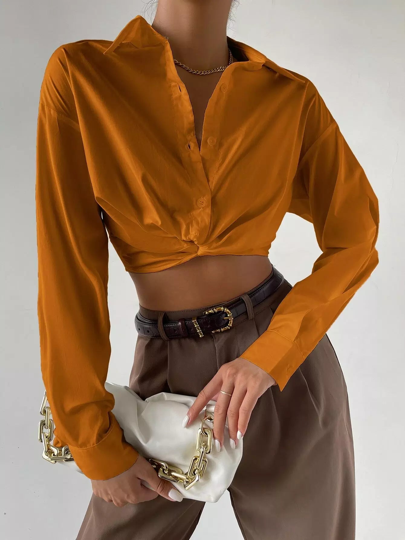 قميص قصير ذو حافة ملتوية بأزرار فوق الزر