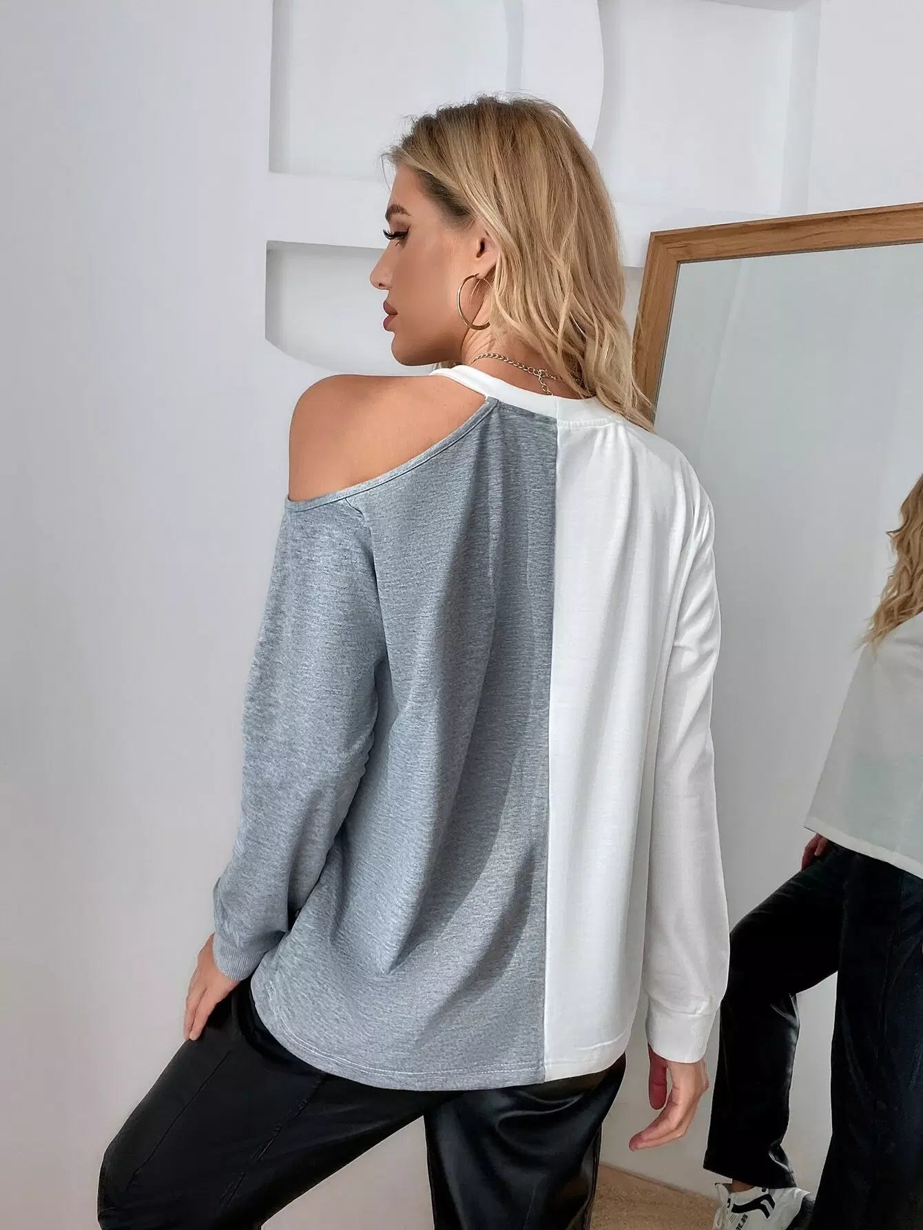 سويت شيرت بفتحة كتف مقطوعة بلونين