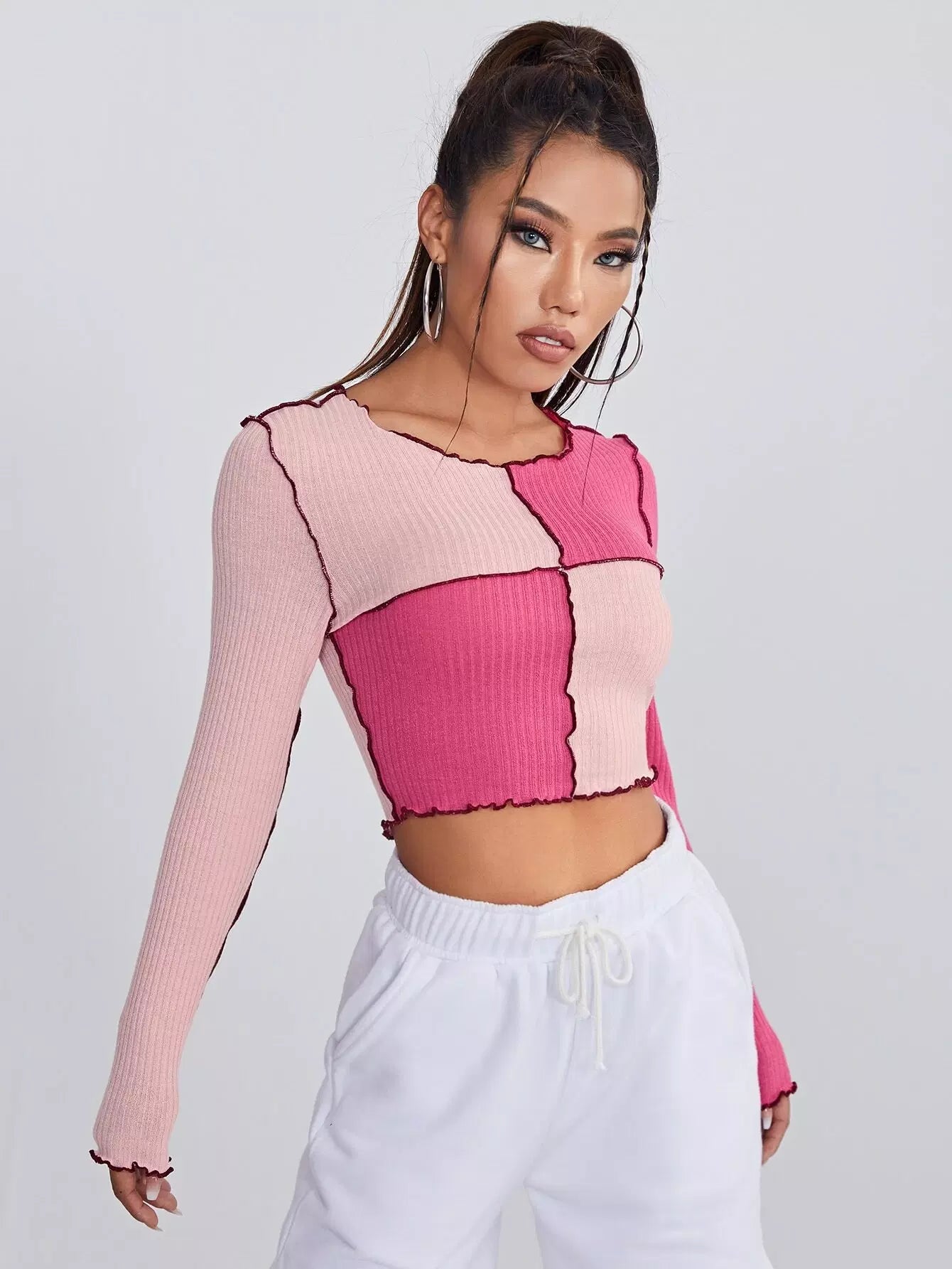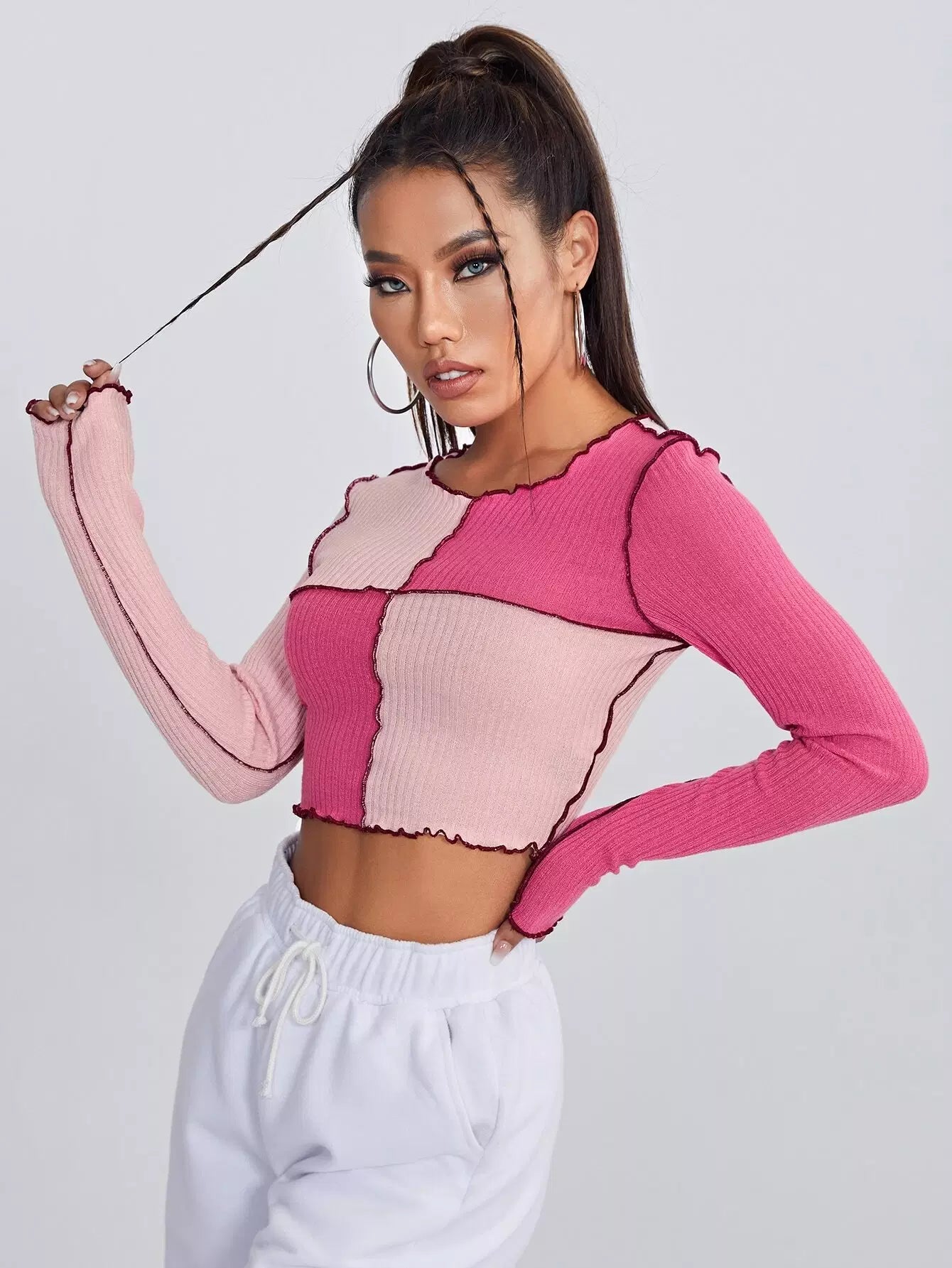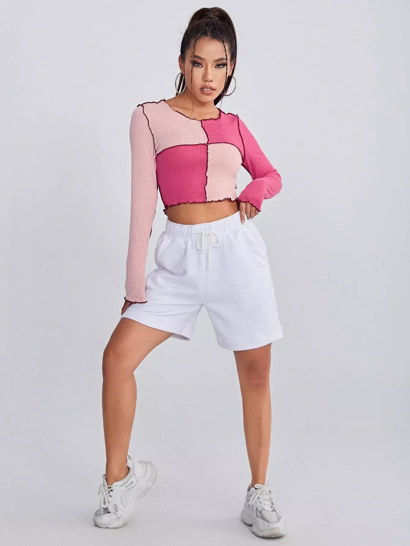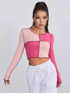 تي شيرت قصير قصير أمامي بدرزتين بلونين