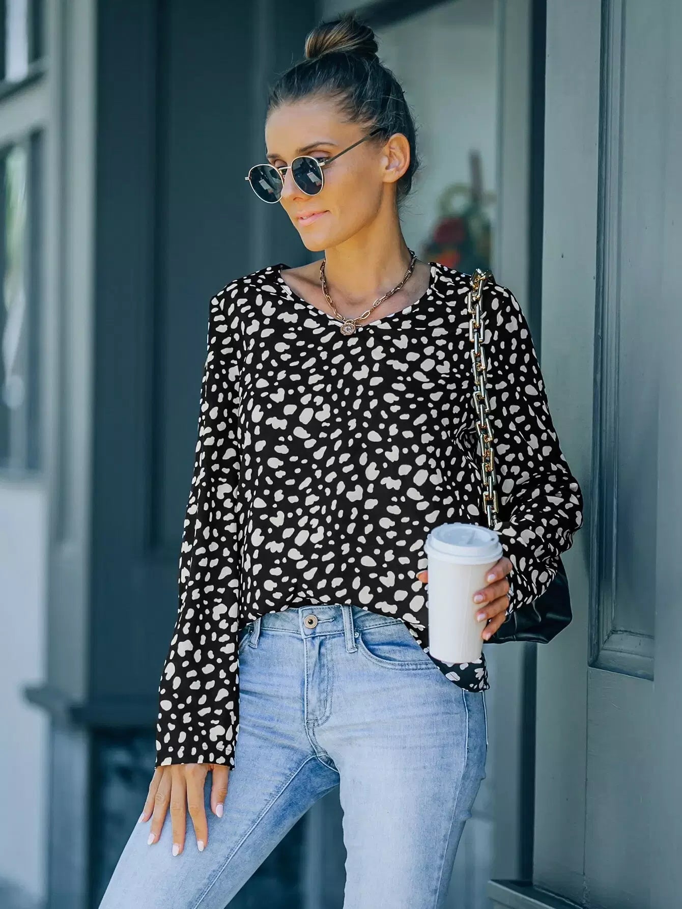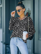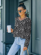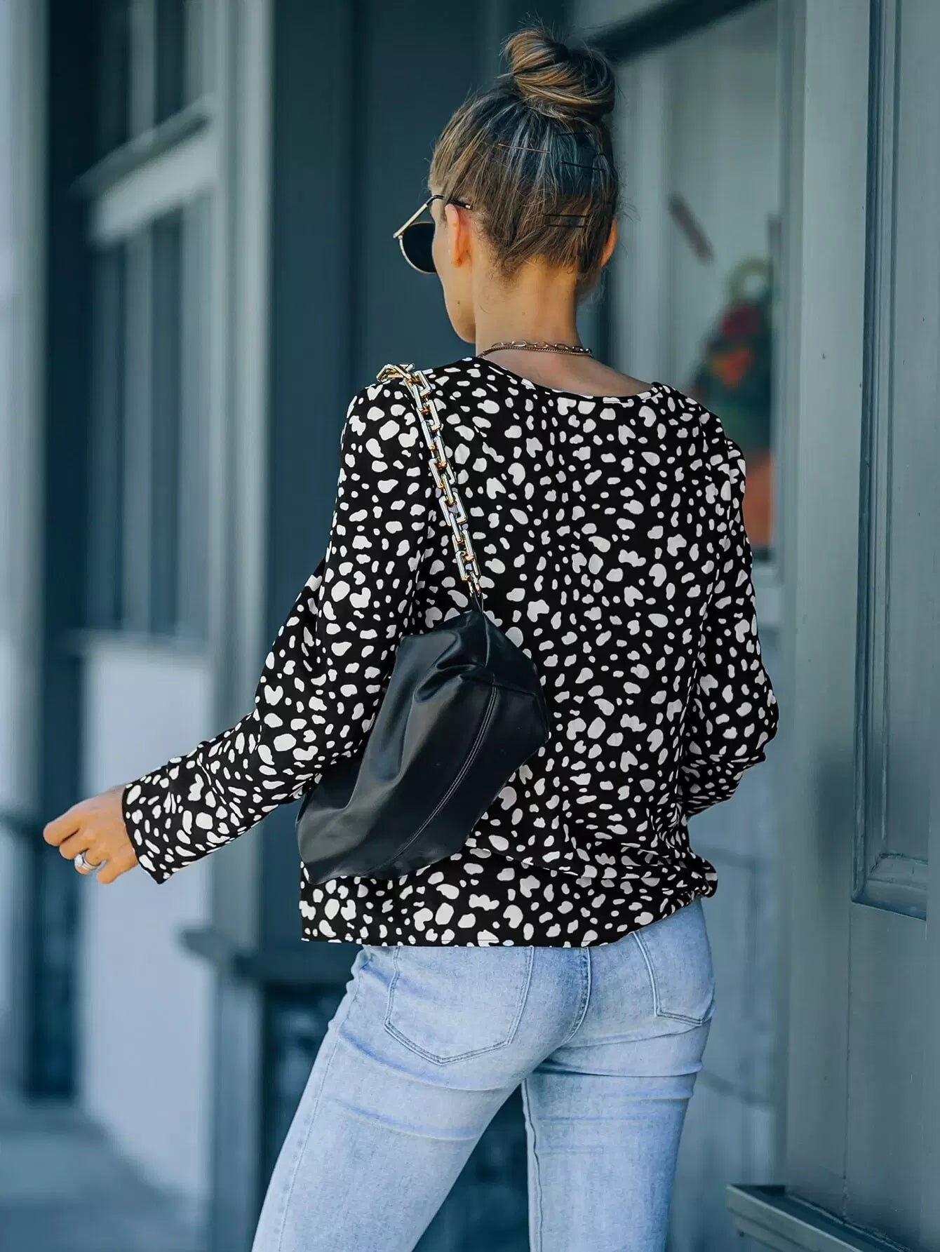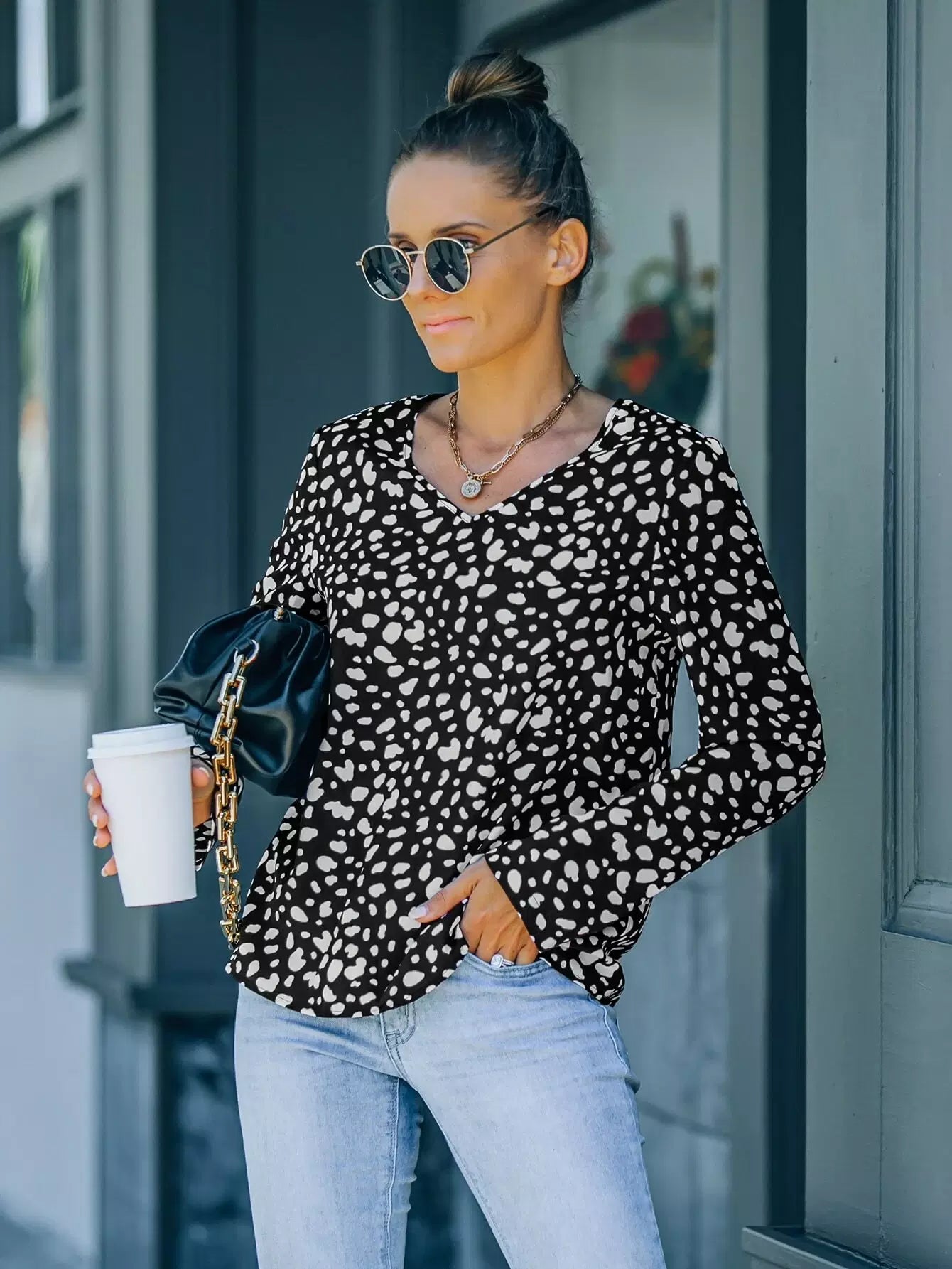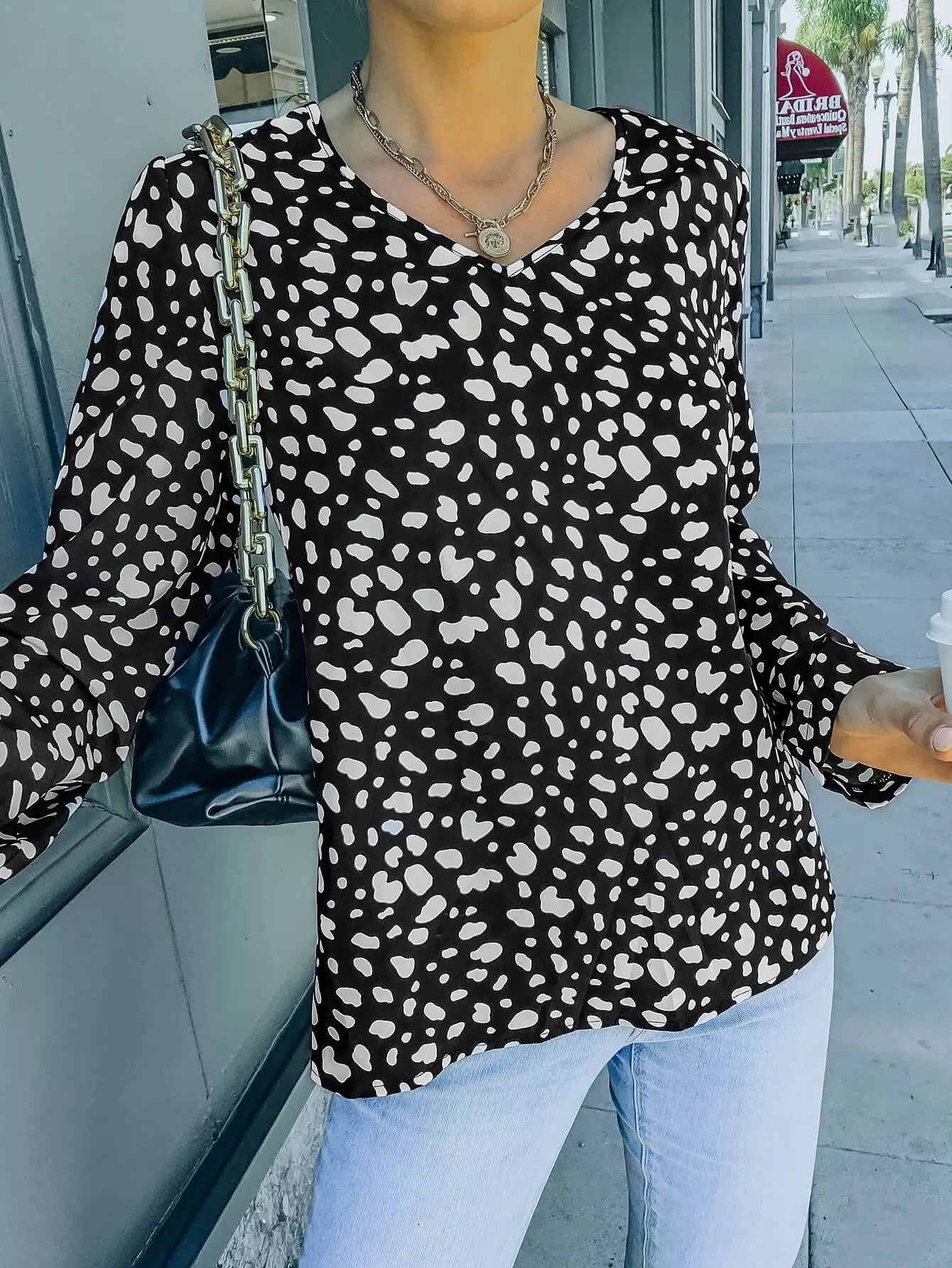 بلوزة برقبة على شكل V مطبوع عليها بالكامل