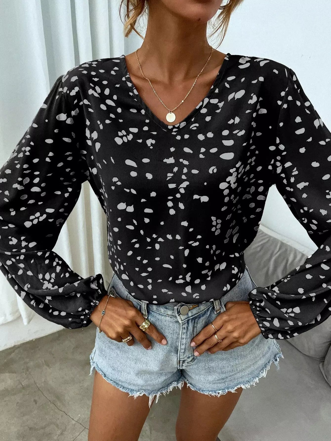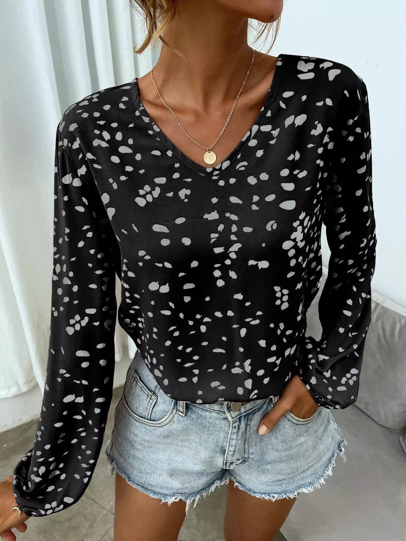 بلوزة برقبة على شكل V مطبوع عليها بالكامل