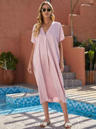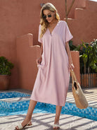 فستان سادة بأكمام على شكل حرف V بياقة على شكل حرف V