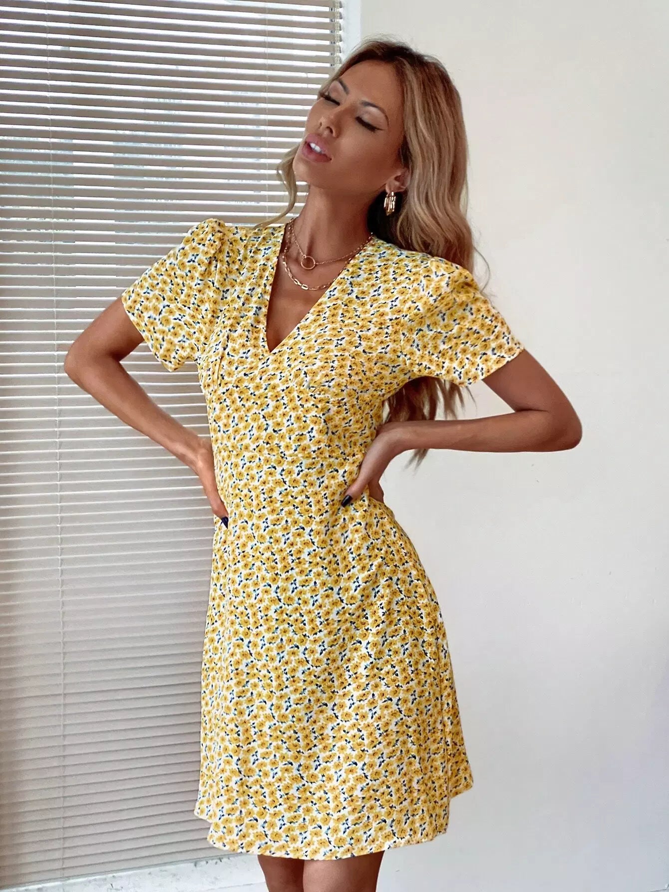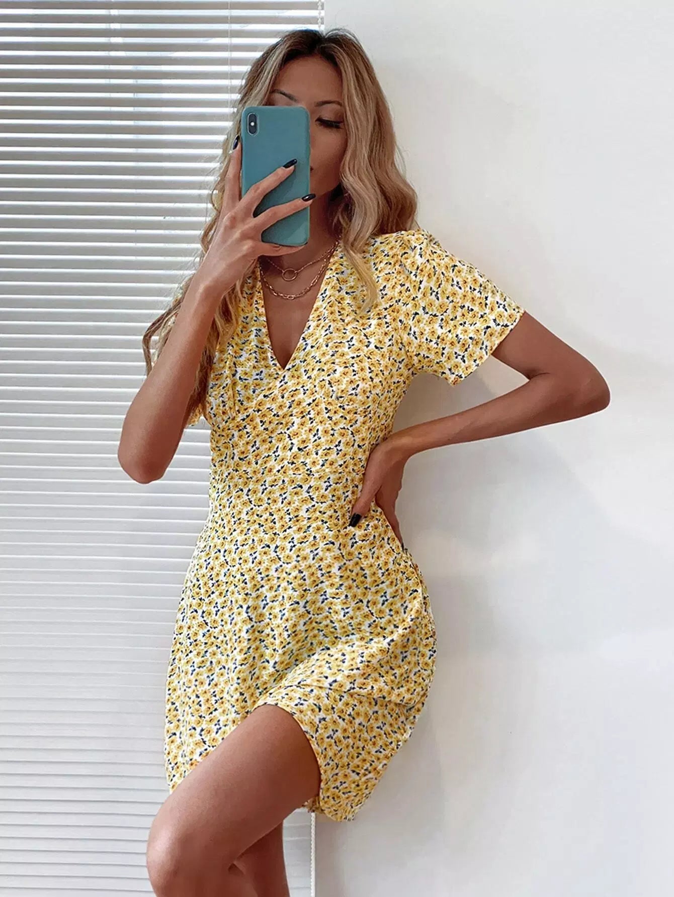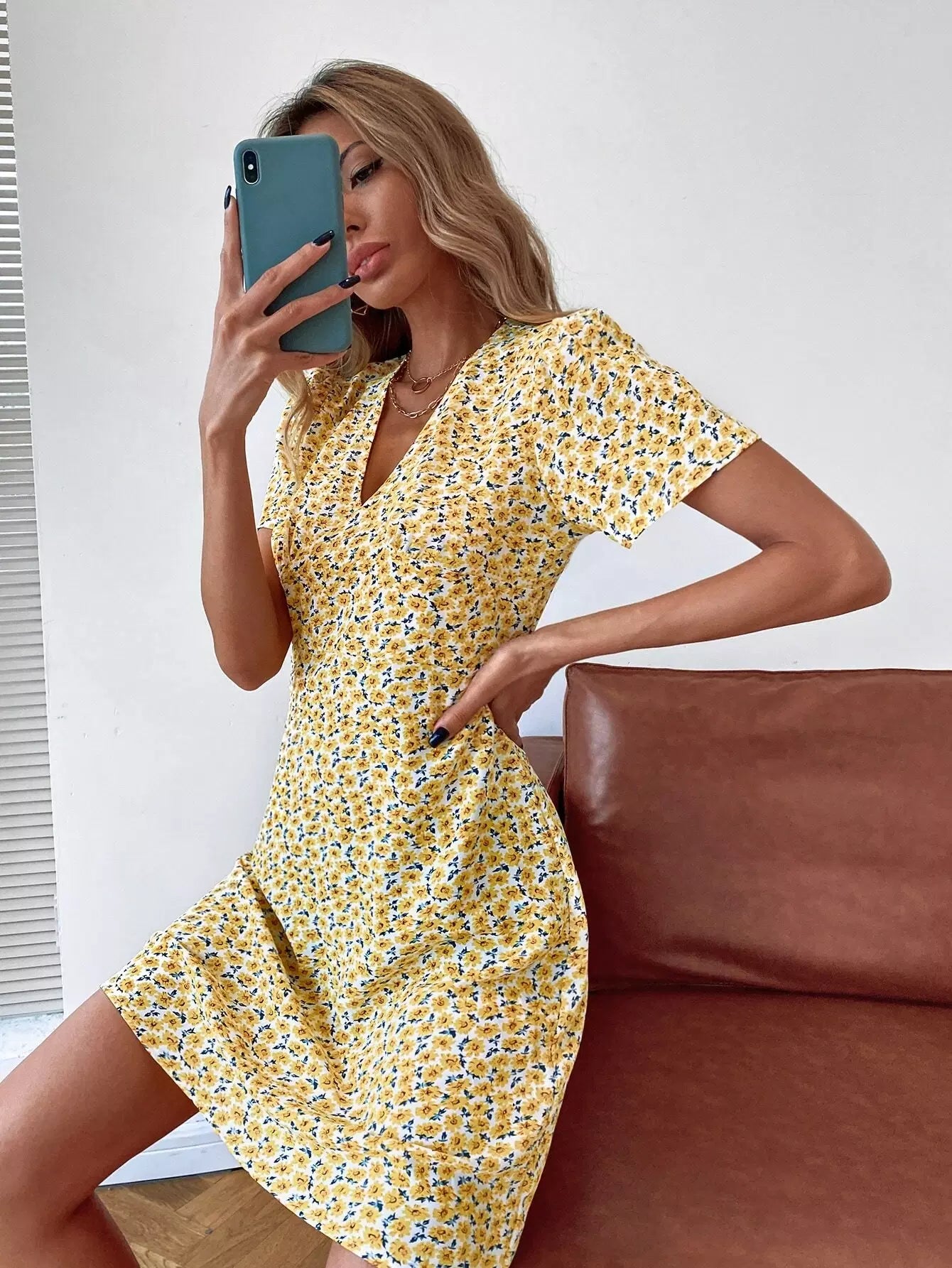 فستان برقبة على شكل V برقبة على شكل ديتسي فلورال