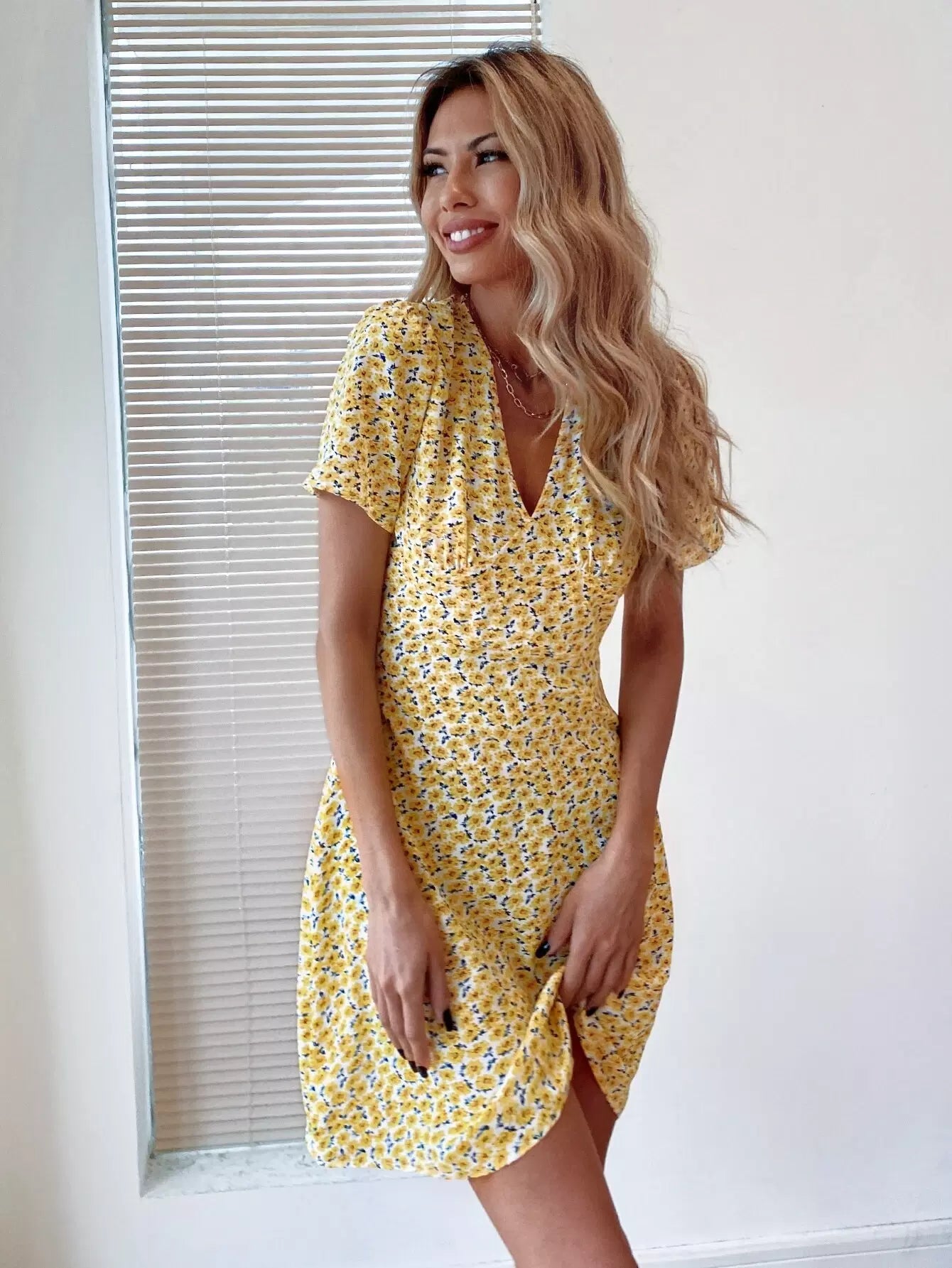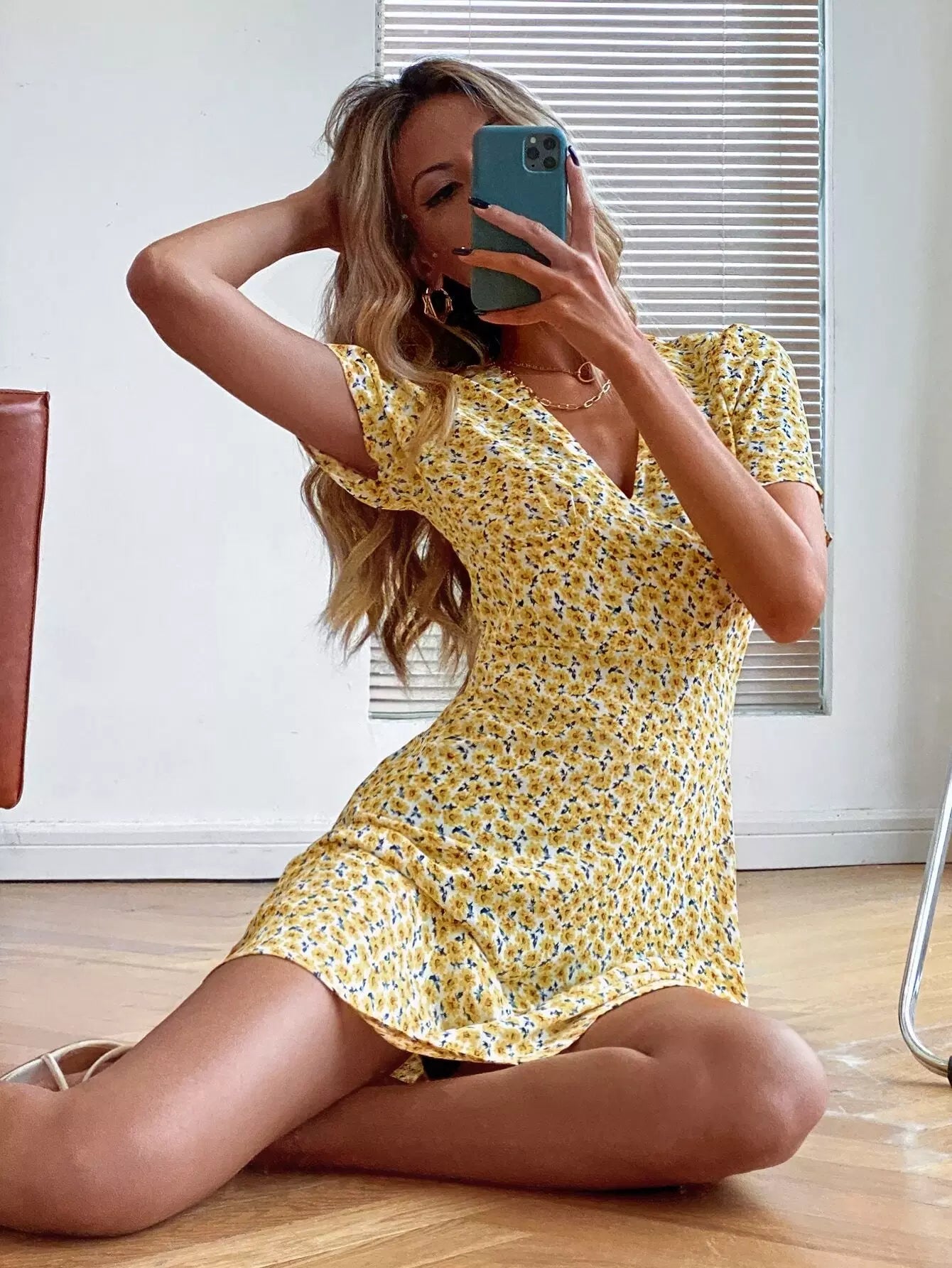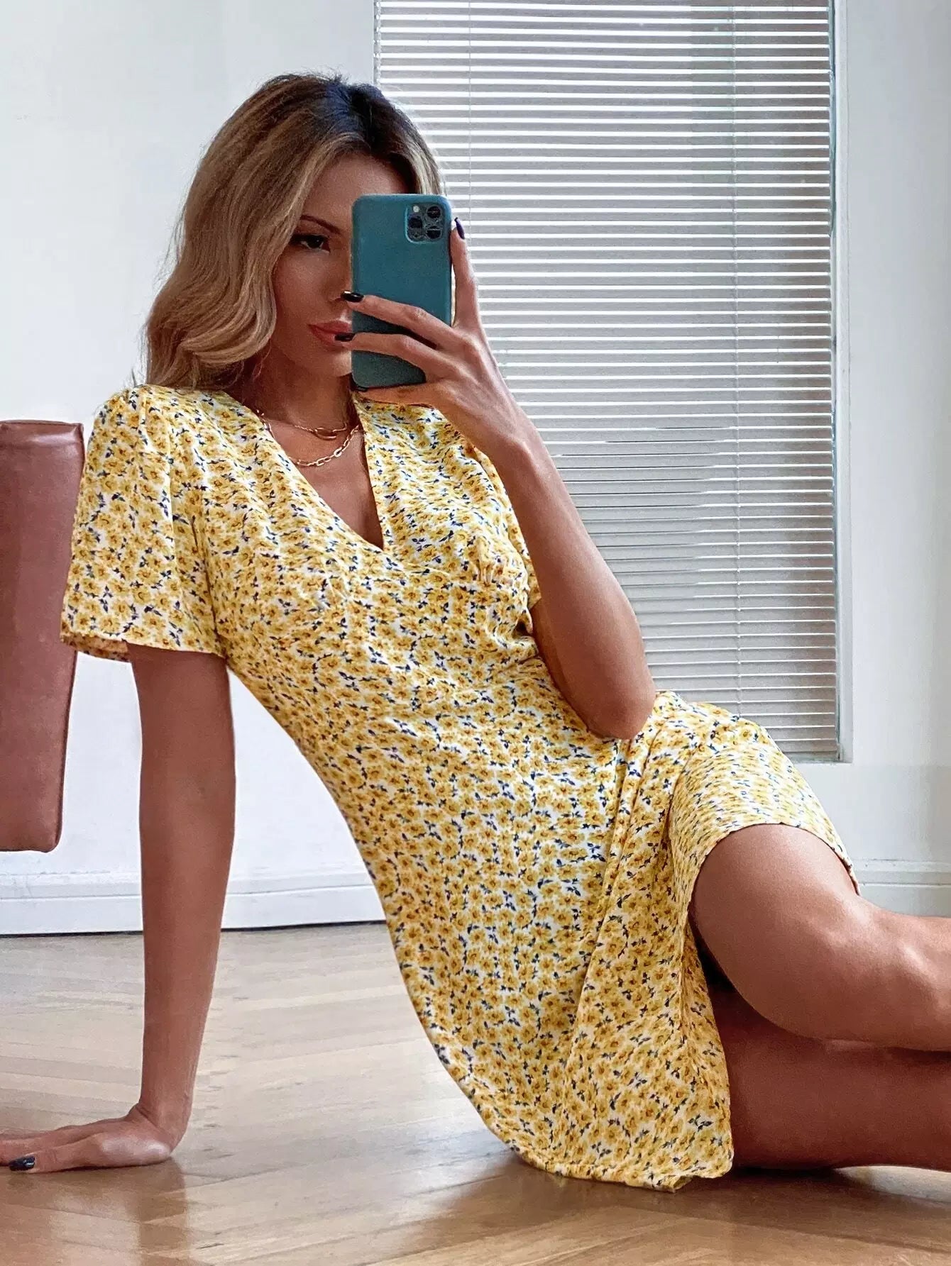 فستان برقبة على شكل V برقبة على شكل ديتسي فلورال