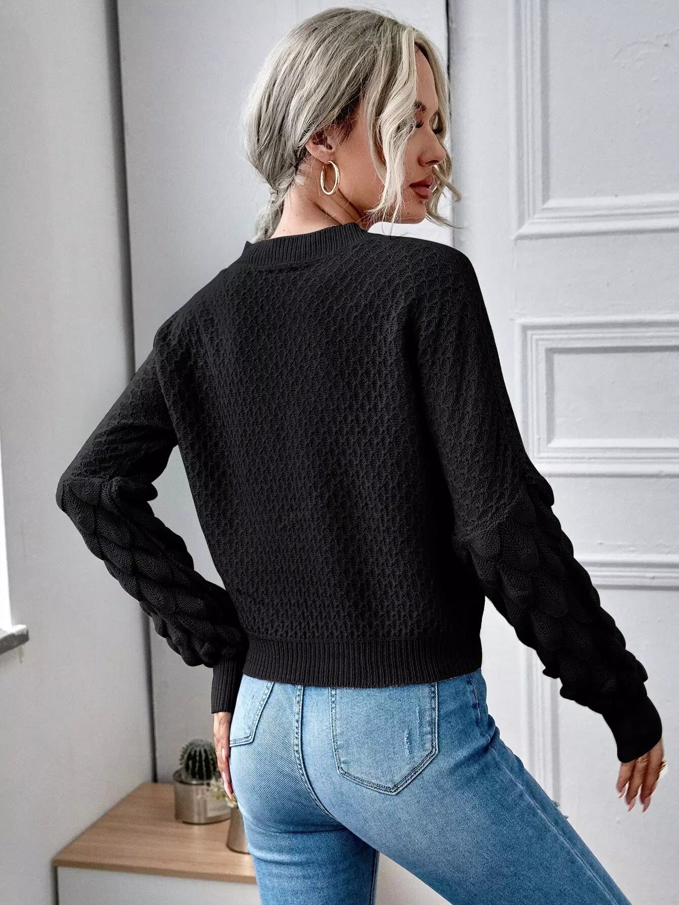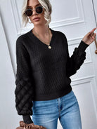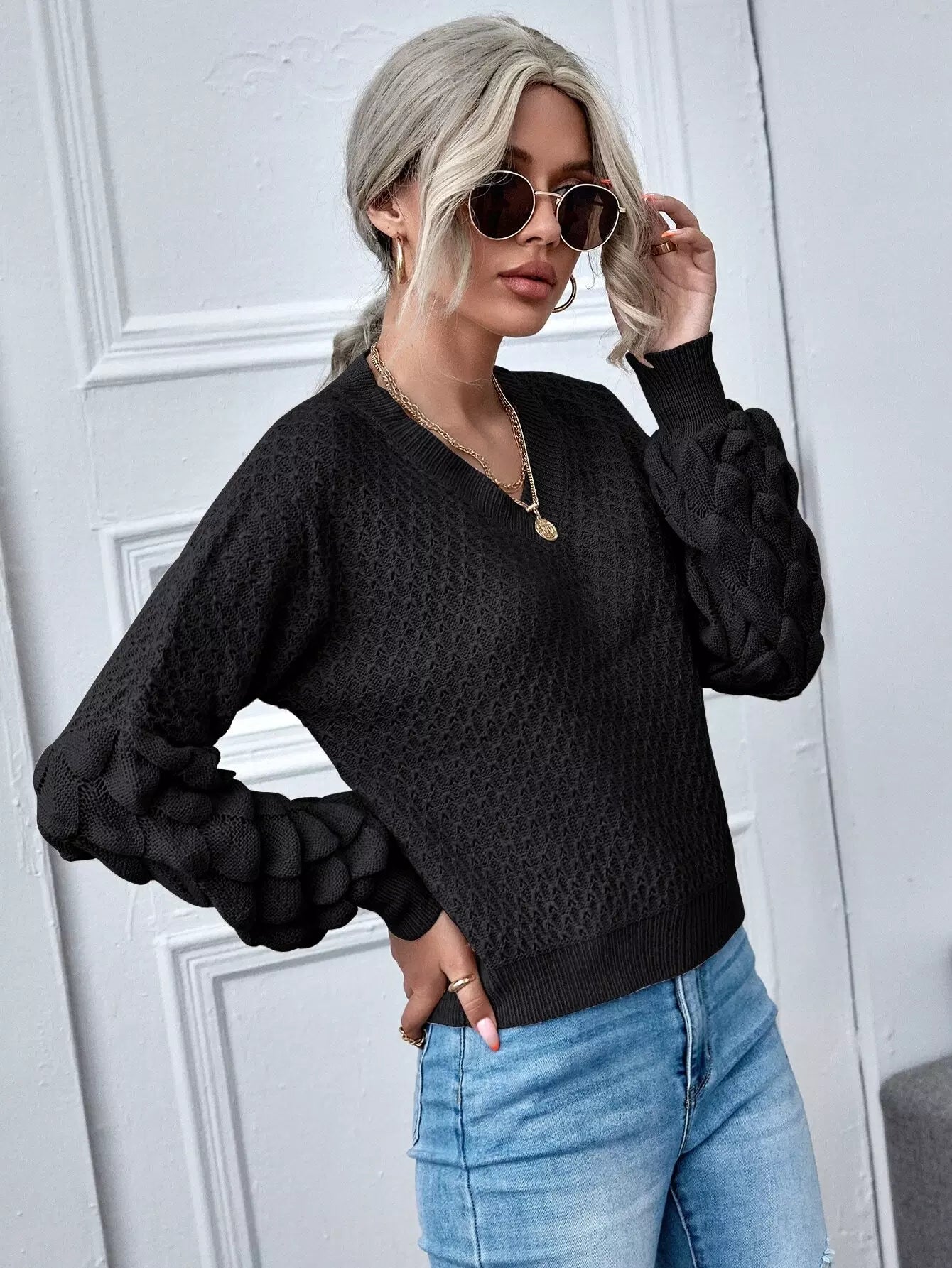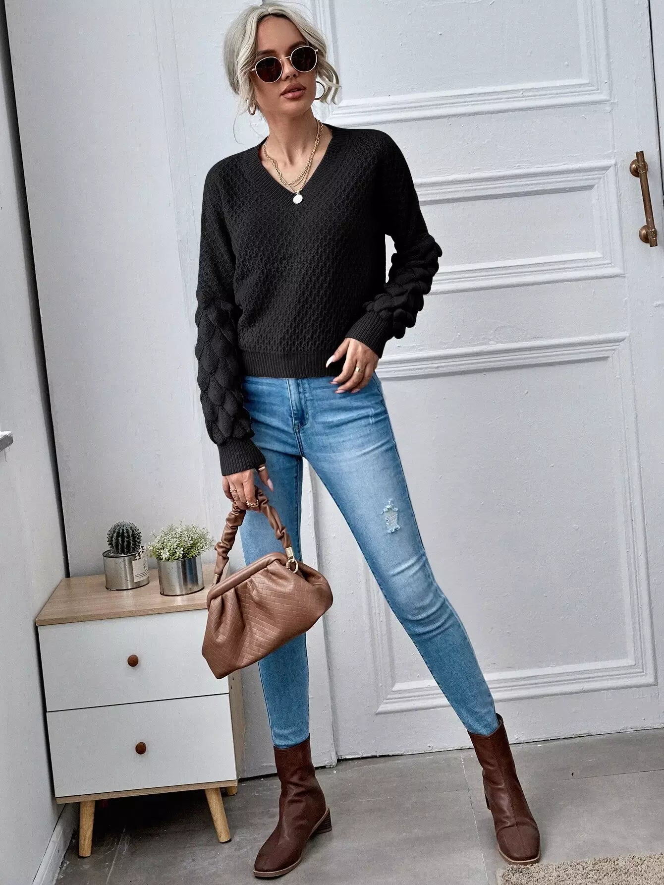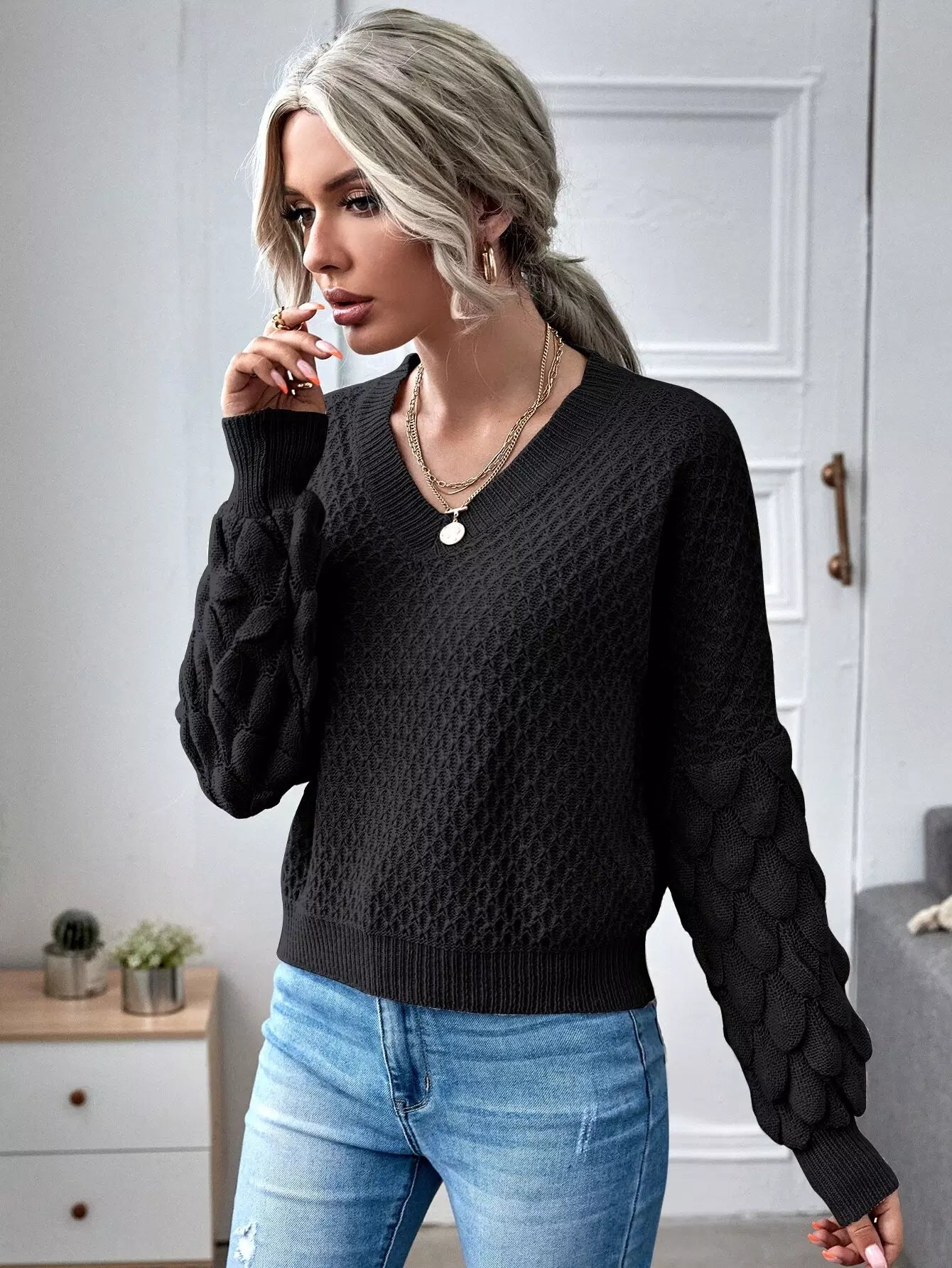 كنزة برقبة على شكل V برقبة منسدلة الكتفين