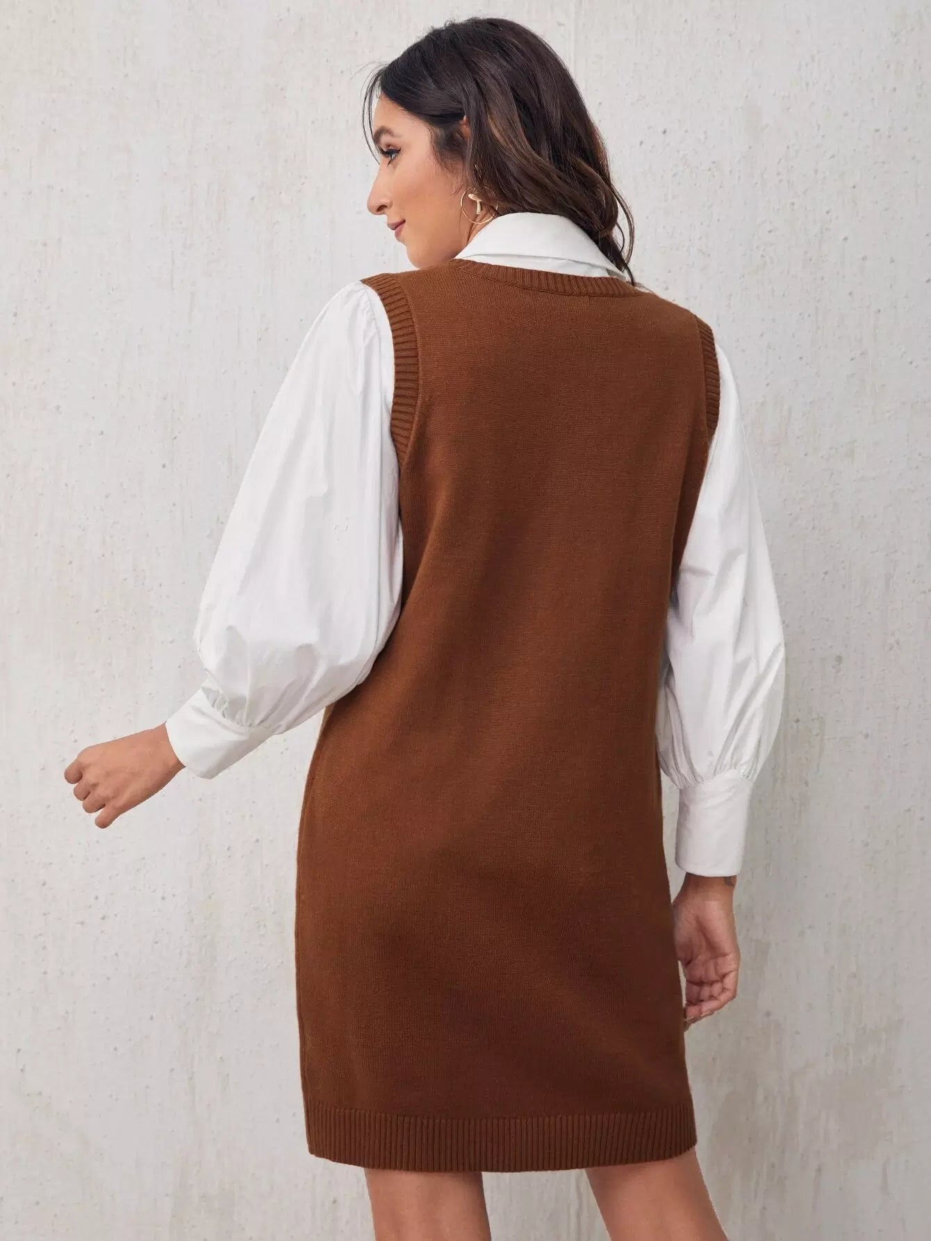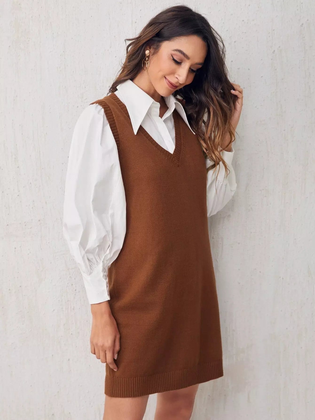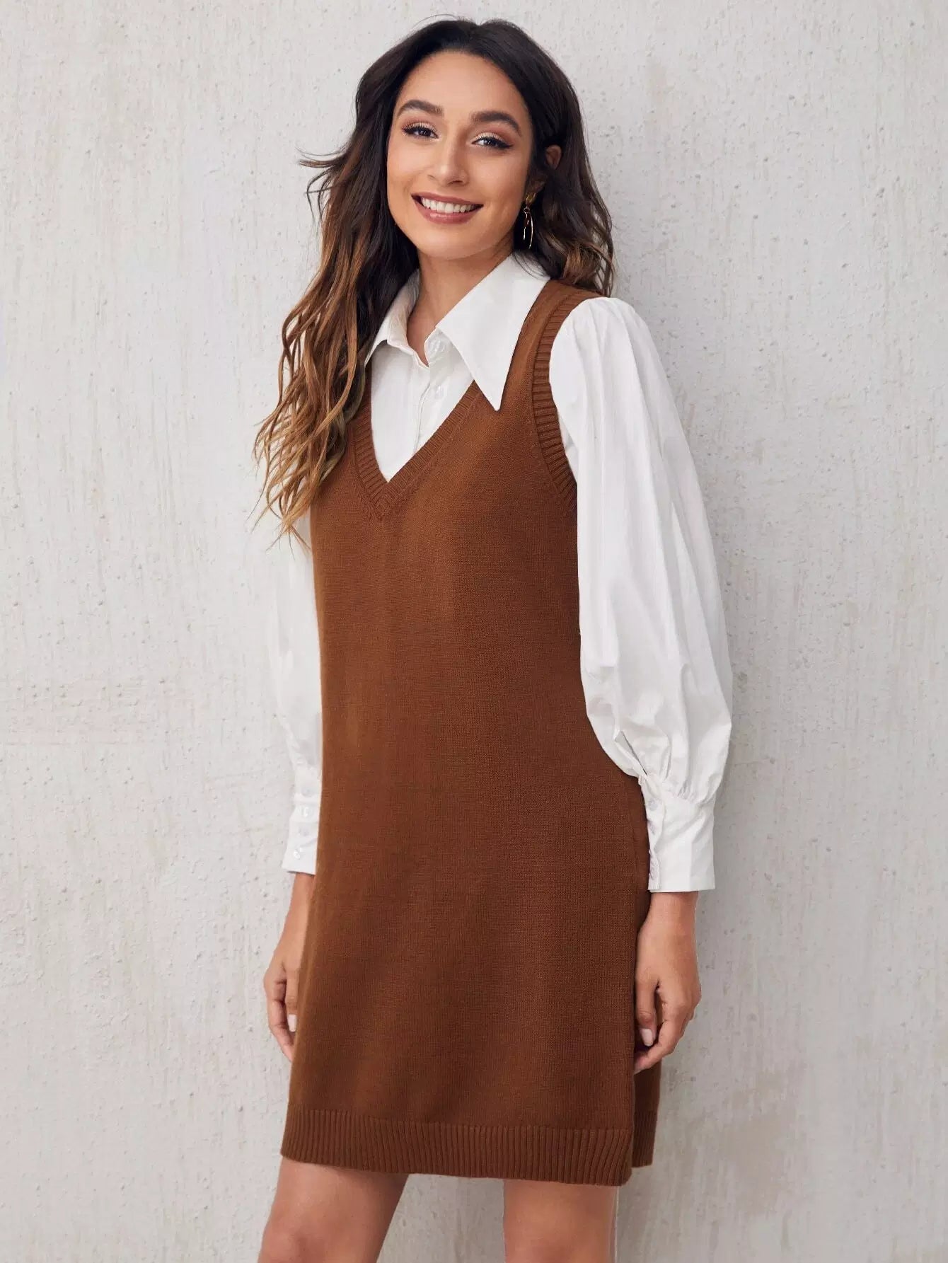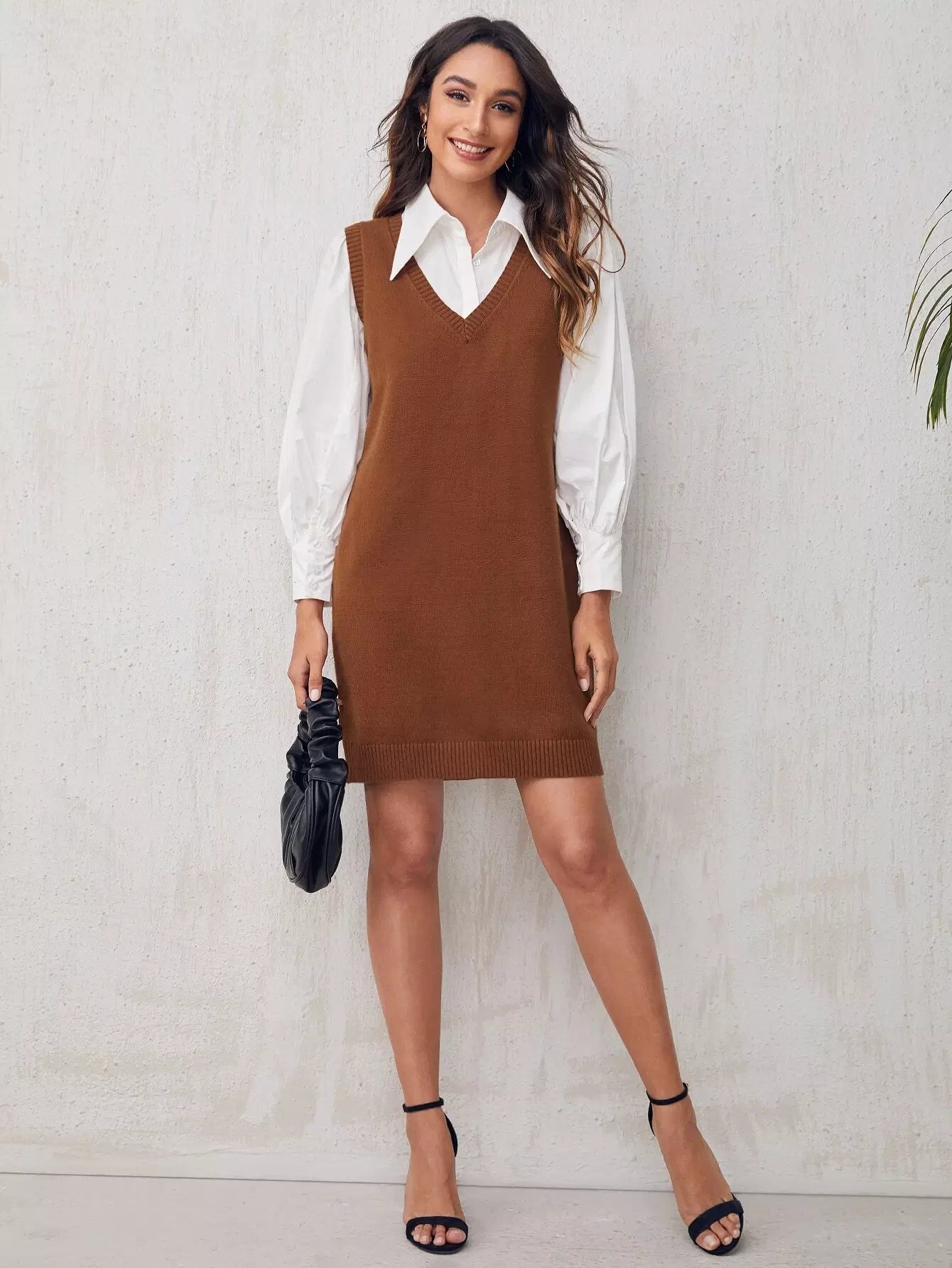 فستان سادة برقبة على شكل حرف V برقبة على شكل حرف V بدون بلوزة