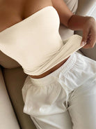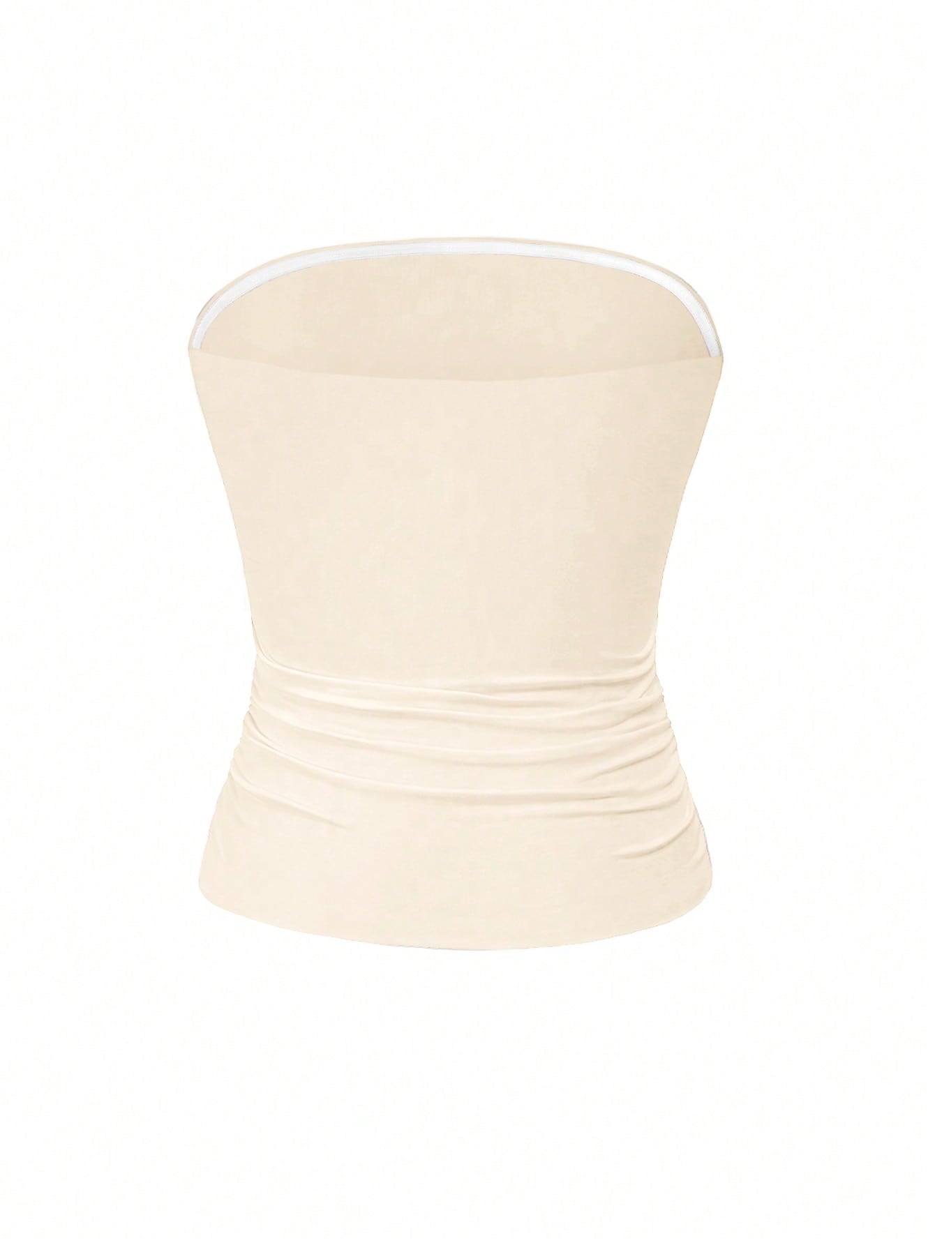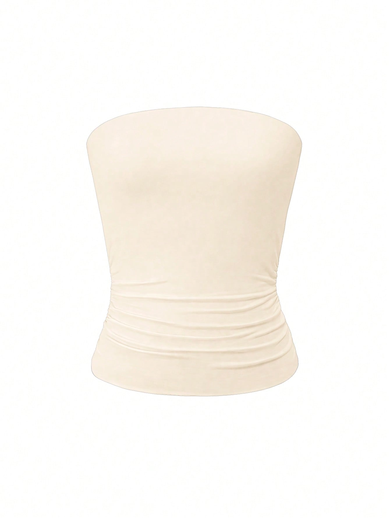 قميص داخلي نسائي بدون خياطة وبدون حمالات بلون موحد ومطاطي ضيق من Vaiaye