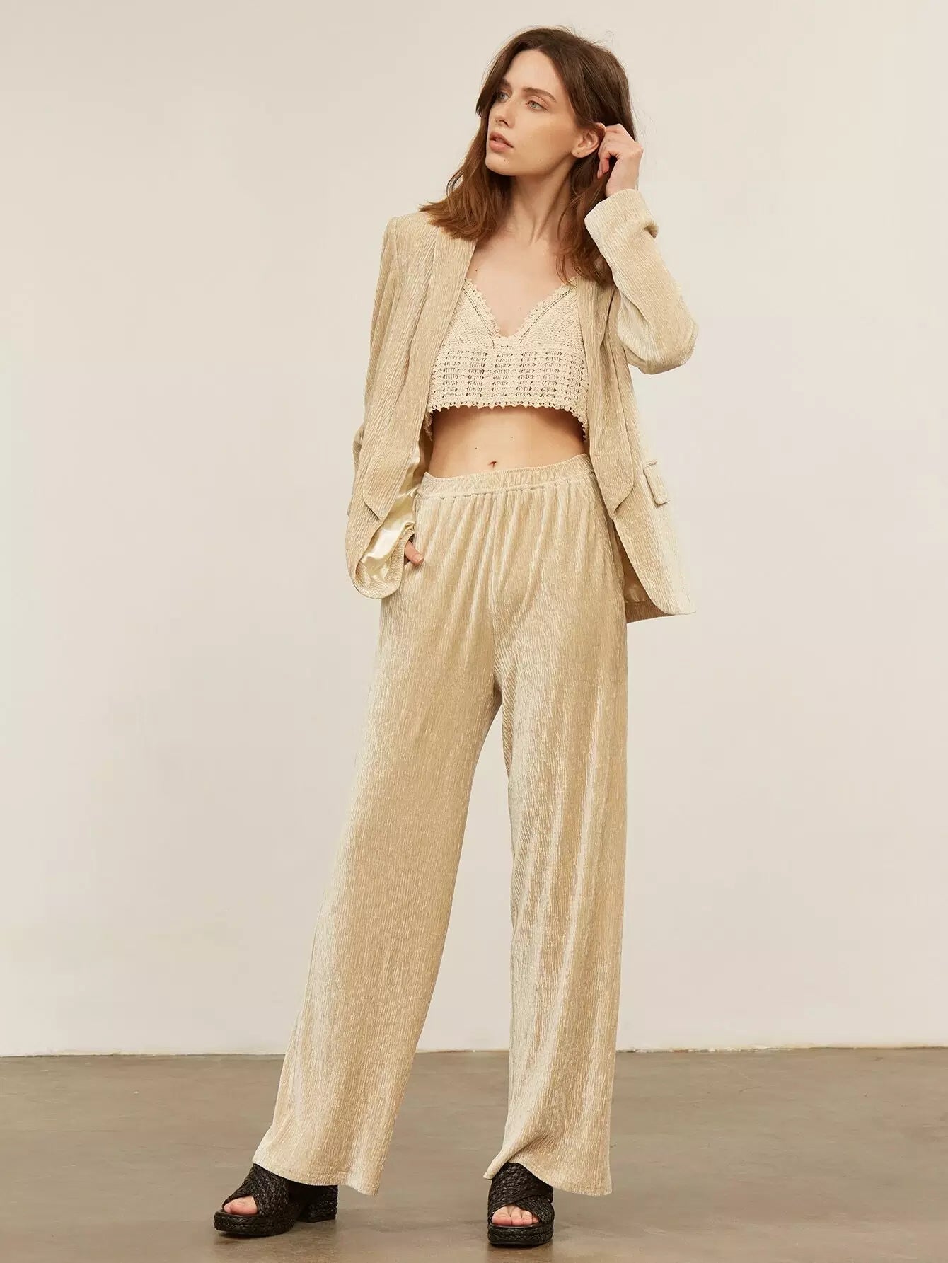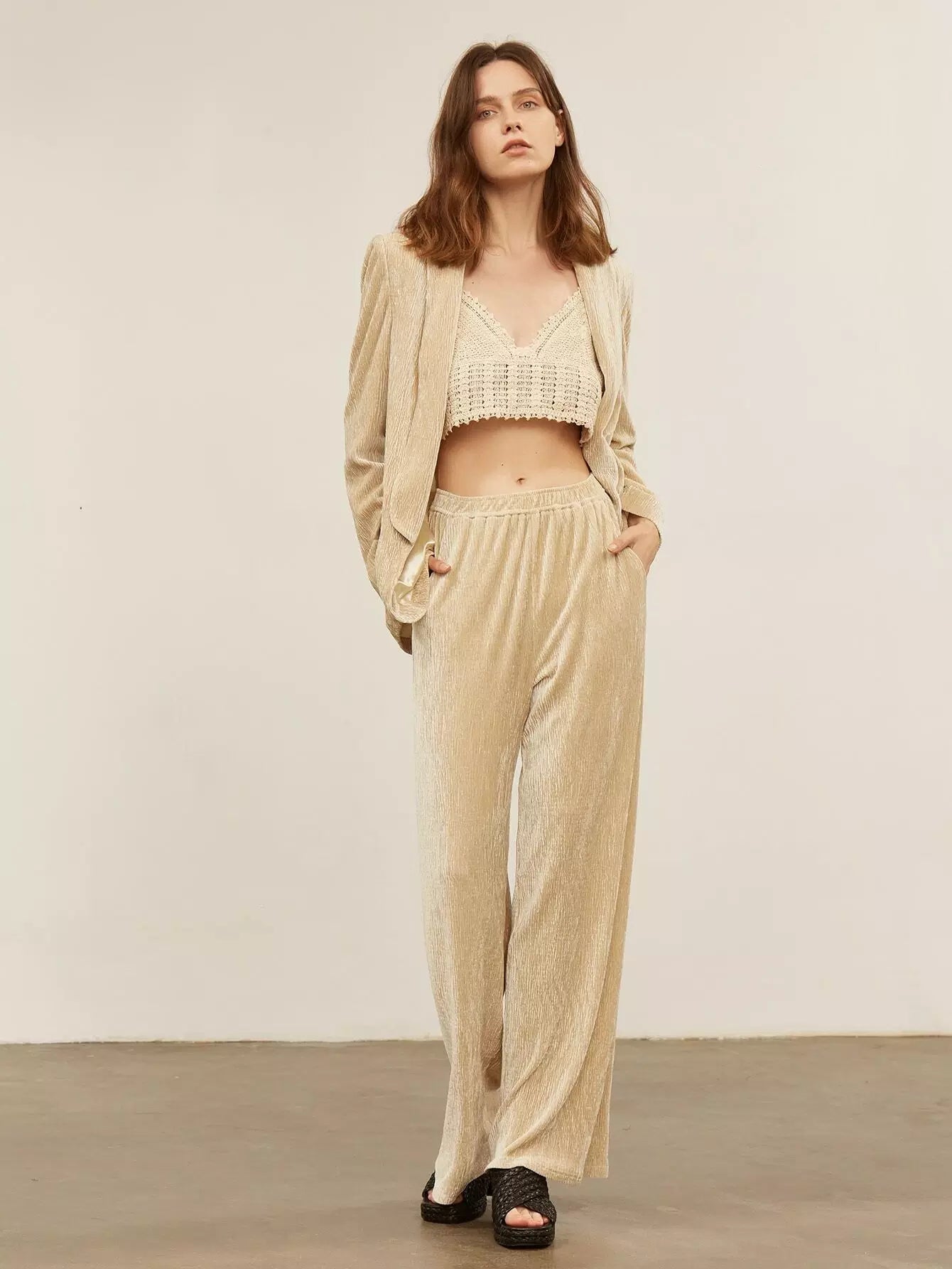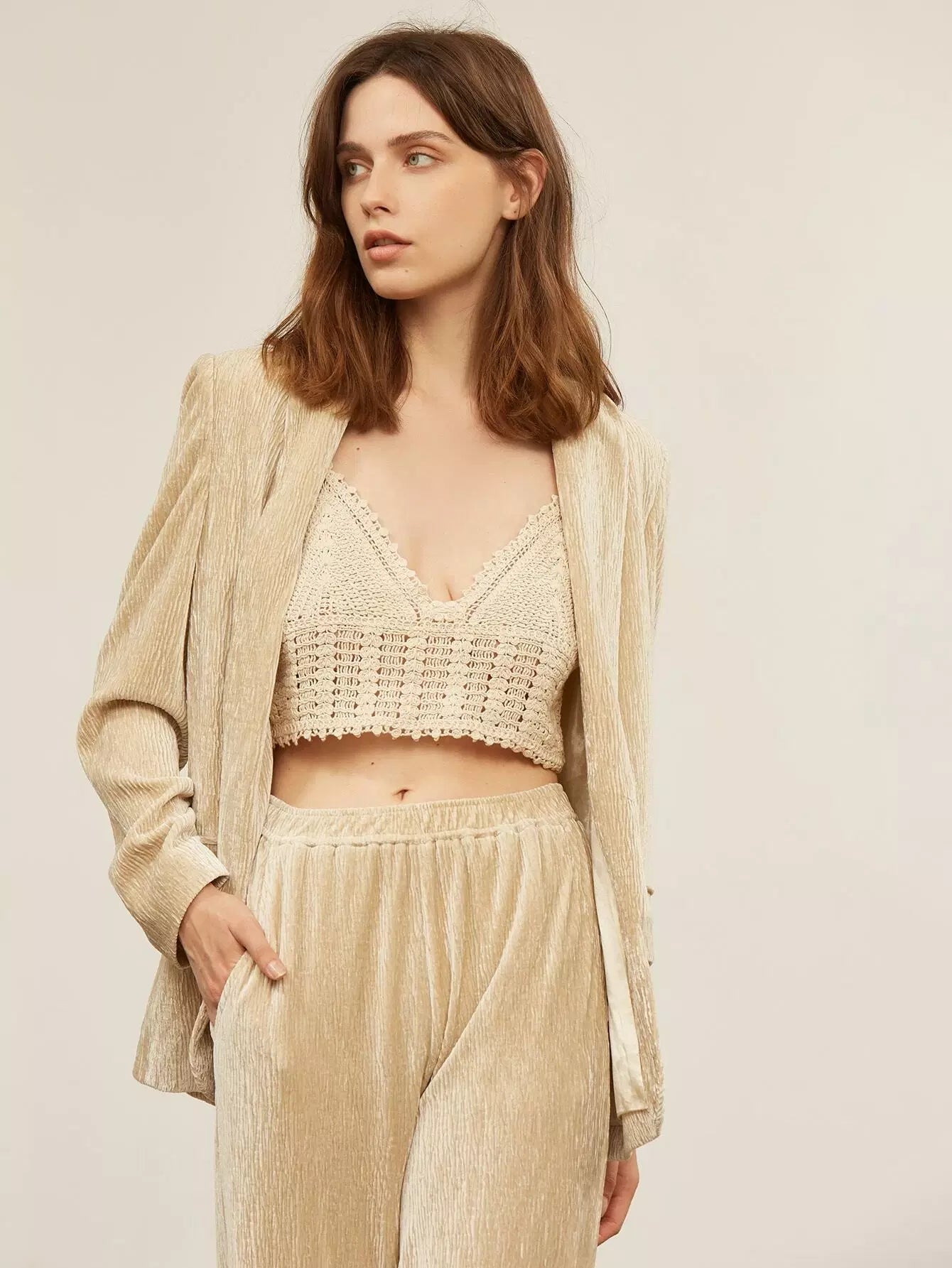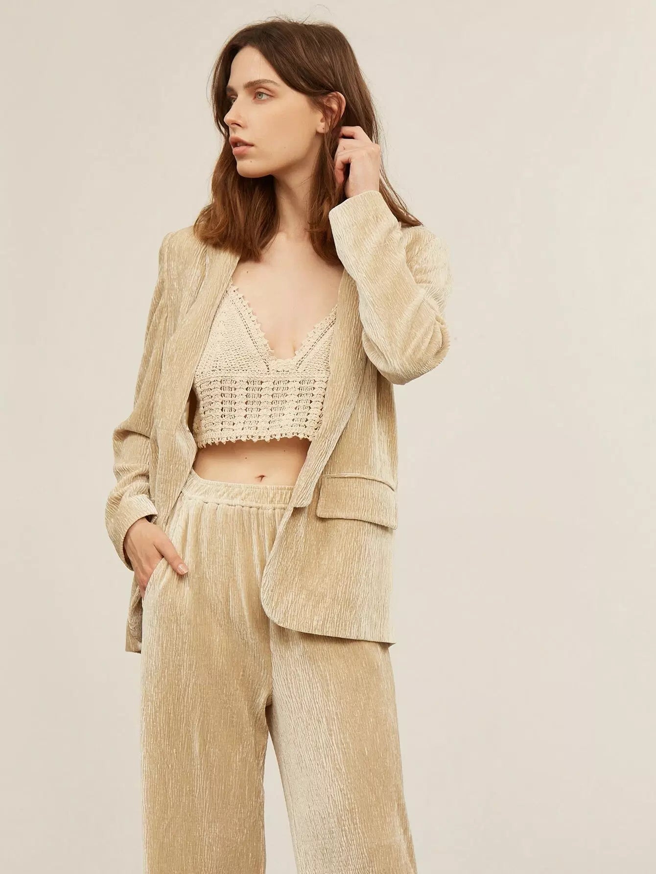 بليزر مخملي بياقة شال بياقة مخملية مريحة