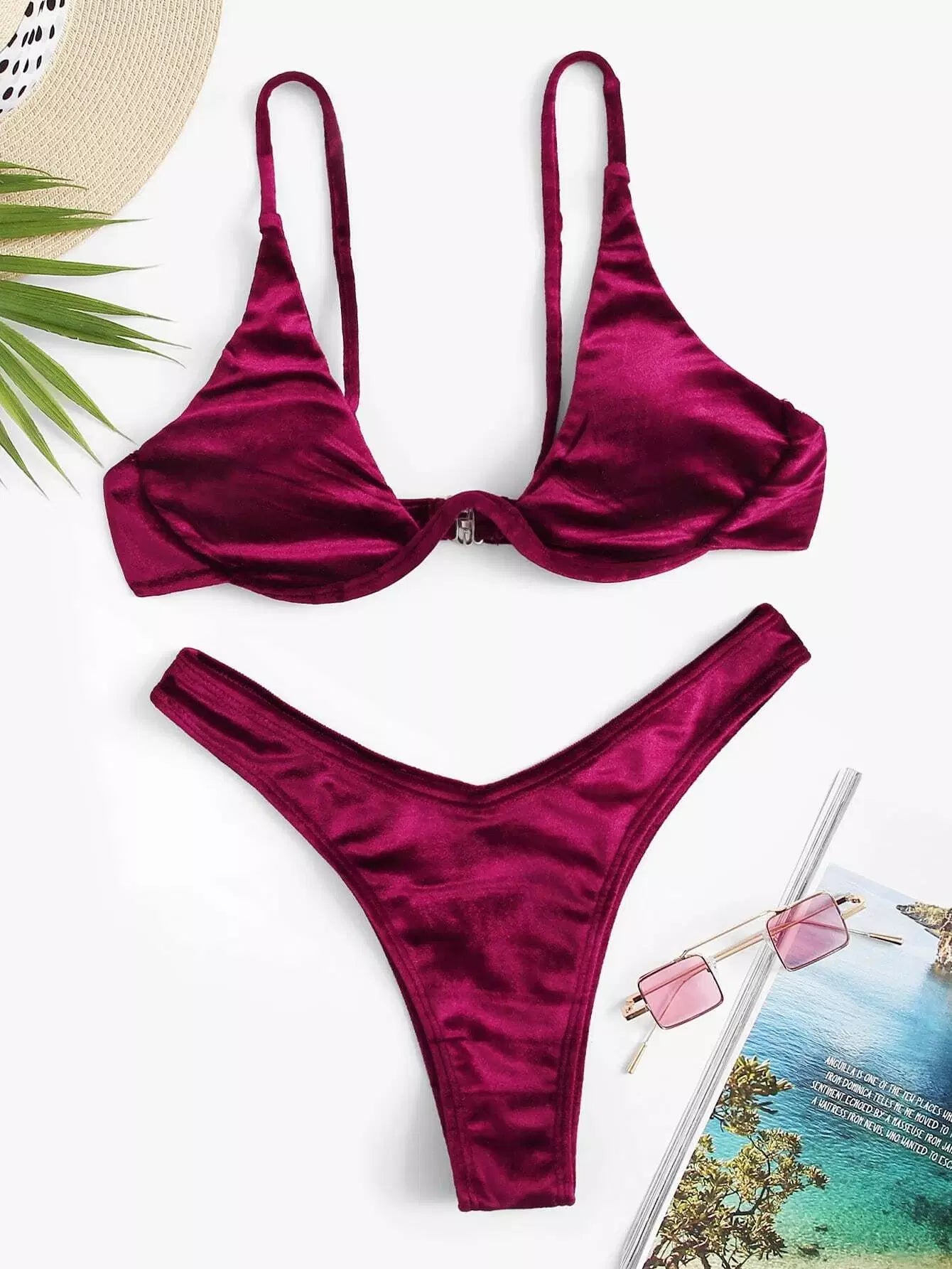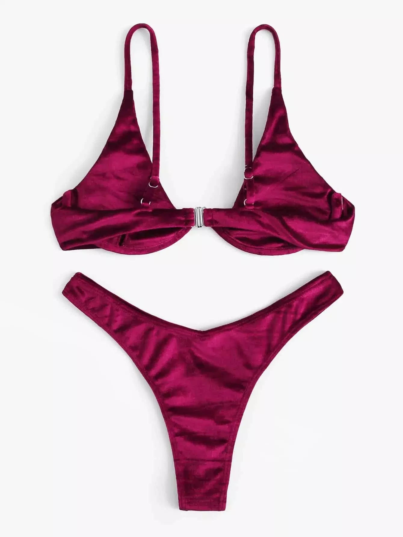 طقم بيكيني مخملي من الأعلى المخملي والساق العالية
