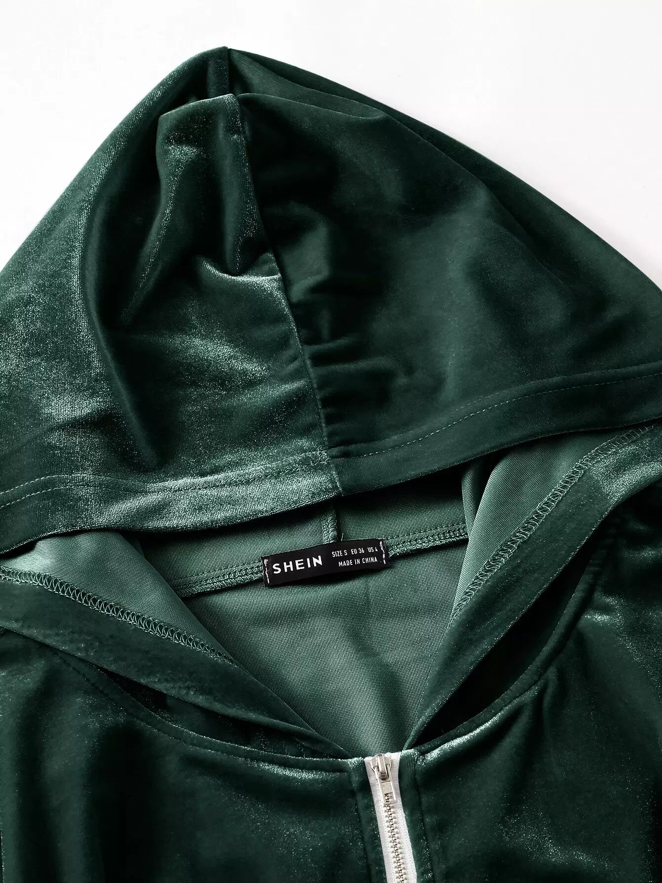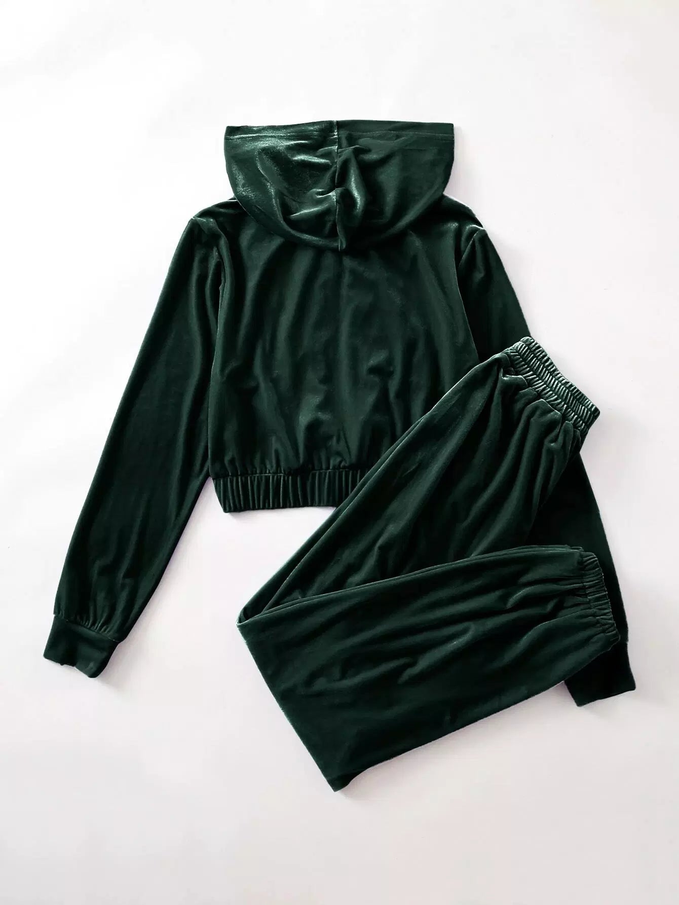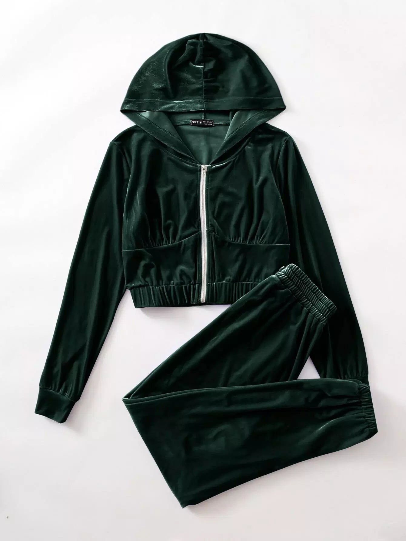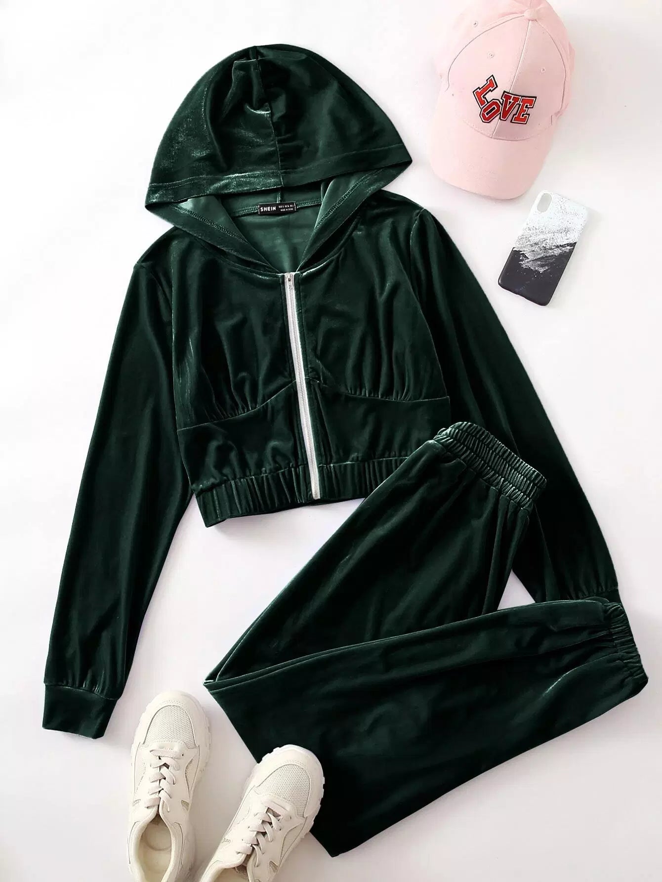 هودي مخملي بسحّاب بغطاء مخملي مع بنطال رياضي