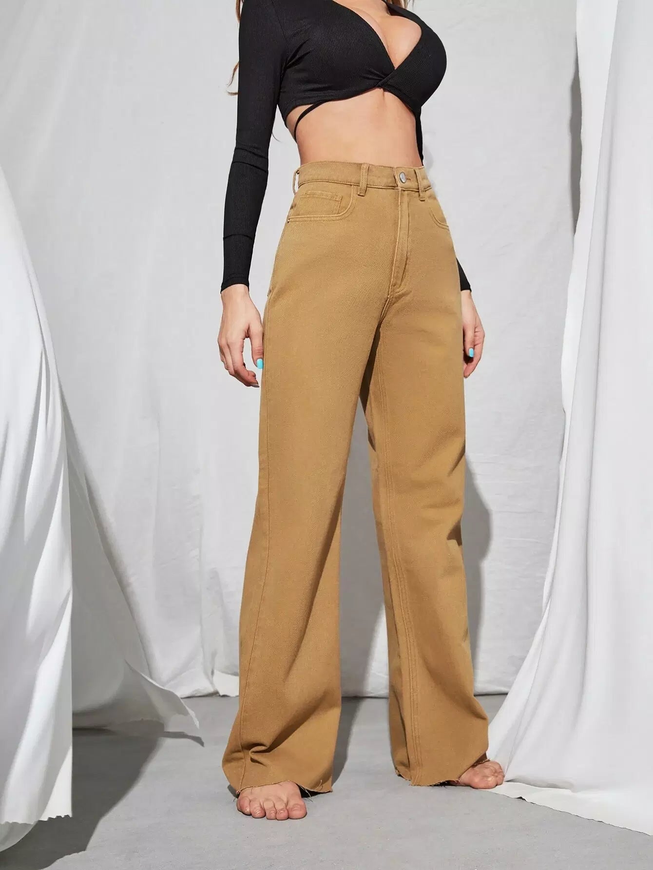 بنطلون جينز جينز عتيق عالي الخصر من التسعينات