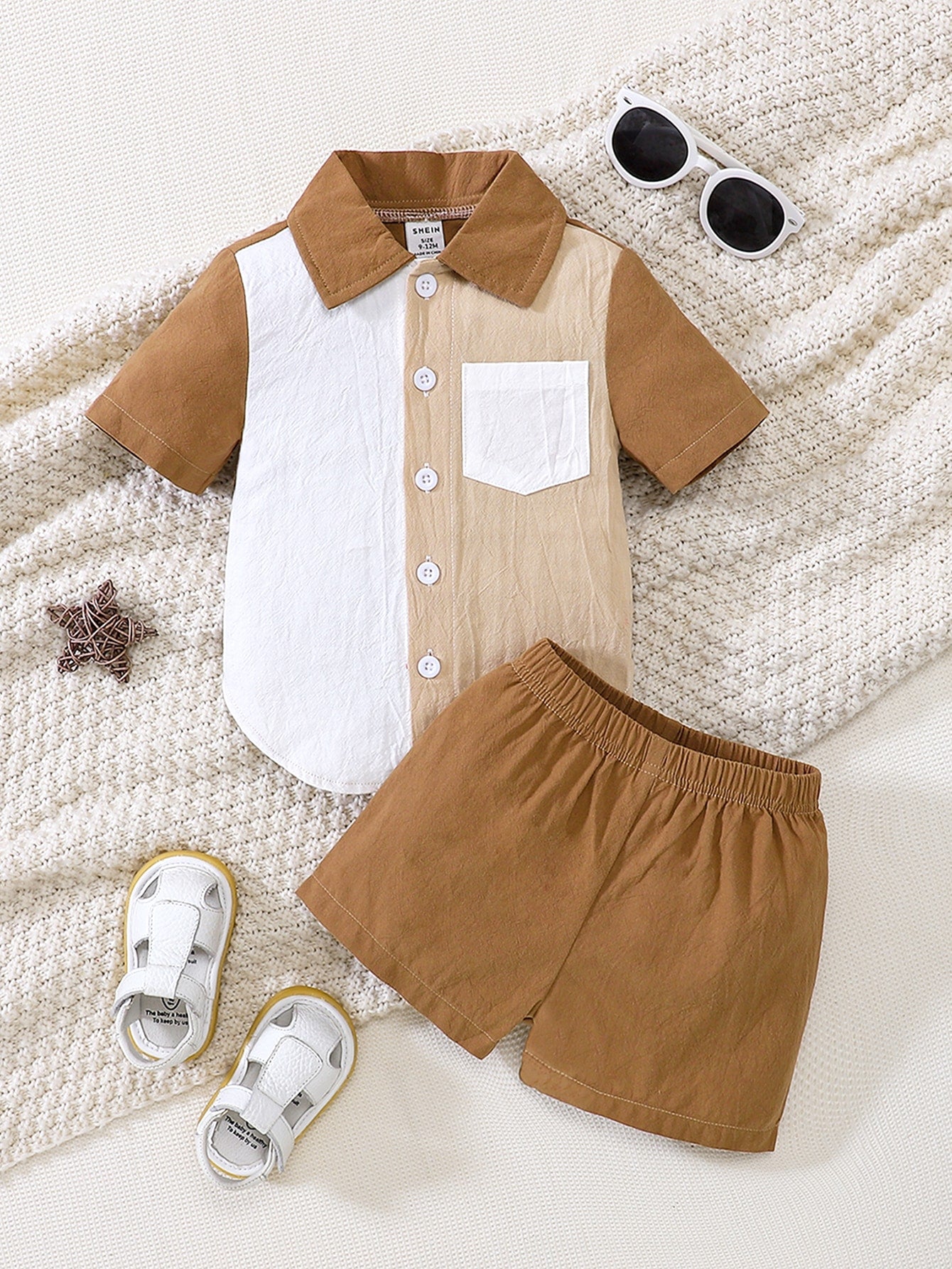 طقم قميص وشورت بياقة أنيقة كاجوال للأولاد من Vintaside Kids، ربيع/صيف