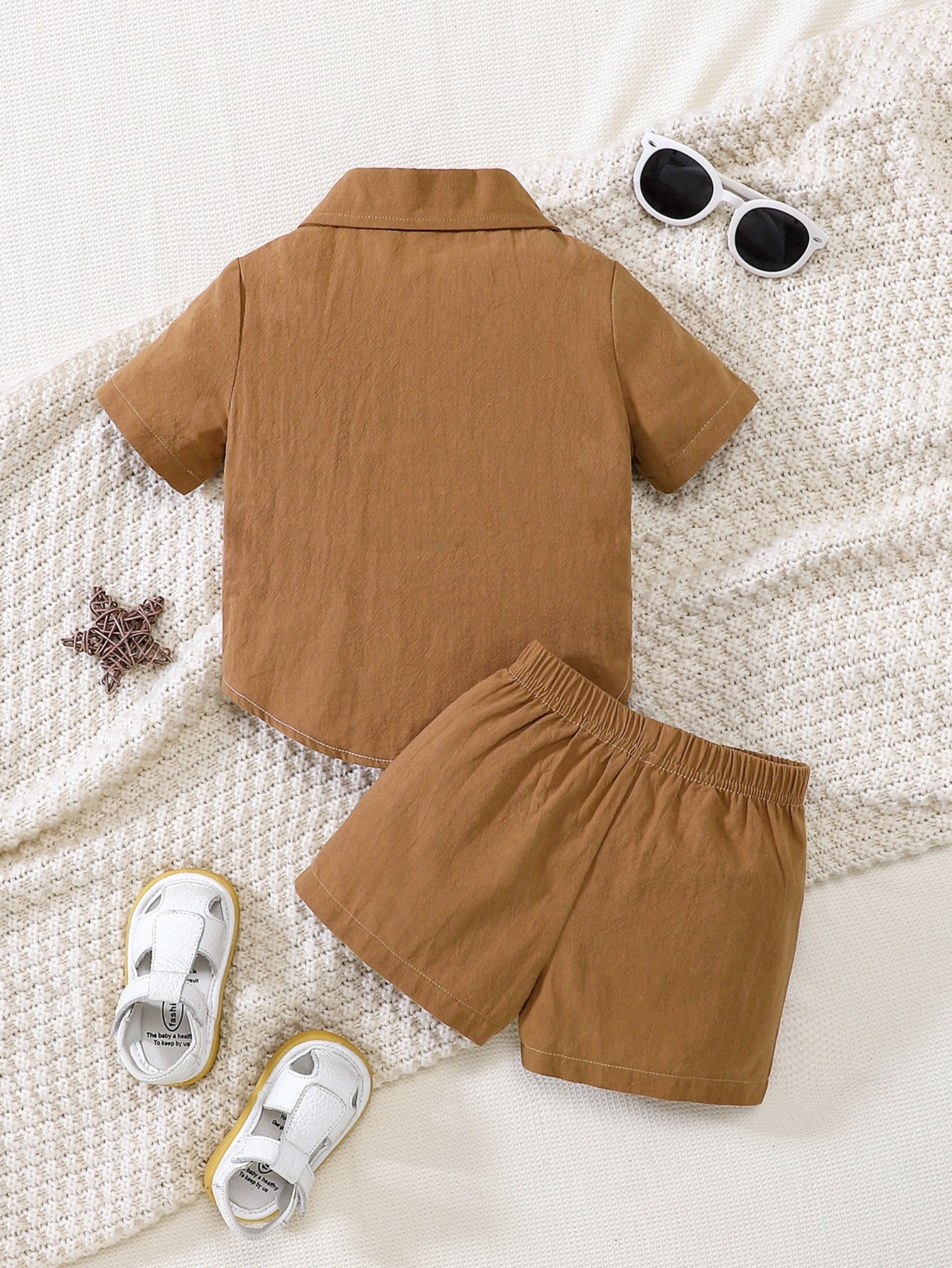 Vintaside Kids Baby Boy Casual Elegant Gentleman Style Collared Shirt & Shorts Set, Spring/Summer