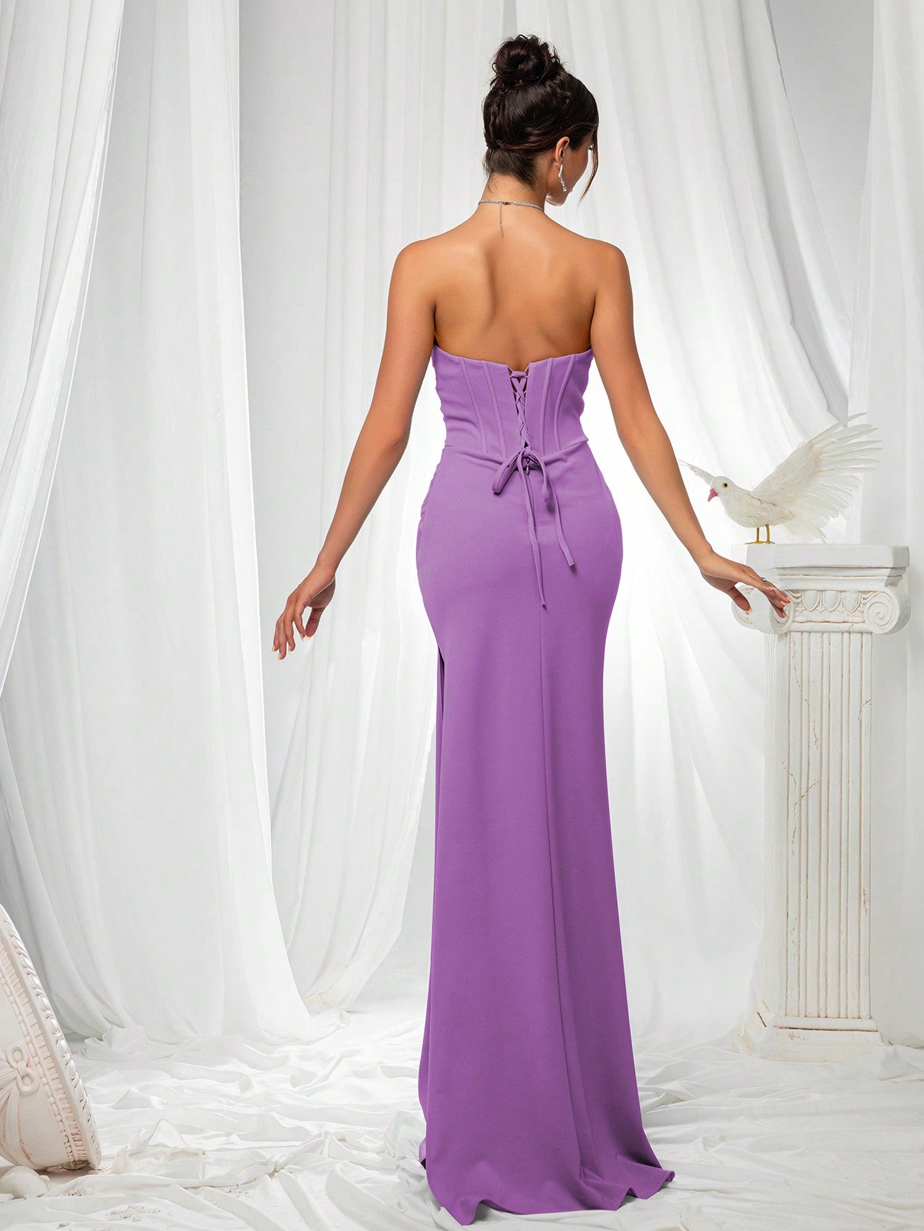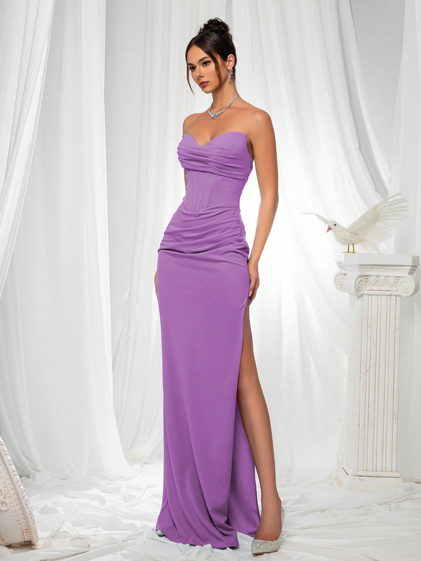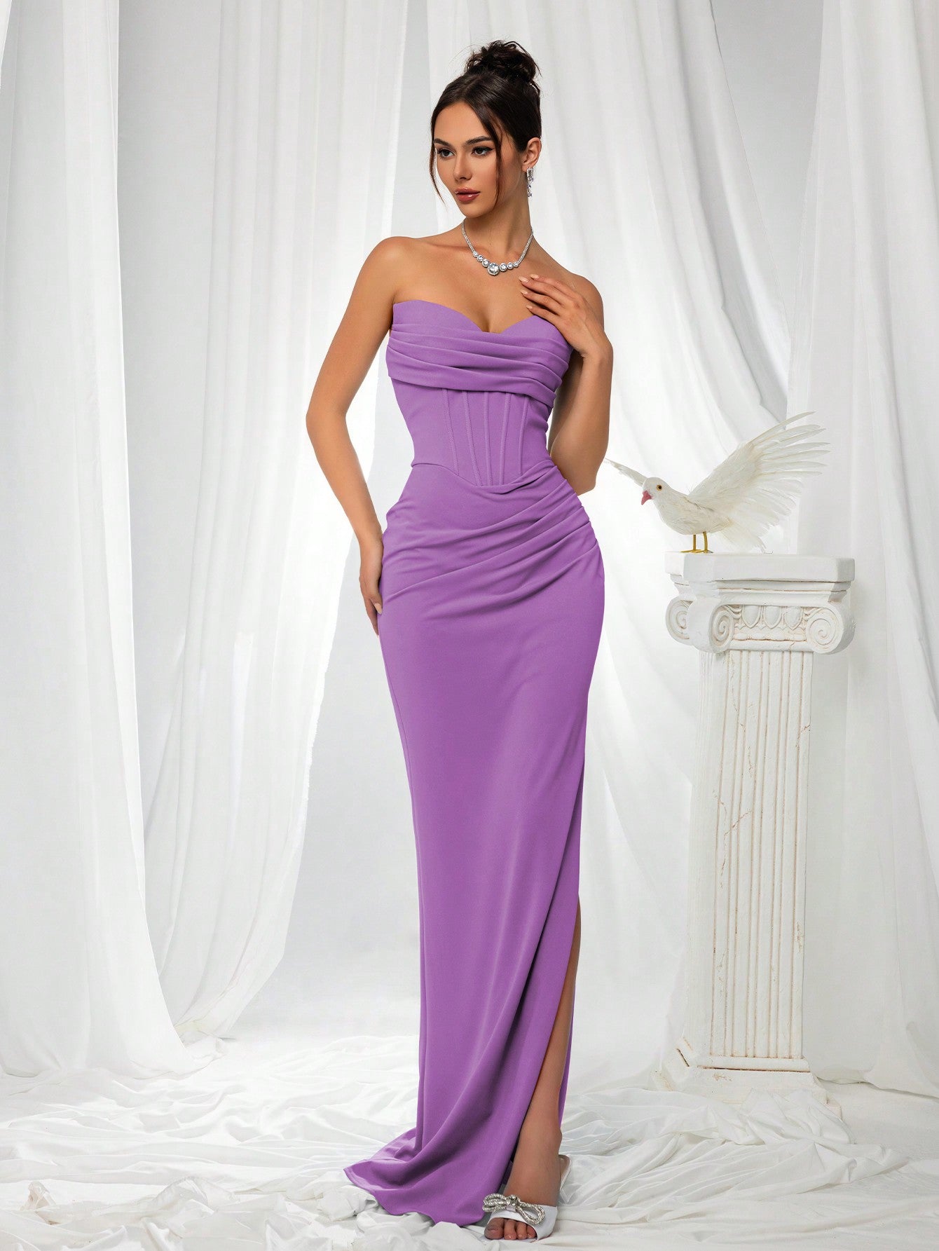 فستان وصيفة العروس الأنيق من VIPGIRL: فستان ساتان ضيق بدون حمالات، بتصميم أنيق، مع صدرية مشدودة وخصر منسدل - ملابس سهرة رسمية فاخرة بتصميم بسيط