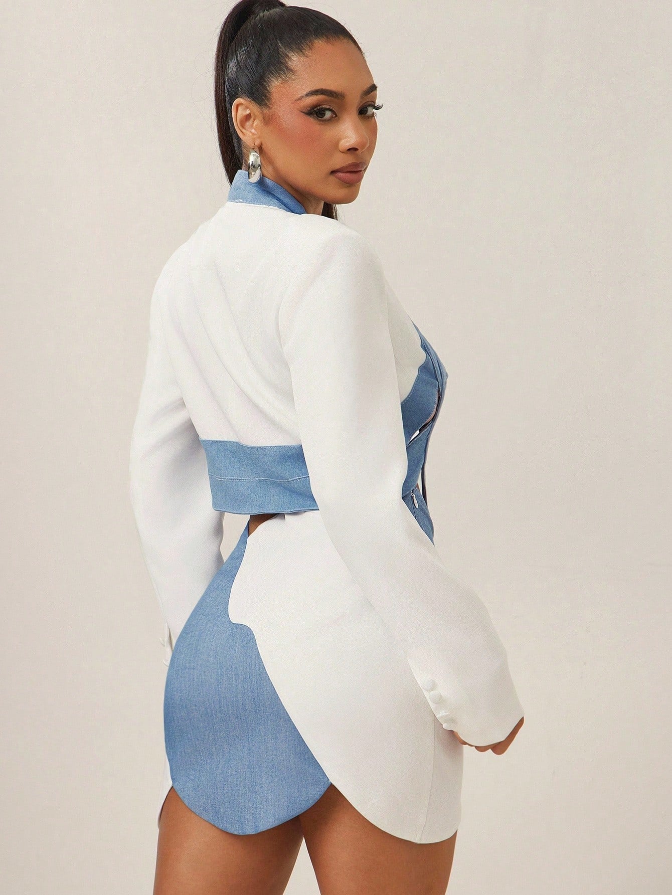 بليزر قصير من فيكسي بتفاصيل نسيجية متعددة الوسائط مع وسادات كتف