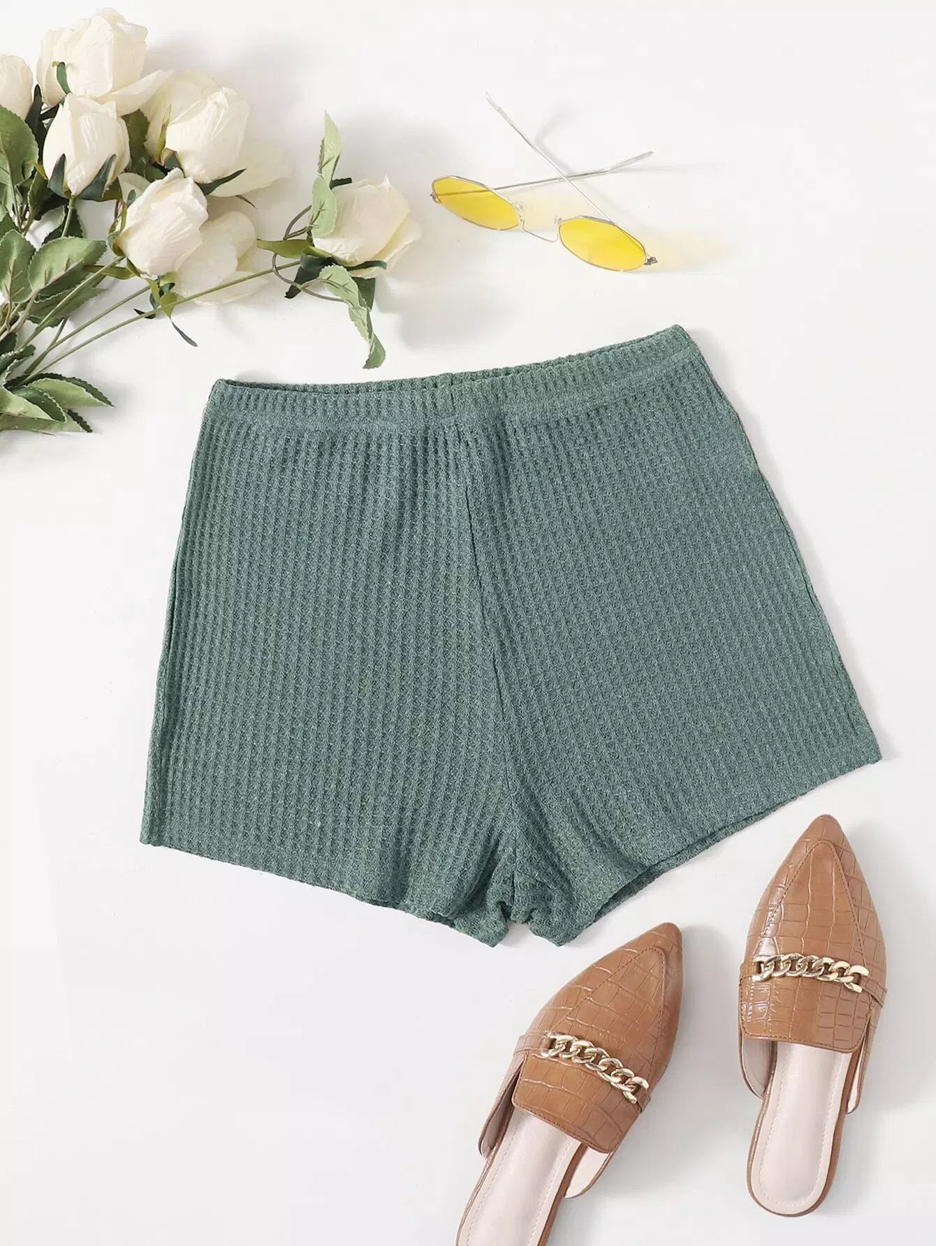 شورت سادة محبوك بنمط الوافل