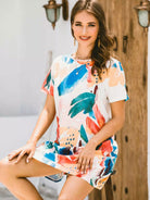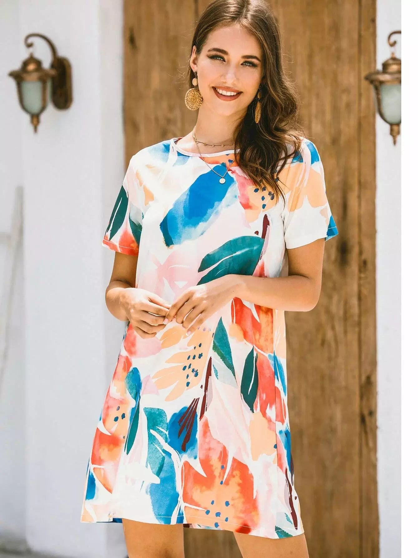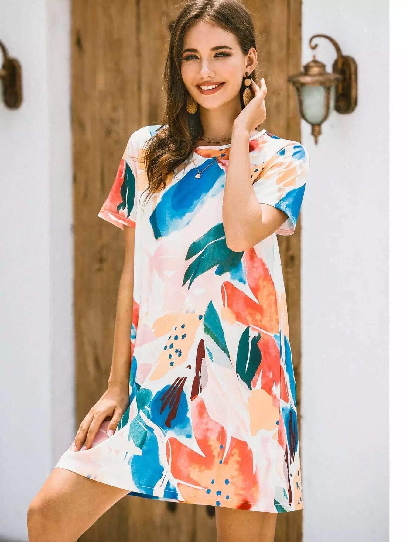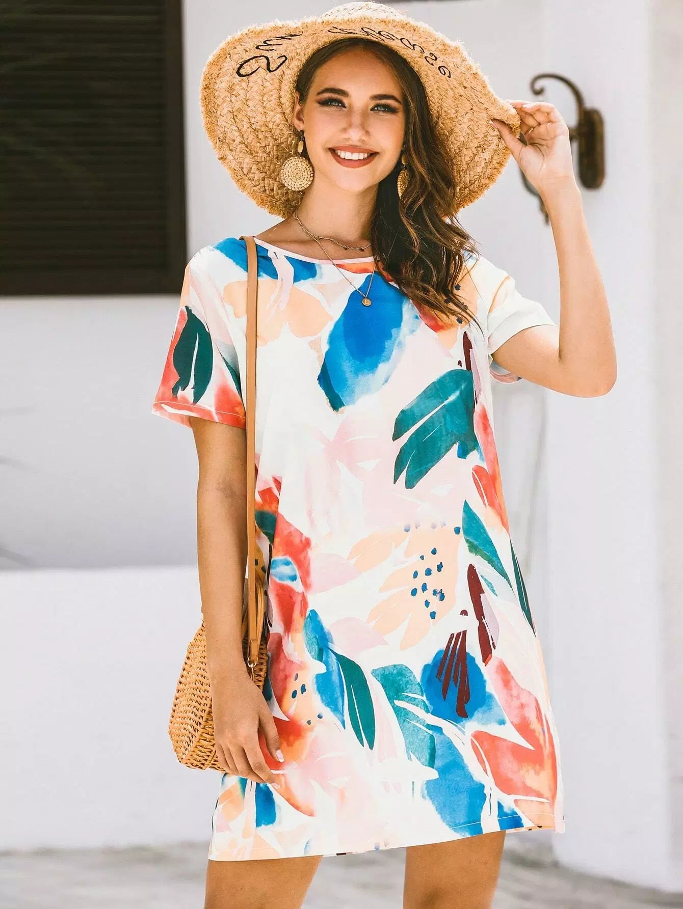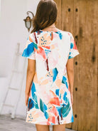 فستان قصير بطبعة استوائية بألوان مائية