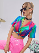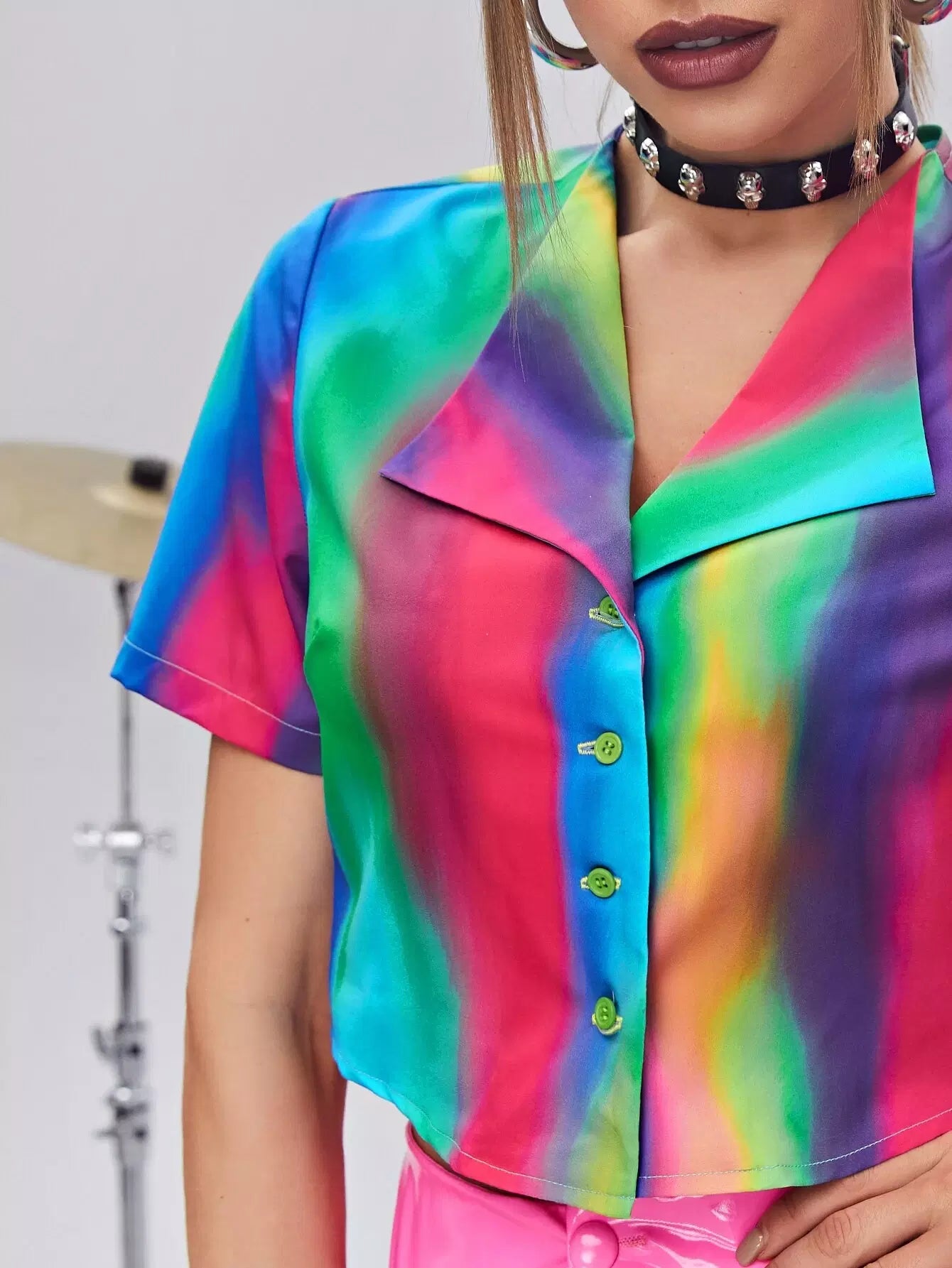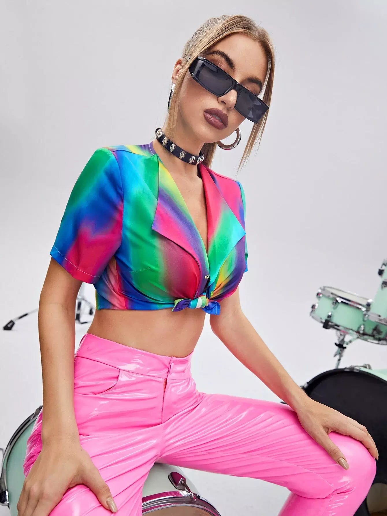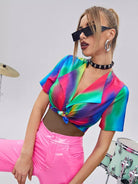 بلوزة بياقة شلال بياقة شلال بحافة عقدة ملونة