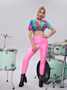 للنساء - بلوزة ذات ياقة شلال وحاشية ملونة