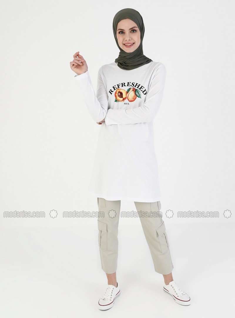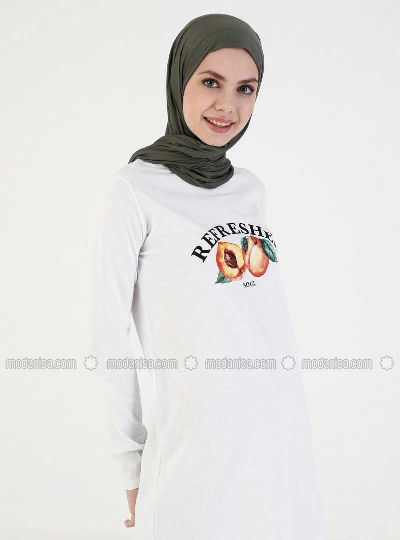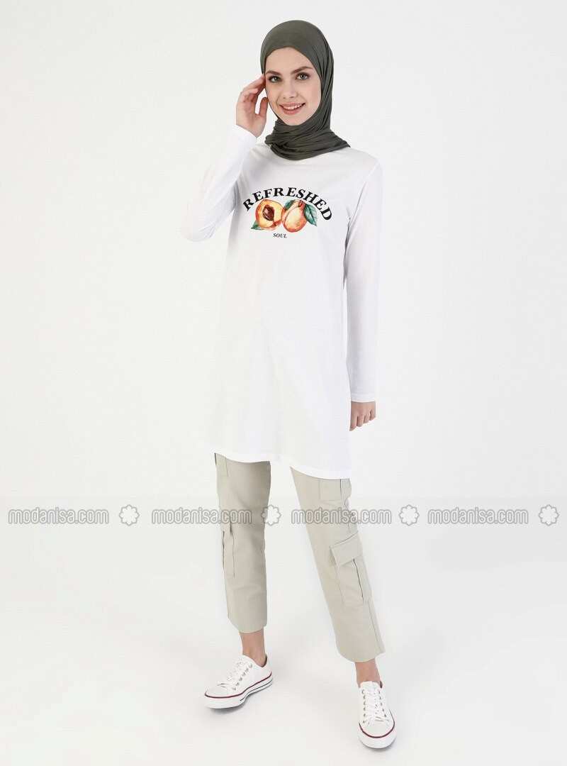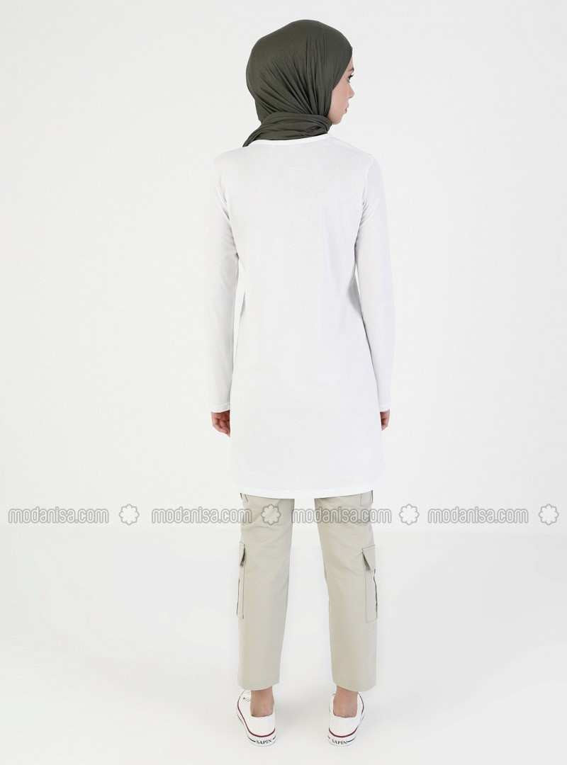 تونيك أبيض برقبة دائرية