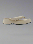 شبشب أبيض مع نعل سميك وأحزمة مبطنة مريحة. خيار عملي وأنيق.