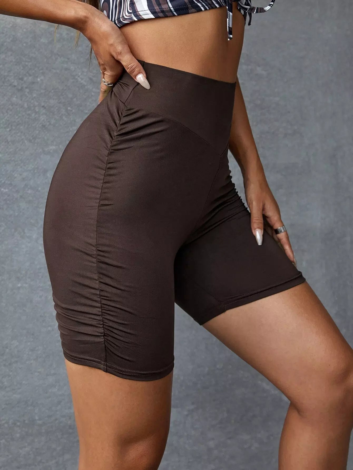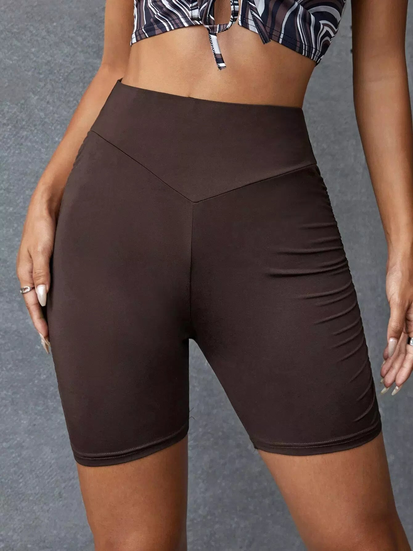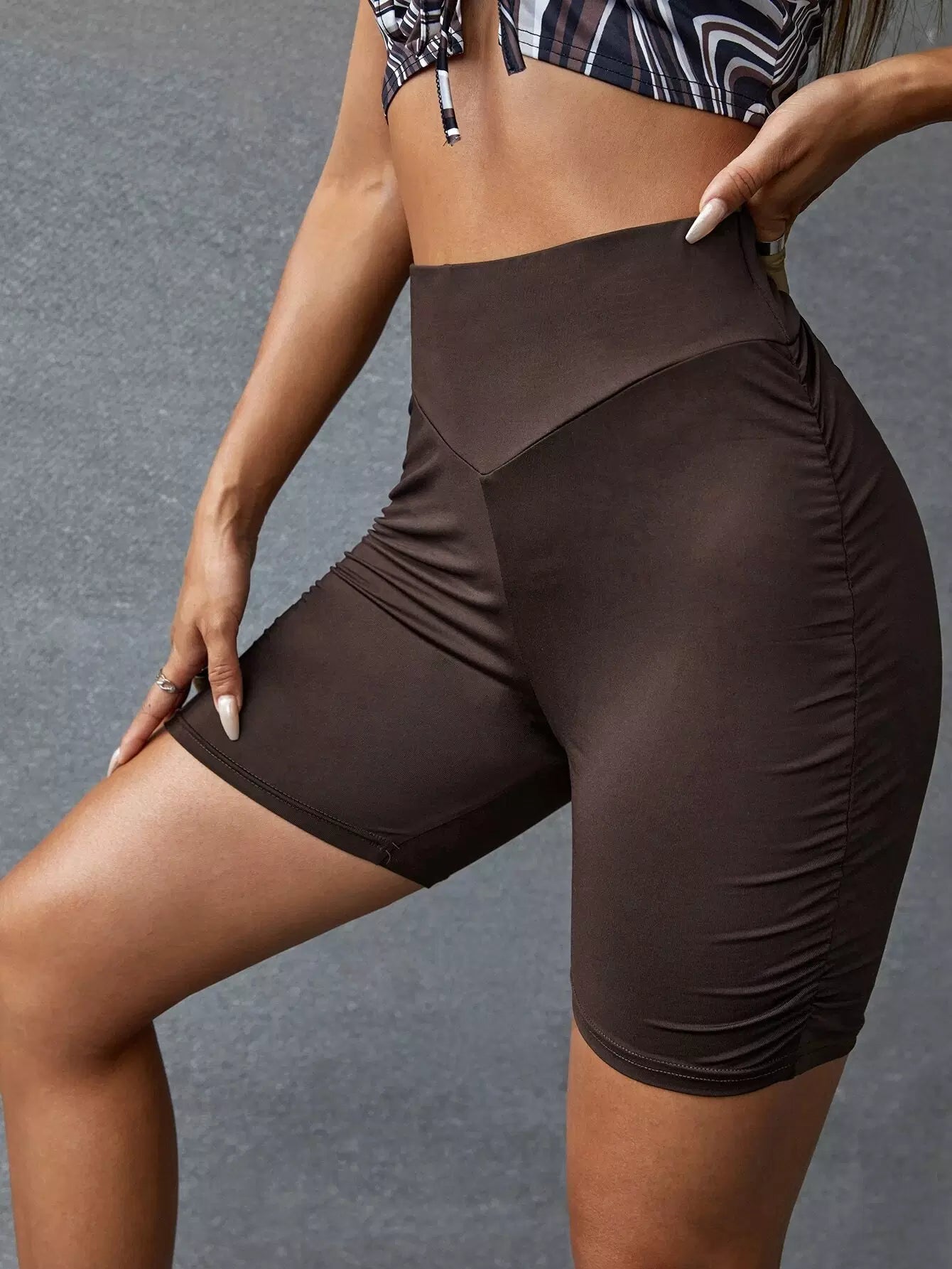 شورت بخصر عريض بحزام عريض مكشكش على شكل حزام
