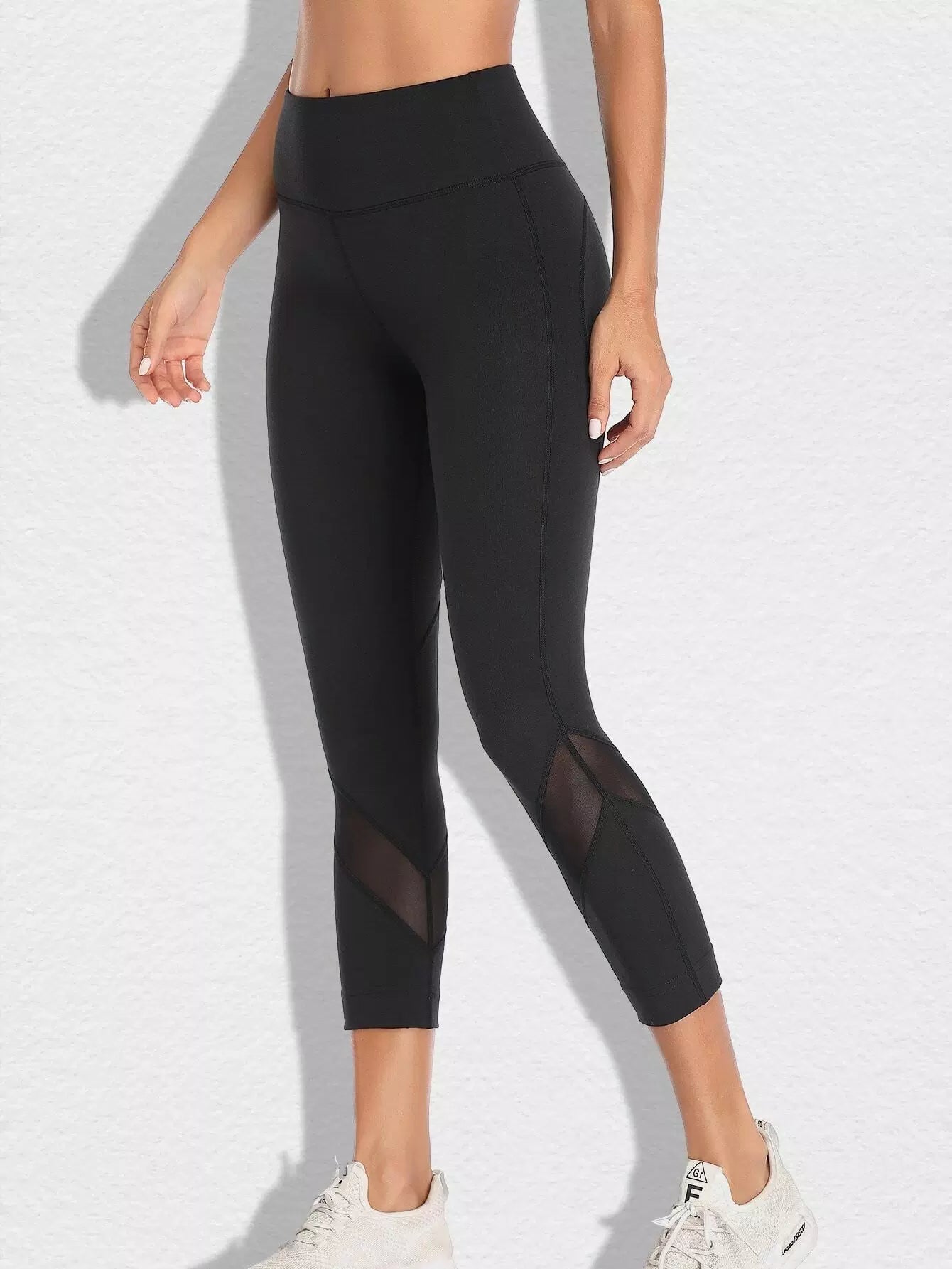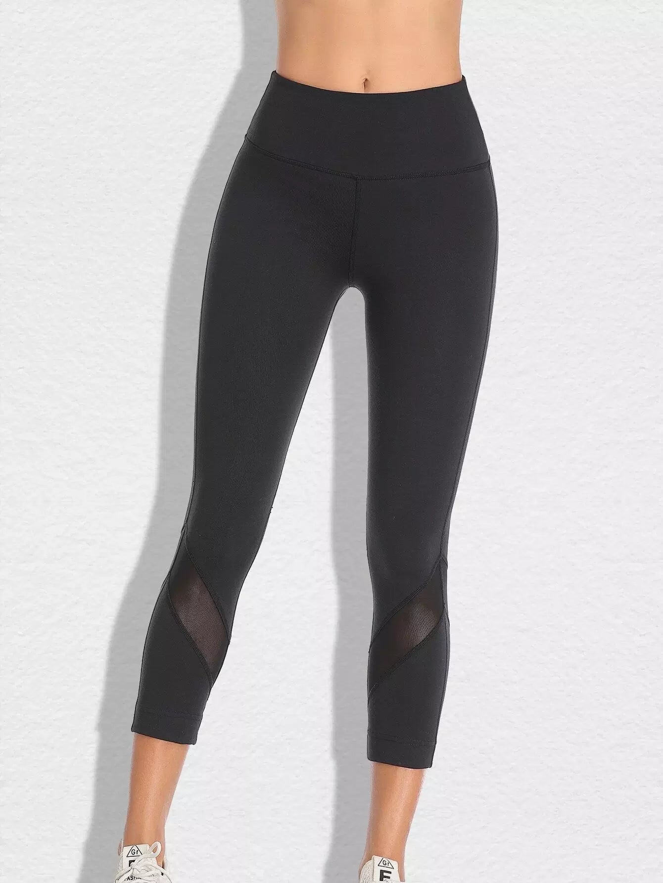 بنطلون ضيق رياضي بحزام خصر عريض بحياكة شبكية بتفاصيل شبكية