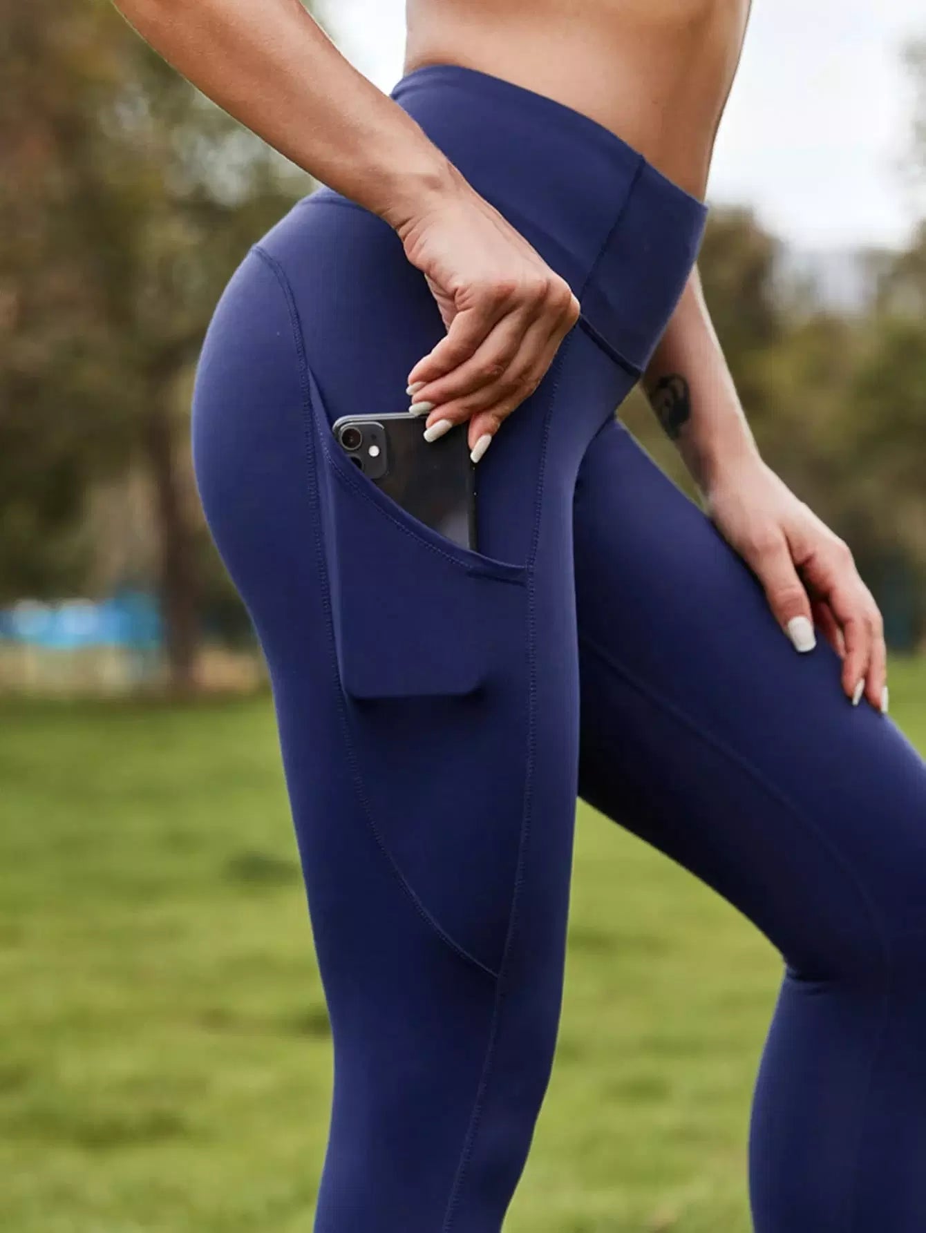 بنطلون ضيق رياضي عريض الخصر مع جيب للهاتف