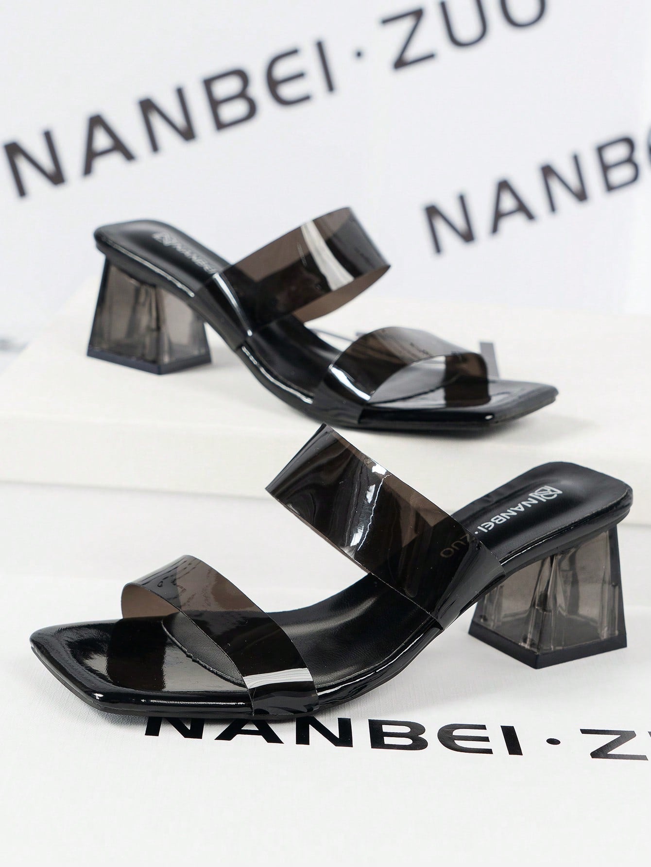 صندل نسائي أسود بكعب عالٍ ذو حزامين لحفلات الزفاف