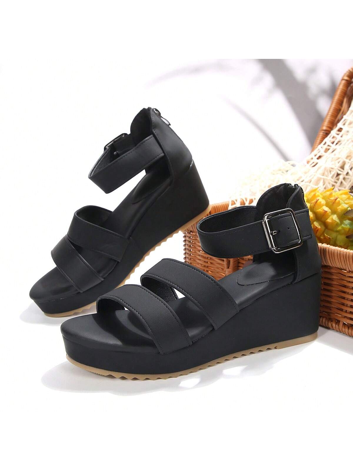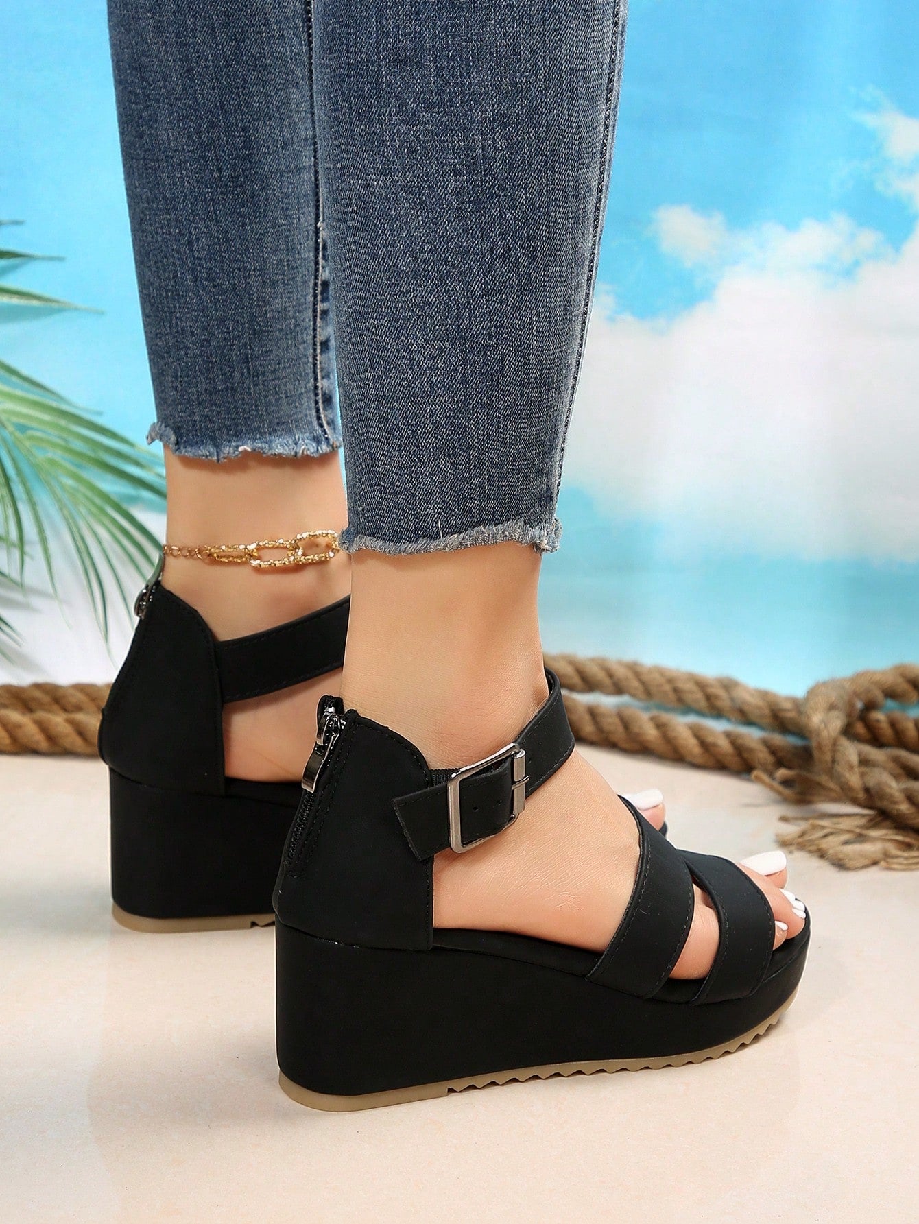 women Women Buckle Decor Ankle Strap Wedge Sandals