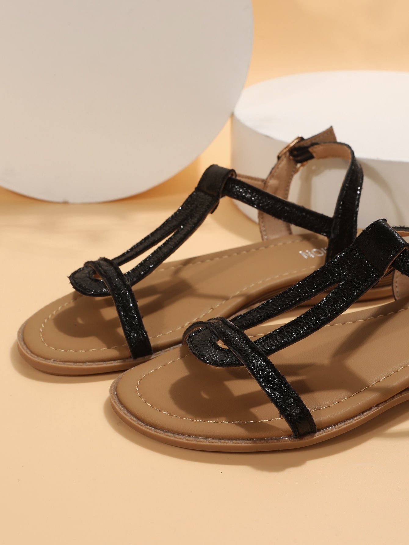 صنادل نسائية مفتوحة من الخلف - صنادل سوداء أنيقة مسطحة