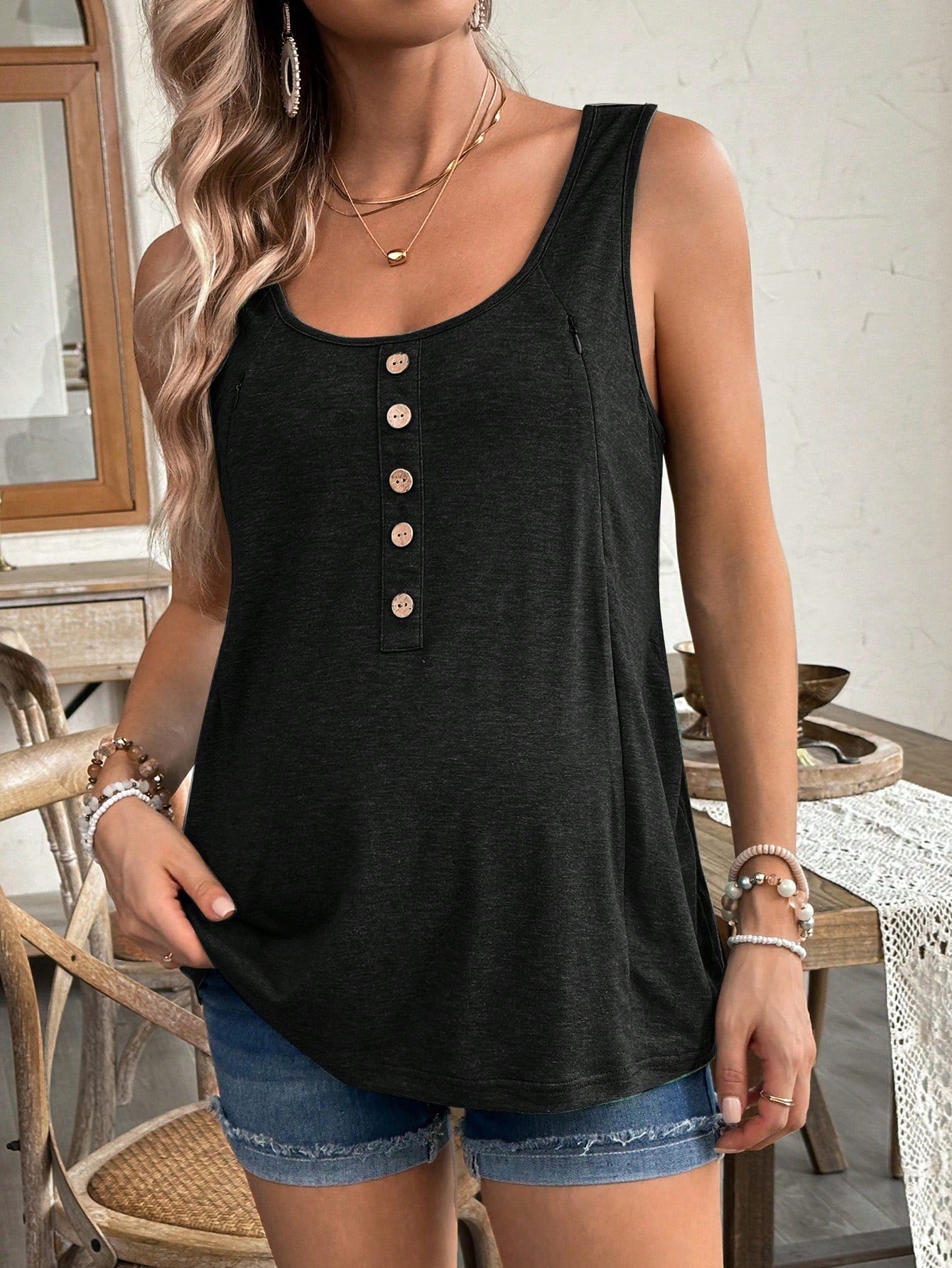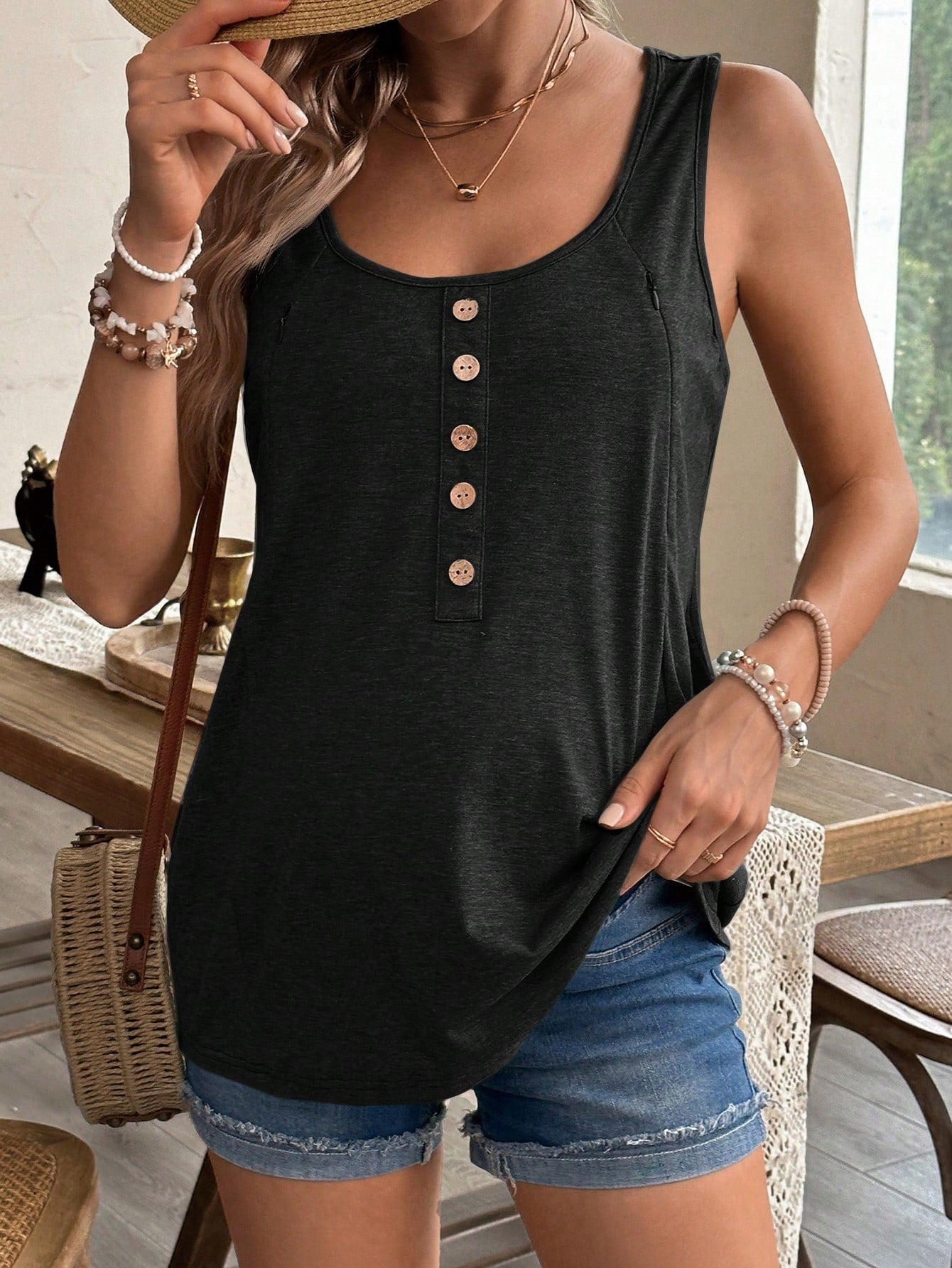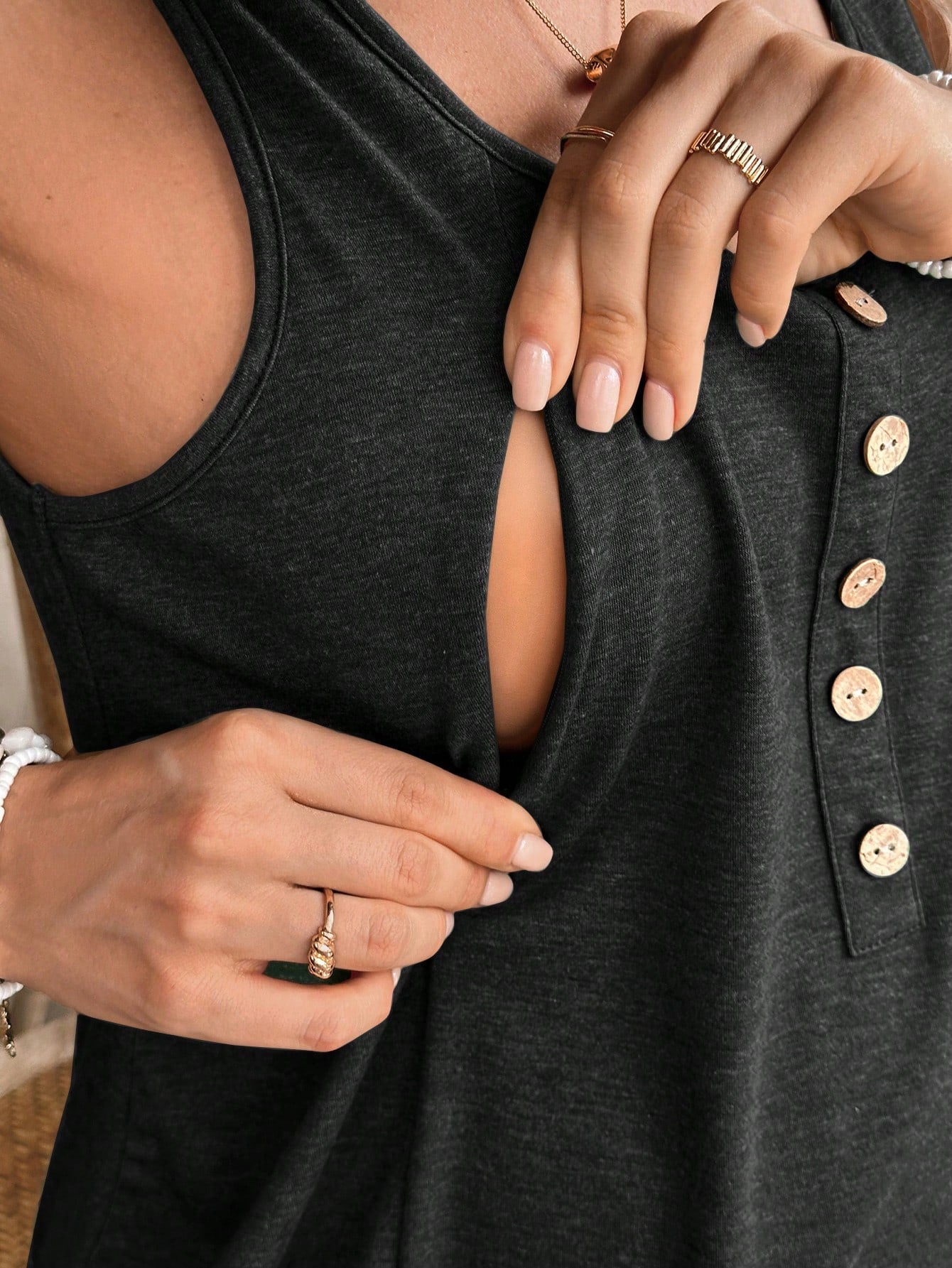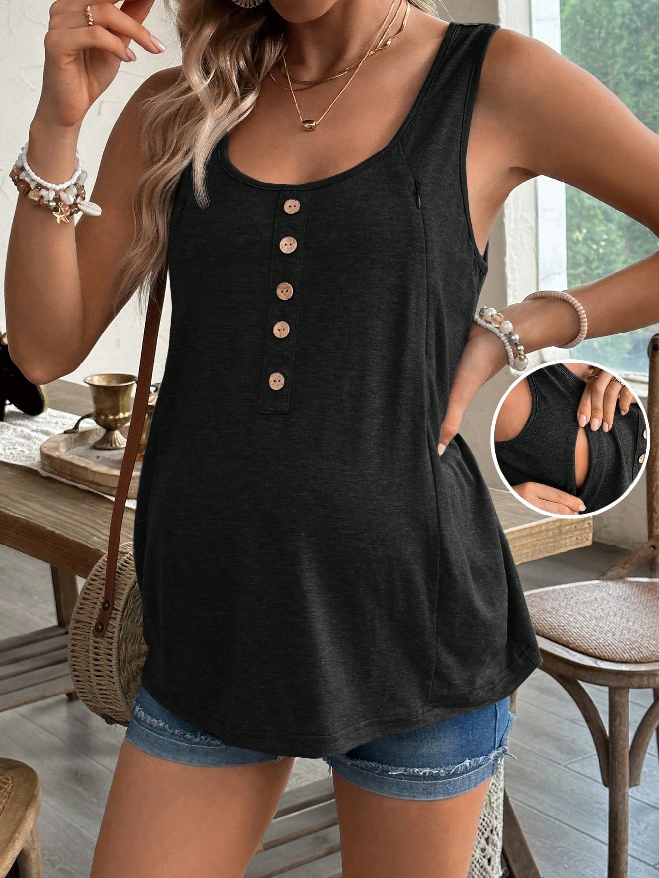 بلوزة رضاعة نسائية سادة اللون بتصميم بسيط وبدون أكمام، مناسبة للارتداء اليومي أثناء الحمل