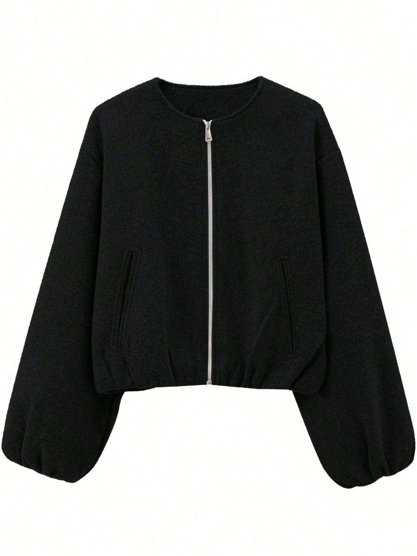 جاكيت بيسبول نسائي، جاكيت بومبر، تصميم عصري، ياقة دائرية، أكتاف منسدلة، أكمام واسعة، كارديجان بسحاب، ملابس خارجية
