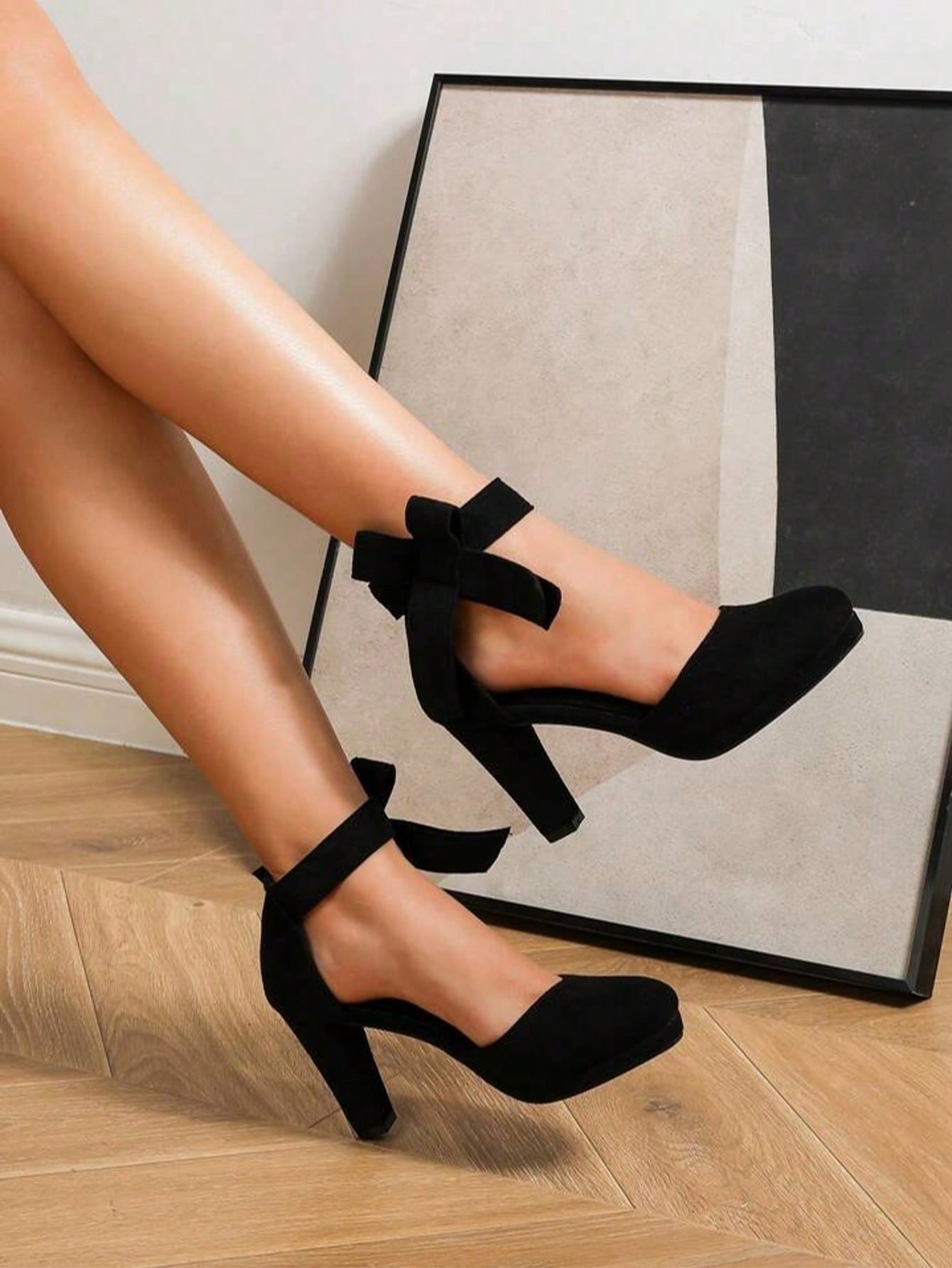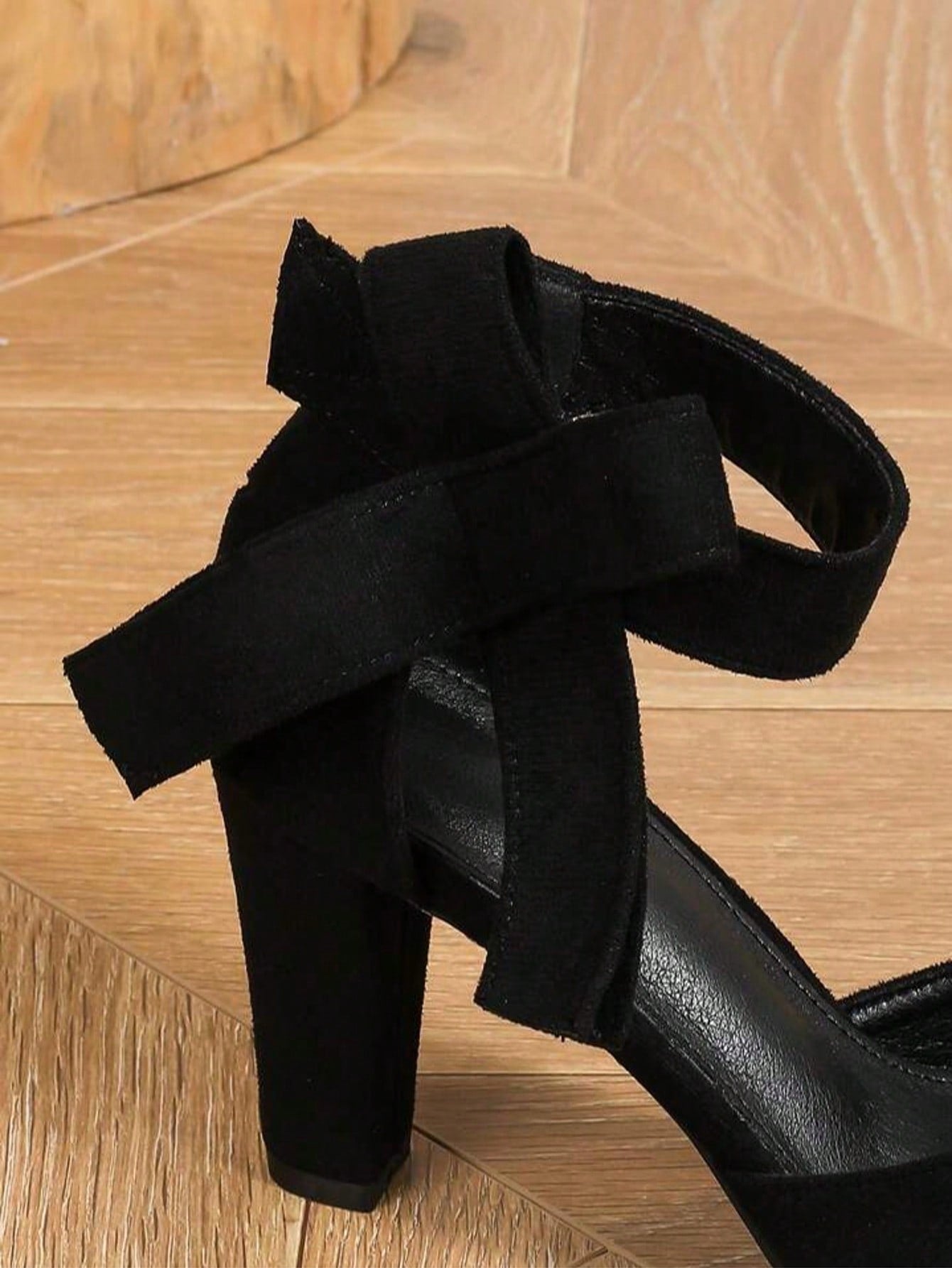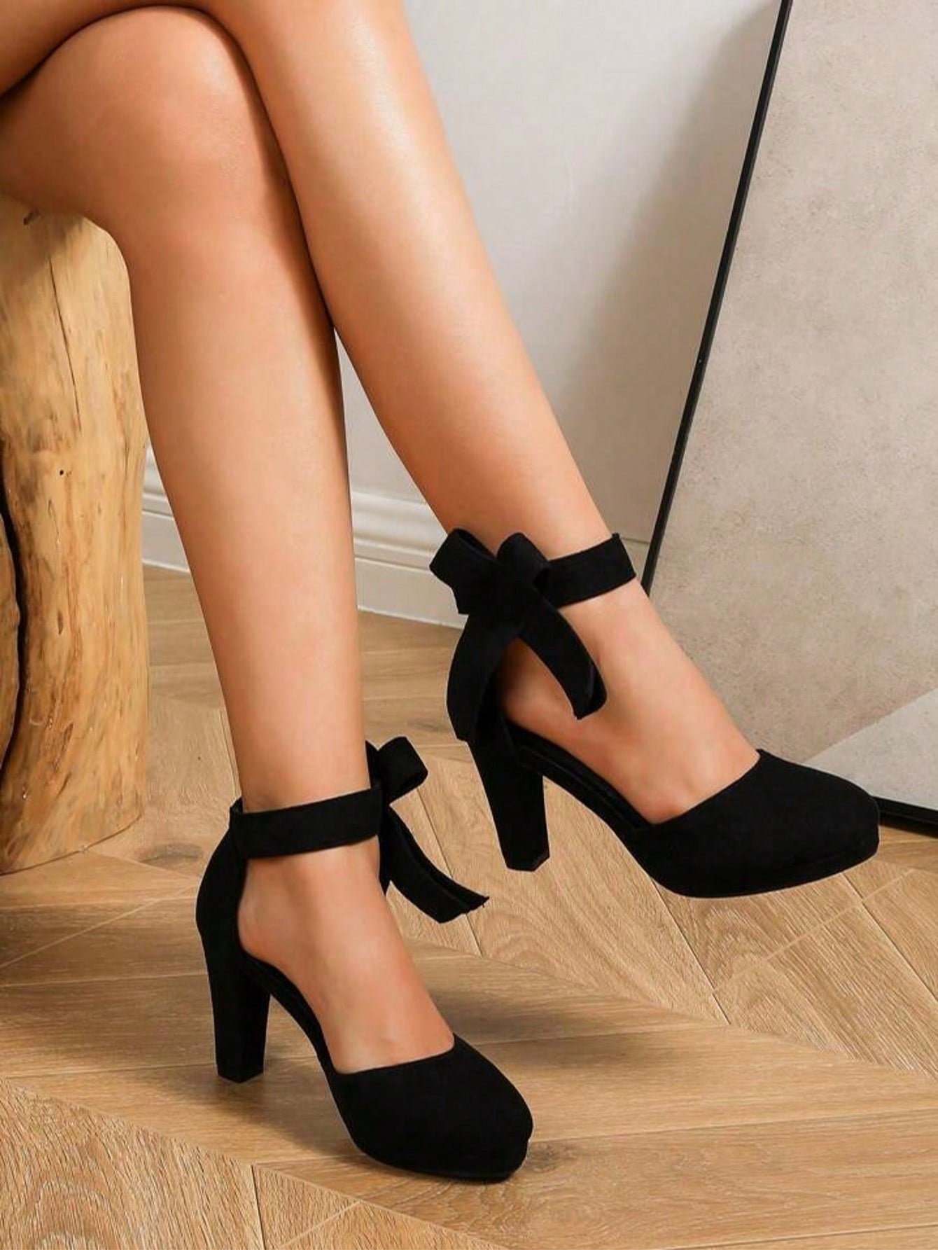 حذاء نسائي أسود بكعب رفيع أنيق ذو مقدمة مستديرة