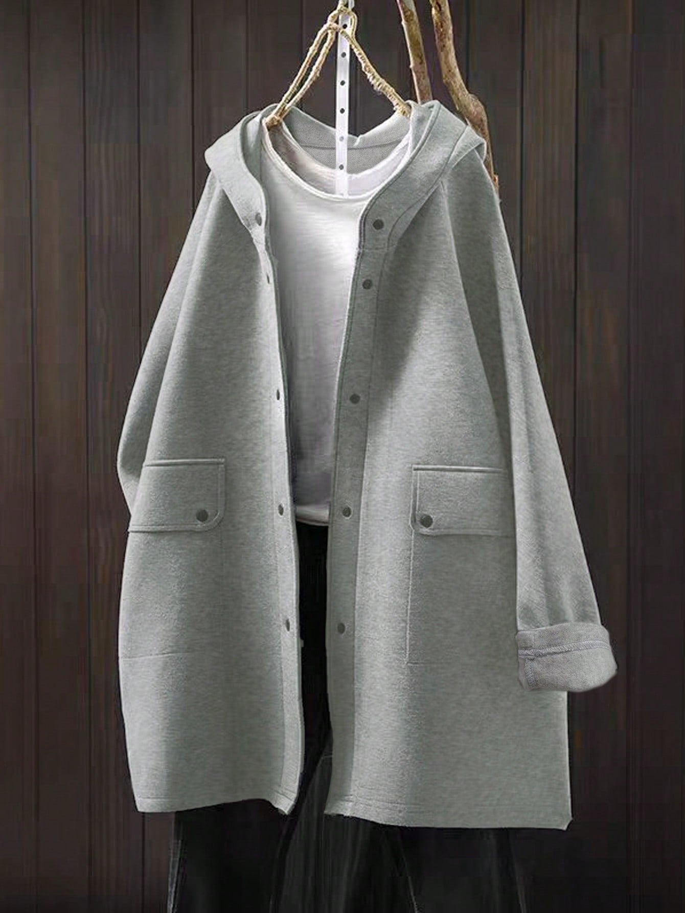 معطف نسائي أنيق وعصري، كاجوال، سادة، بجيوب أمامية وأزرار وغطاء رأس
