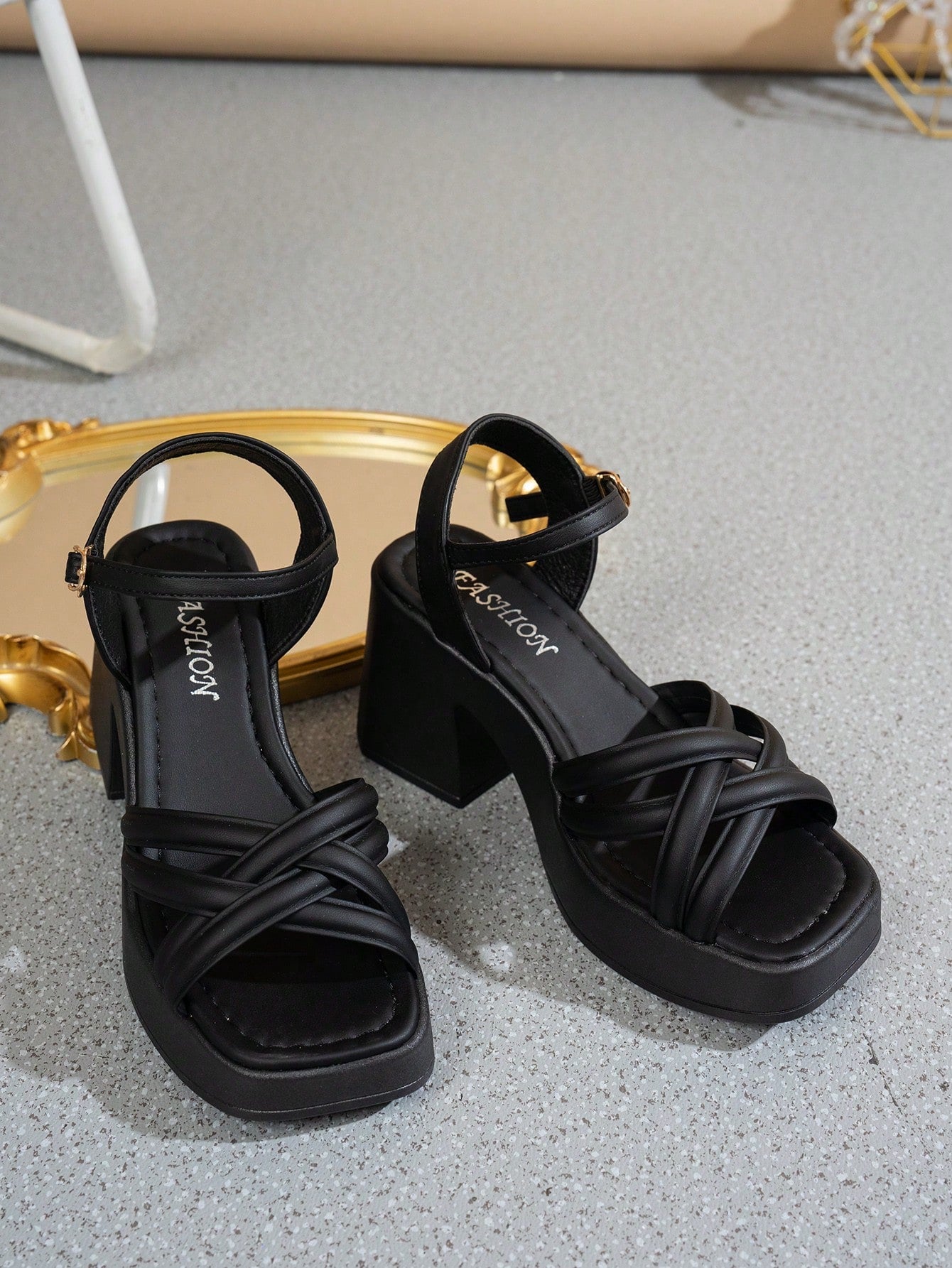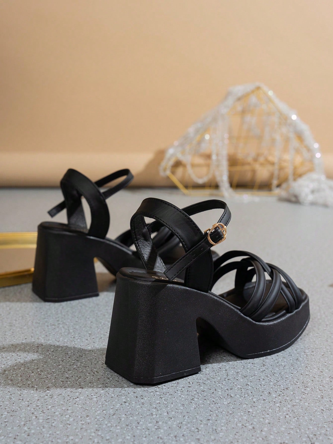 women Women's Fashion Chunky High Heel Ruched Strap Buckle Peep Toe Sandals