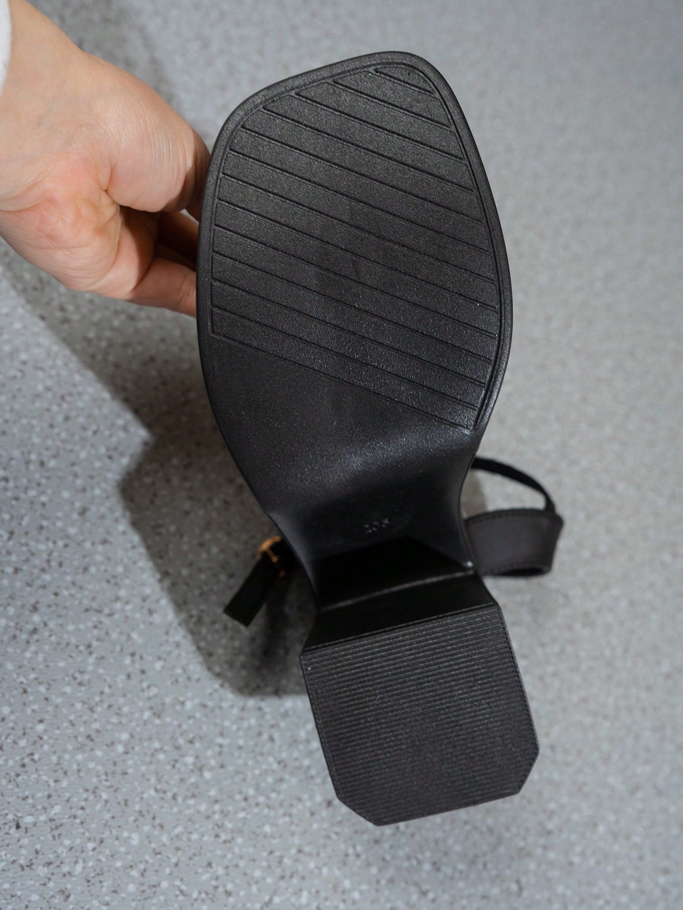 صنادل نسائية أنيقة بكعب عالٍ سميك وحزام مكشكش وإبزيم ومقدمة مفتوحة
