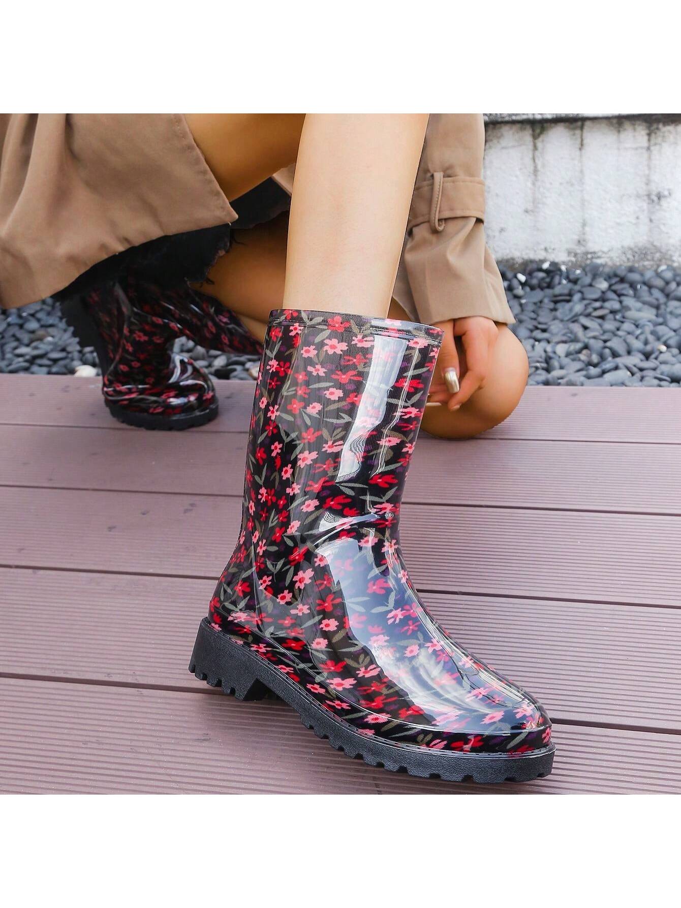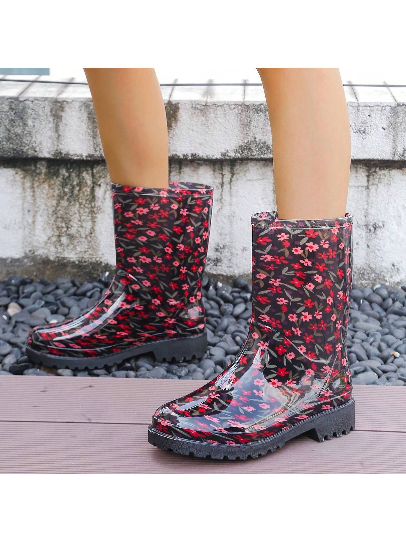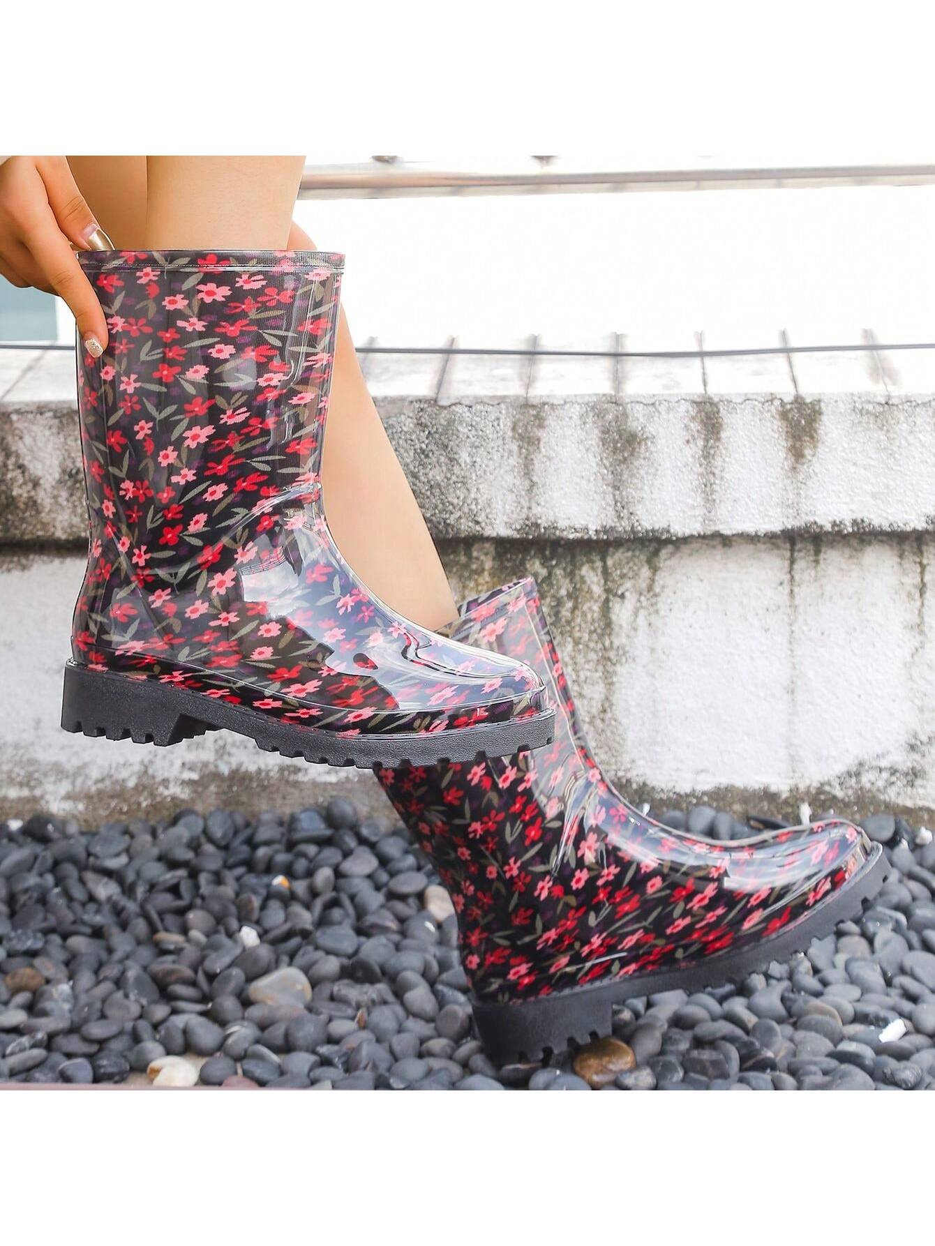 أحذية مطر نسائية أنيقة بنقشة زهور، مقاومة للماء والانزلاق