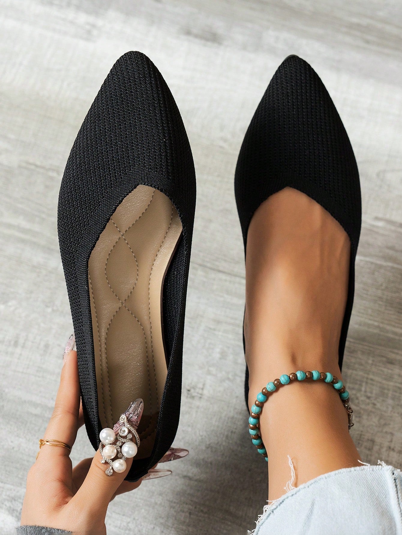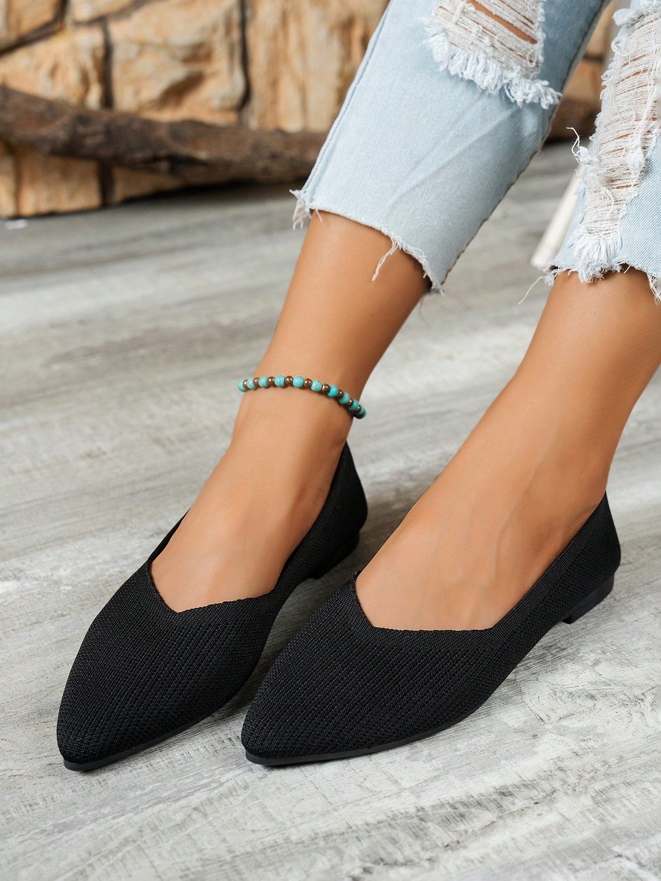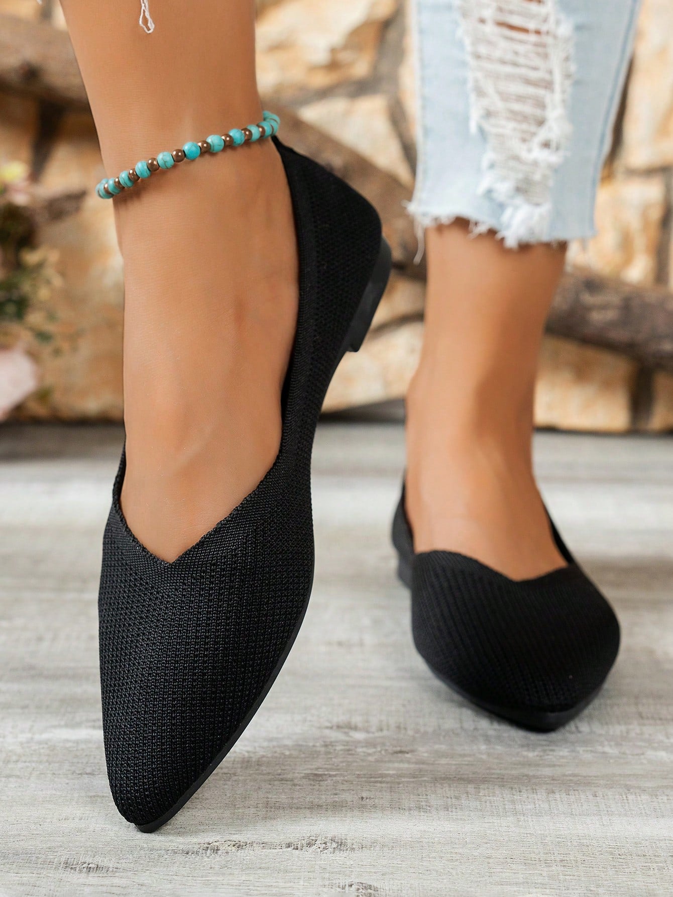women Women's Fashion Pointed Toe Knit Flats