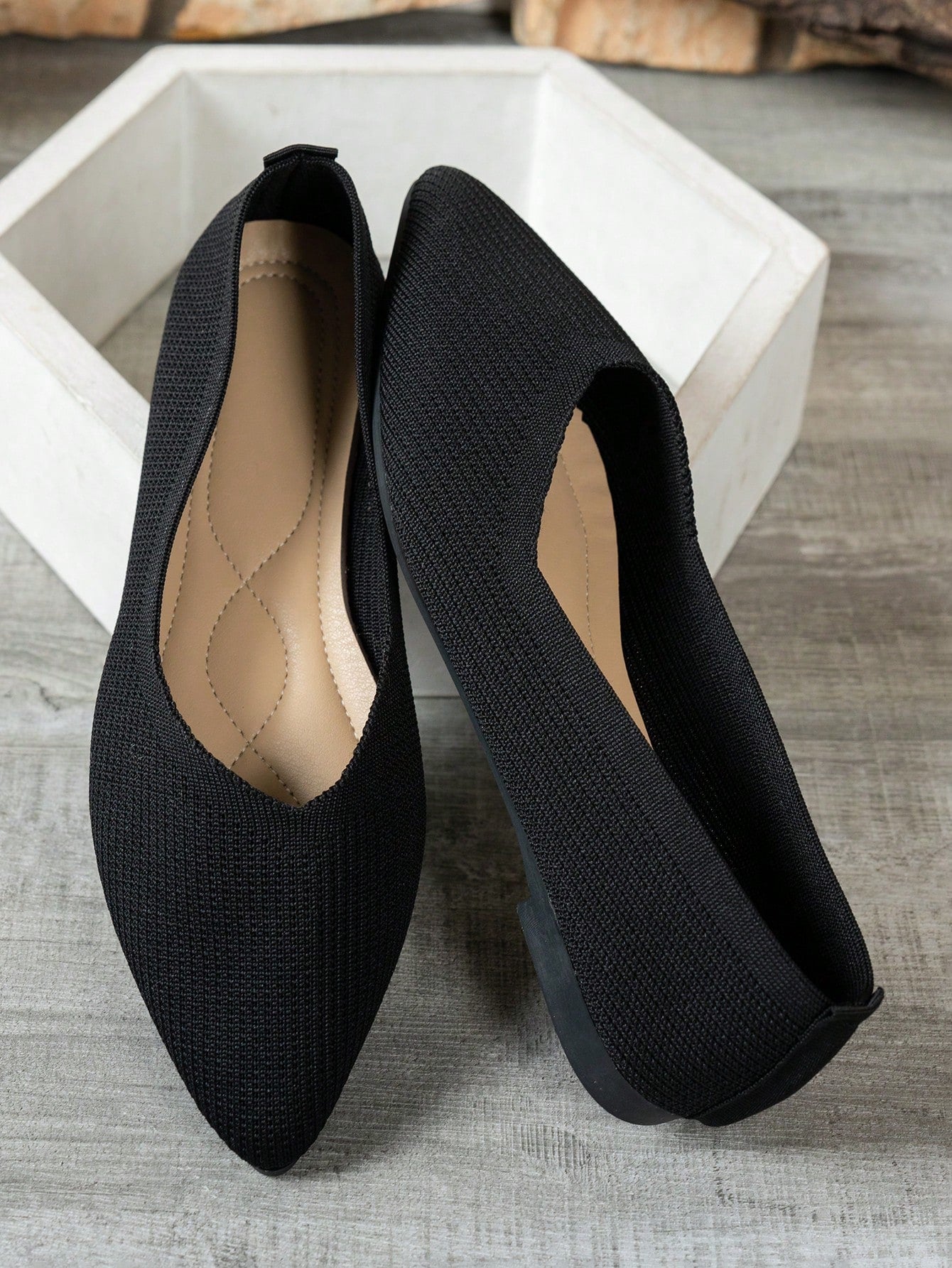 أحذية مسطحة محبوكة بأصابع مدببة أنيقة للنساء