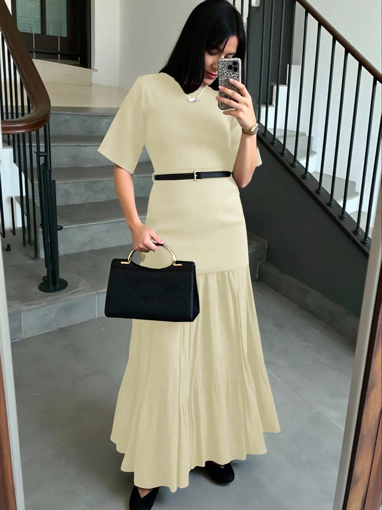 فستان نسائي أنيق بتصميم A-Line مرقع ومُرقع