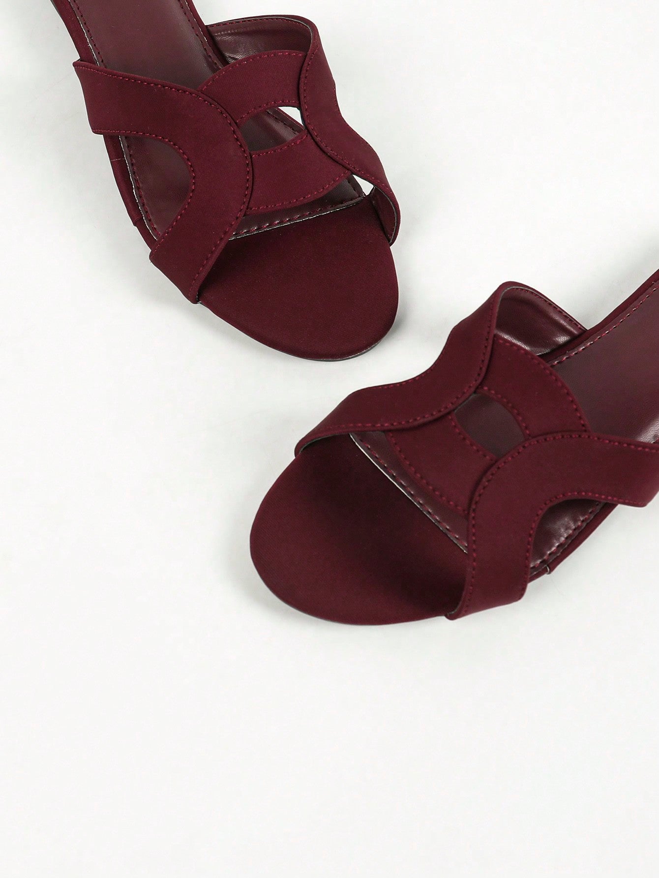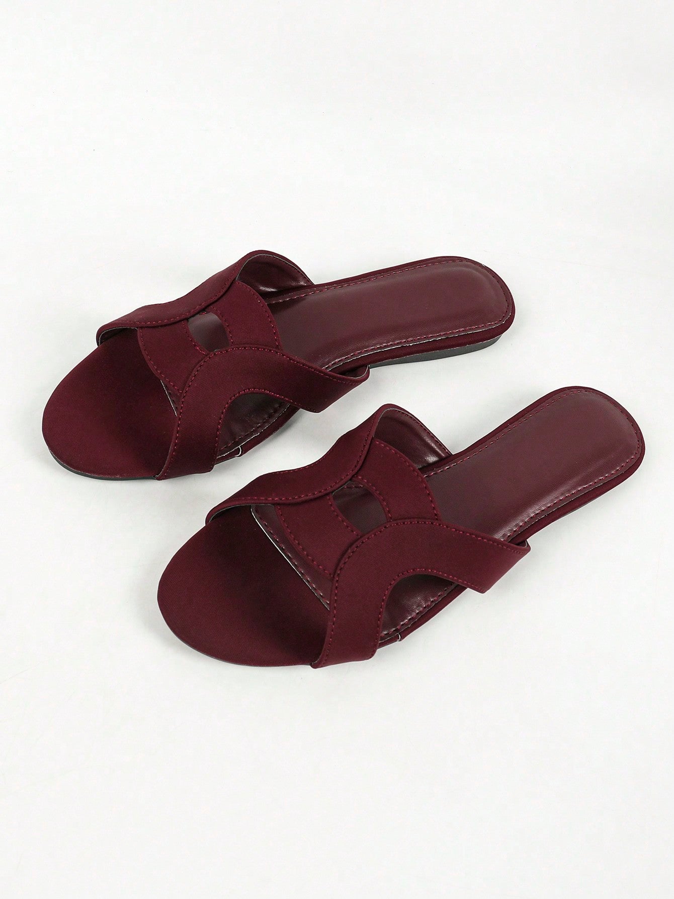 نعال نسائية مسطحة مجوفة باللون الأحمر النبيذي