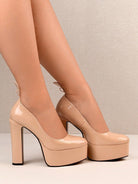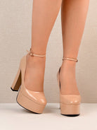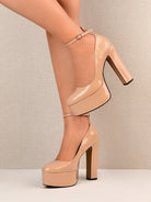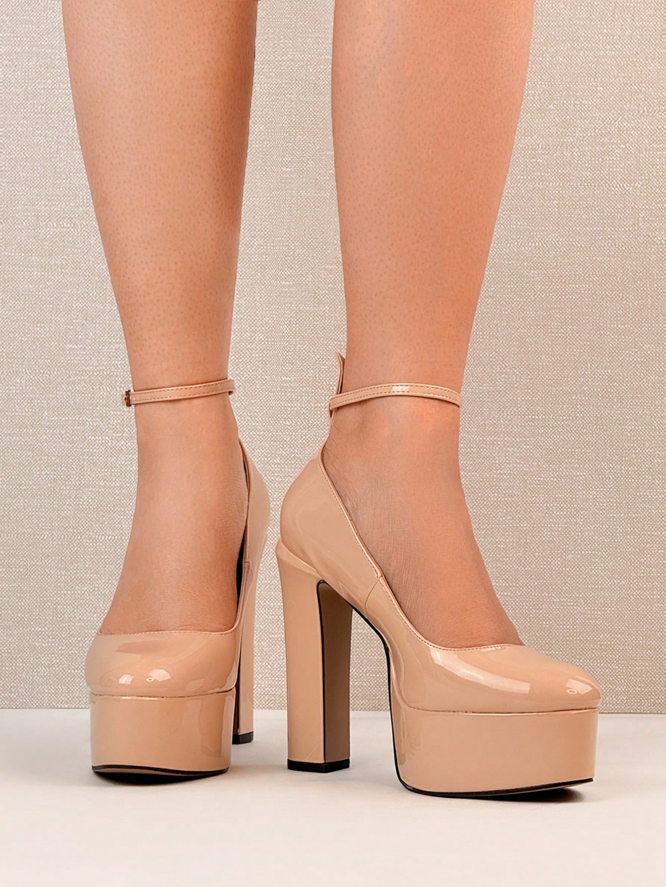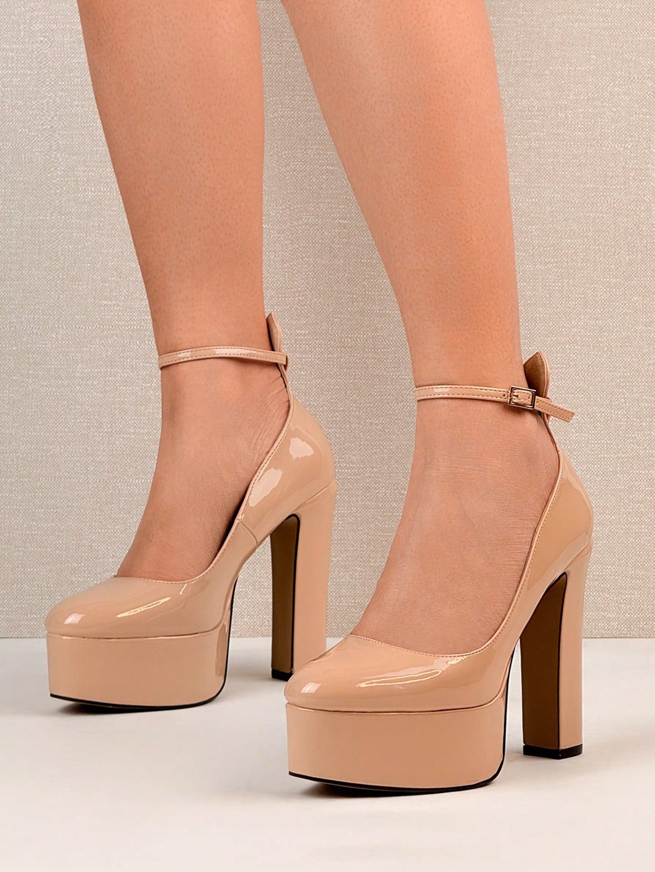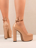 أحذية نسائية بكعب عالٍ جداً ومنصة سميكة من الجلد اللامع