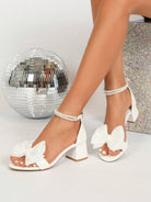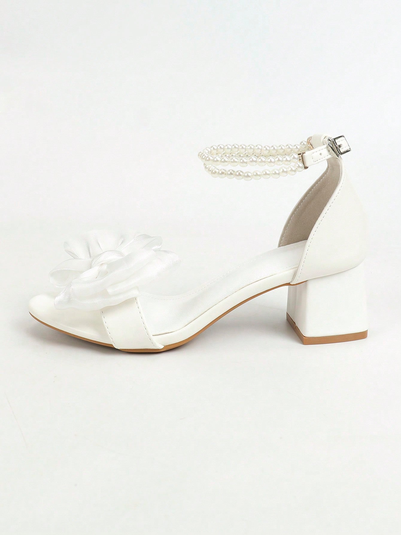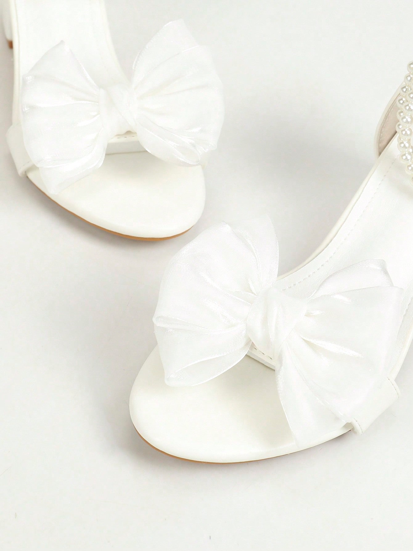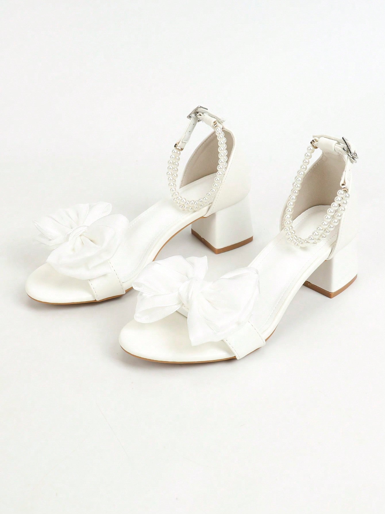 صنادل نسائية بكعب عالٍ مزينة بسلسلة لؤلؤية