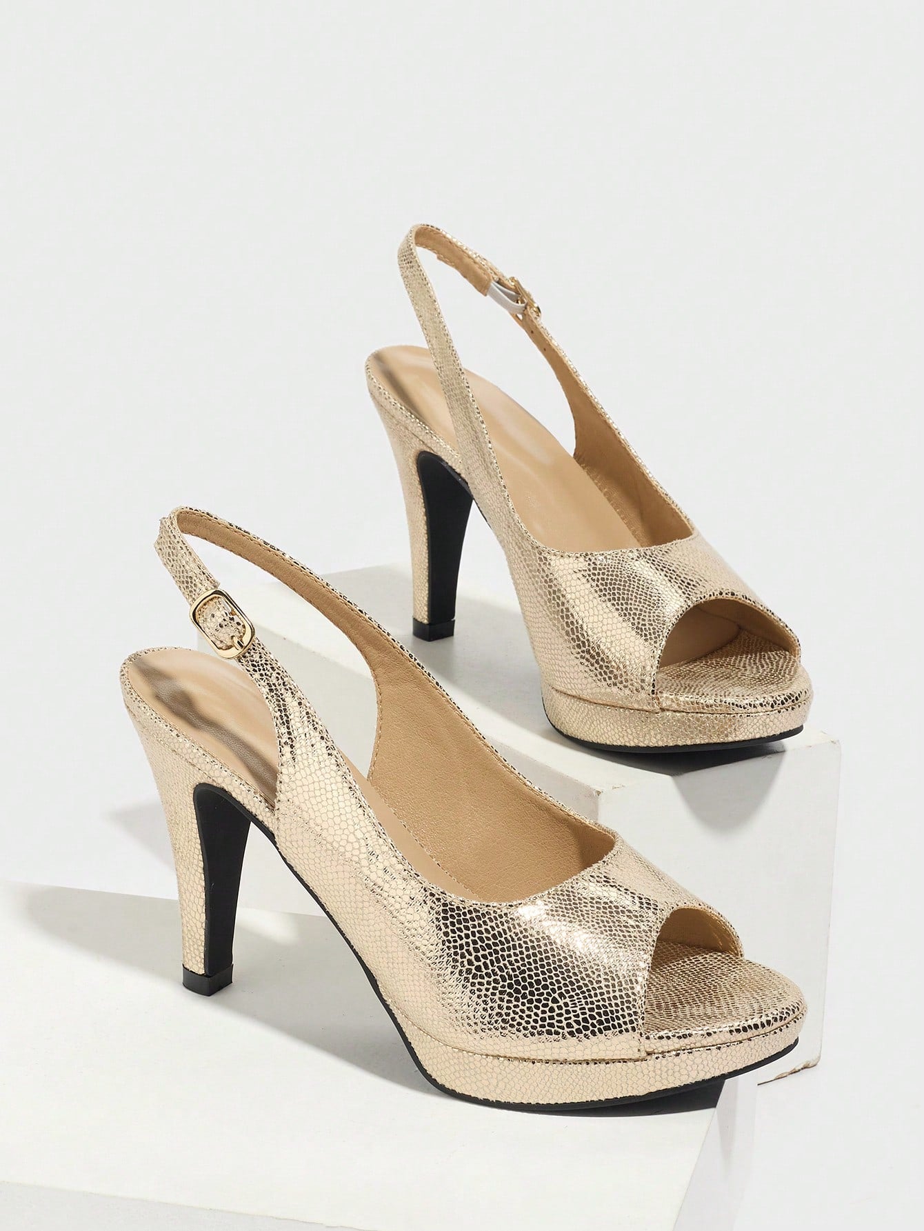 صنادل نسائية بكعب عالٍ - مفتوحة من الأمام، ذات نعل سميك وكعب إسفيني