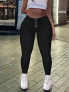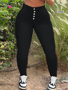 بنطلون جينز نسائي ضيق متعدد الأزرار بتصميم بسيط وعملي ومتعدد الاستخدامات، بمقاسات كبيرة