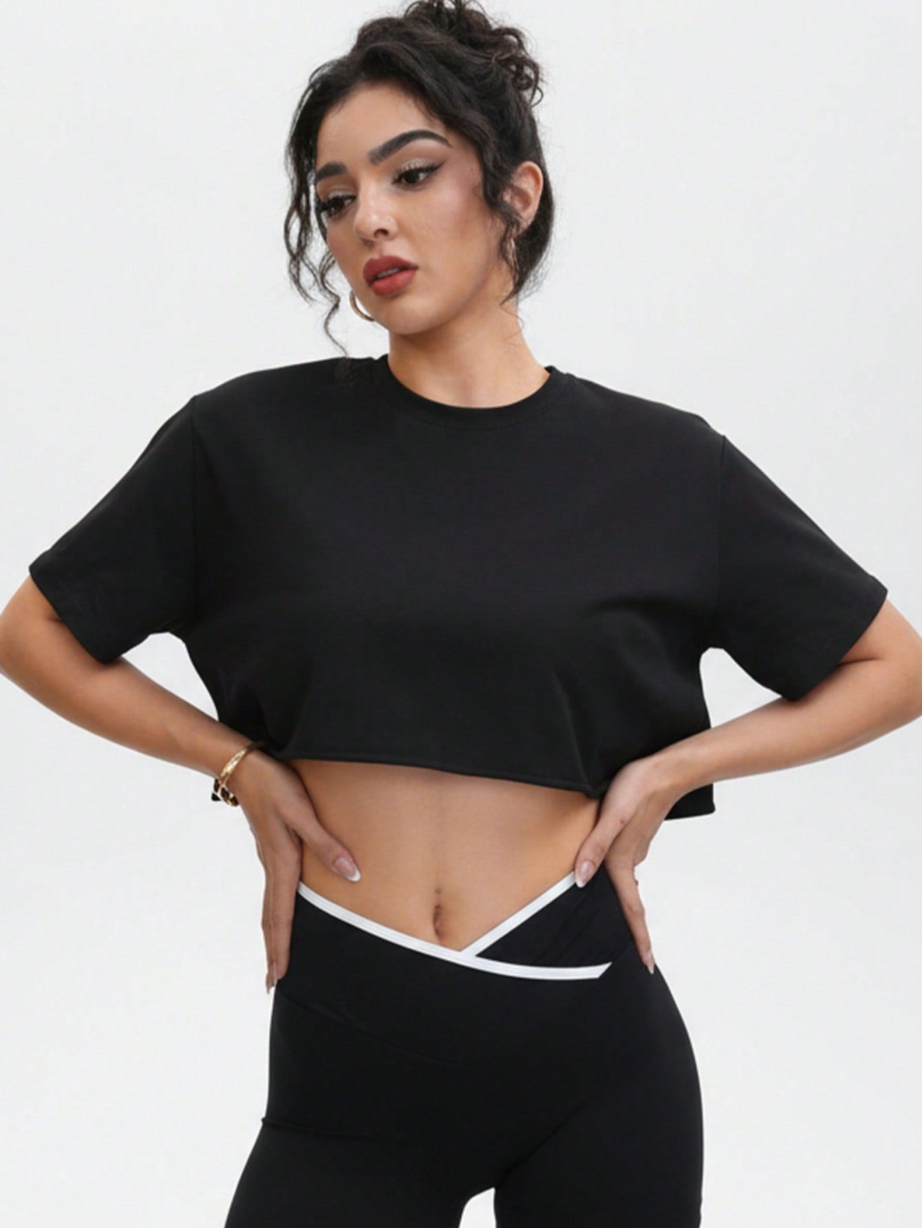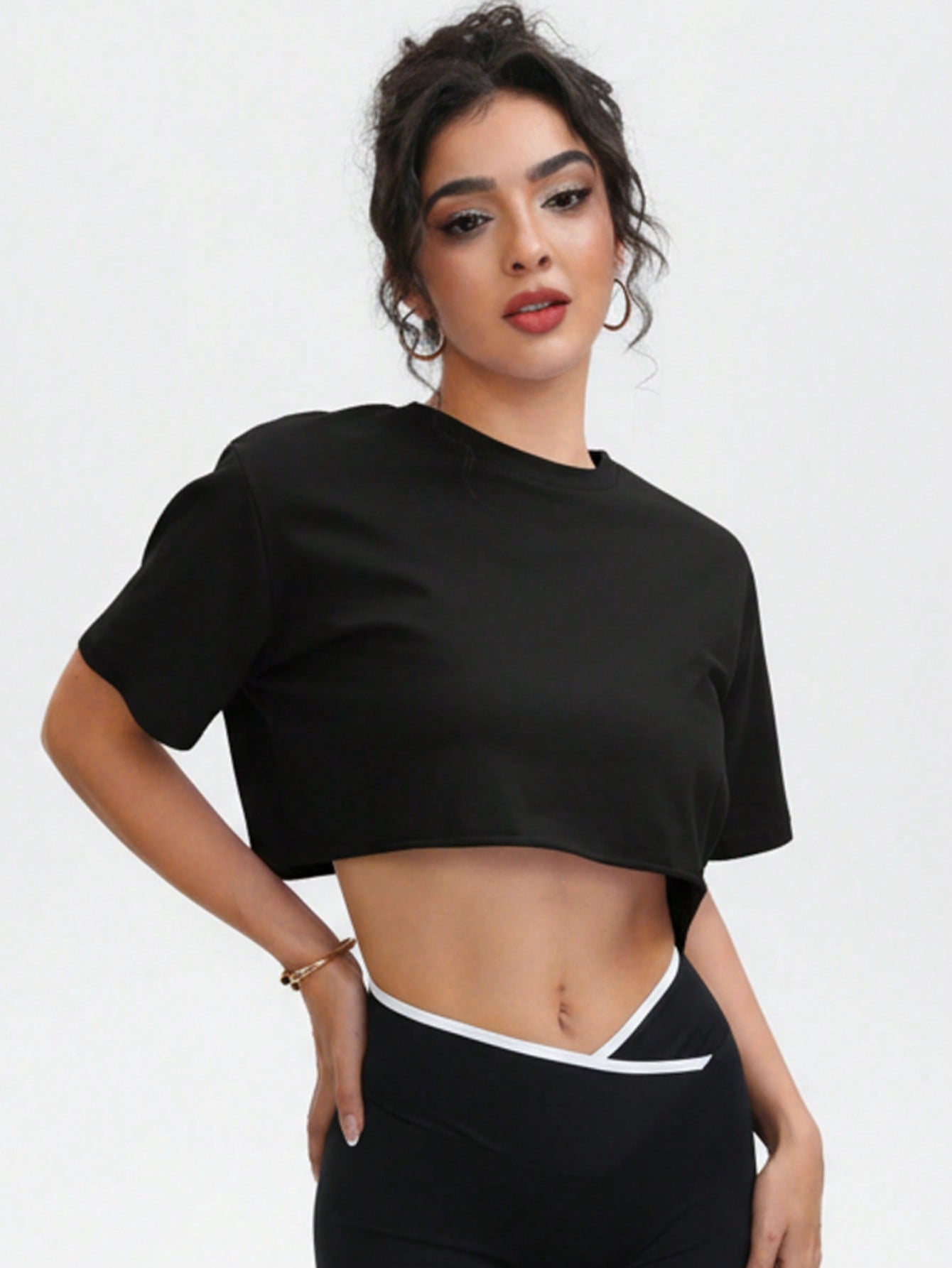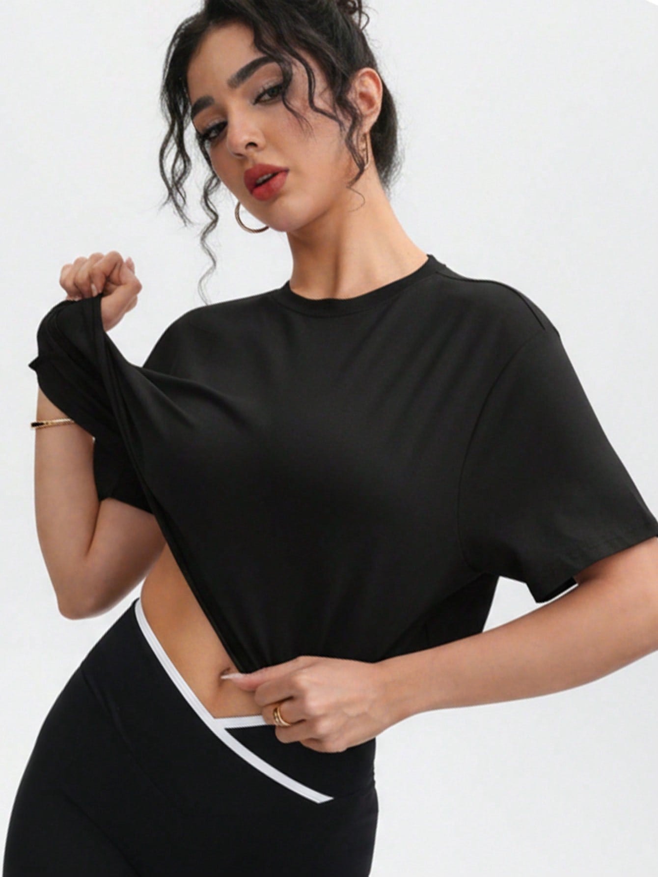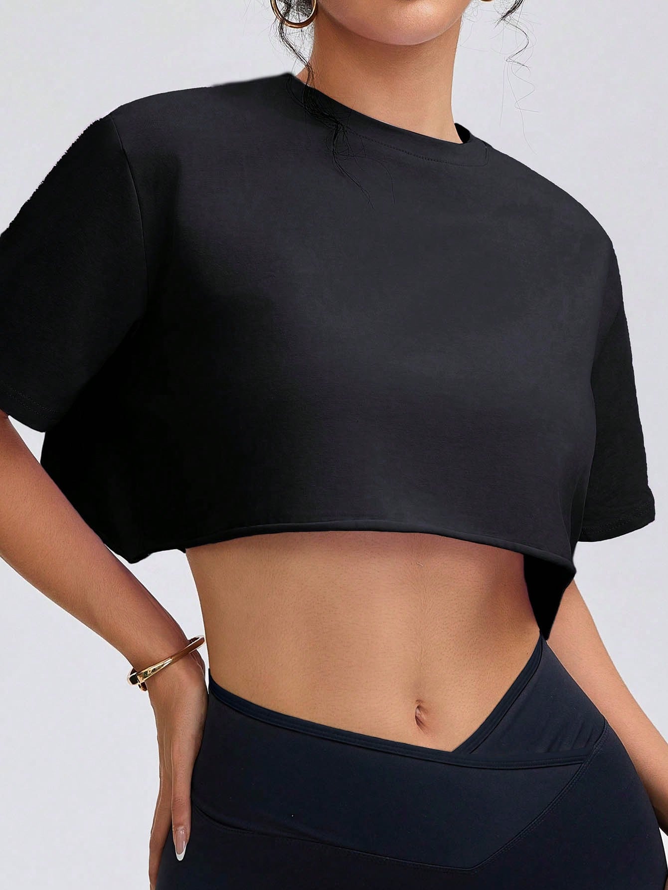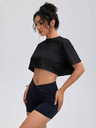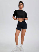 تيشيرت نسائي قصير ناعم - كنزة صوفية برقبة دائرية