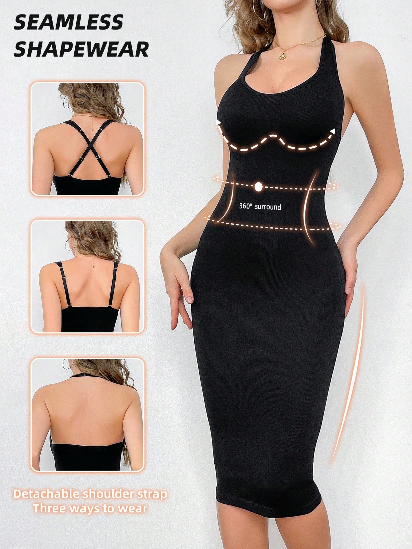 فستان نسائي بلون موحد، مكشوف الظهر، بياقة هالتر، ضيق بدون خياطة