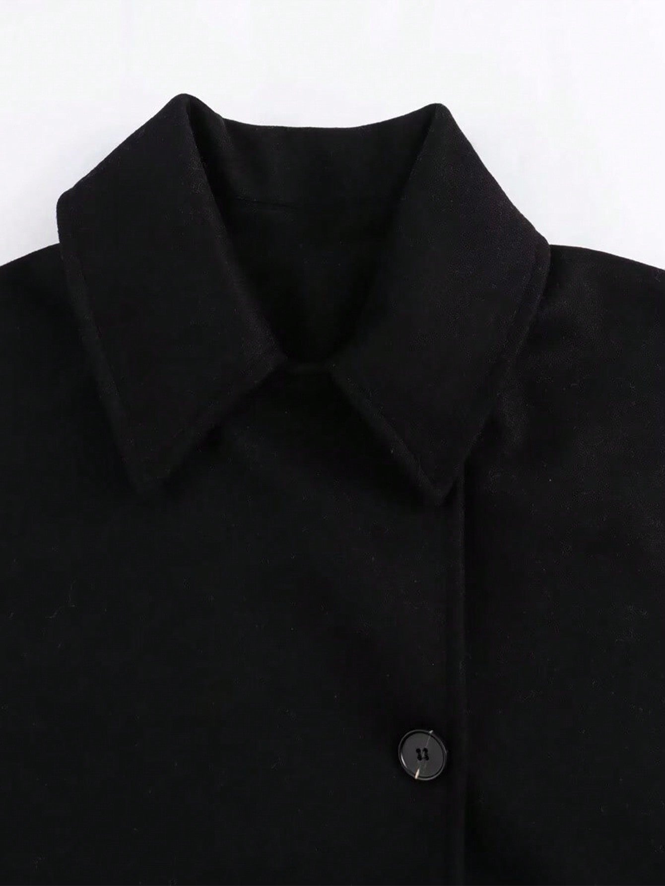 معطف نسائي فضفاض واسع بأكمام طويلة ولون موحد، بصف أزرار واحد