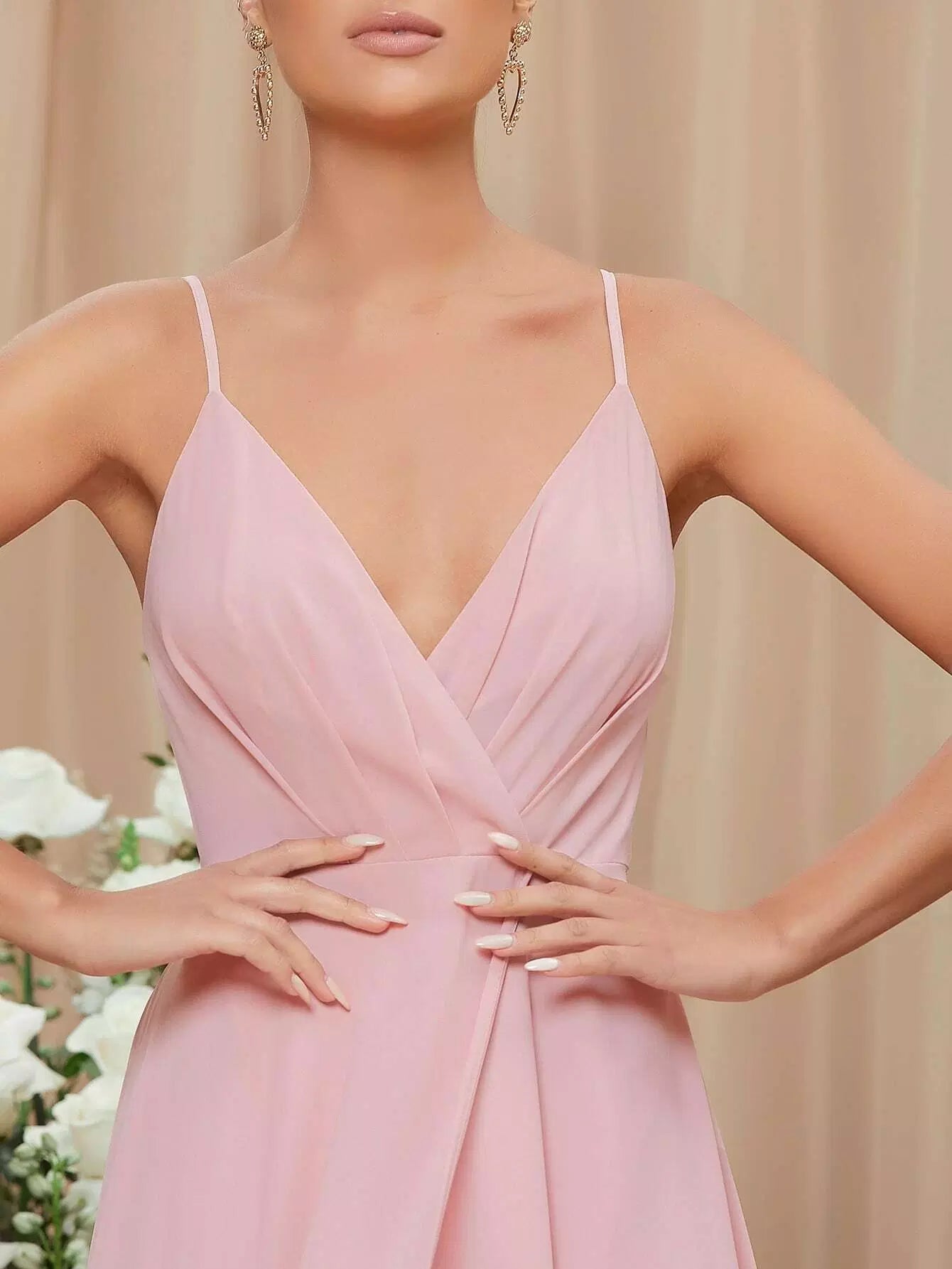 فستان ماكسي ماكسي ماكسي سادة من الأمام ملفوف
